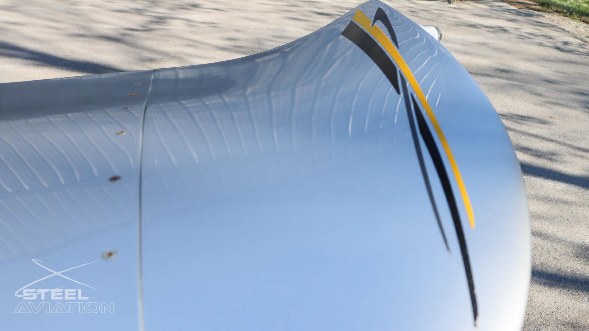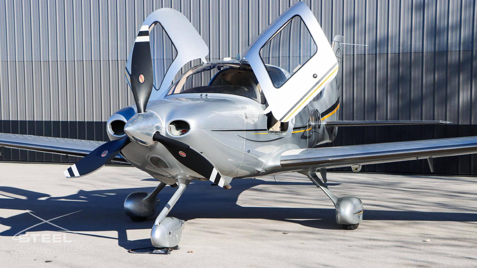 The exterior is finished in a striking blend of Sterling Silver with bold black elements and energetic yellow accents that give the aircraft a fast, modern, and unmistakably sporty presence. Always hangared, the paint has been beautifully preserved—clean, glossy, and clearly well cared for. It’s an eye-catching scheme that looks every bit as sharp on the ramp as it does in the air.