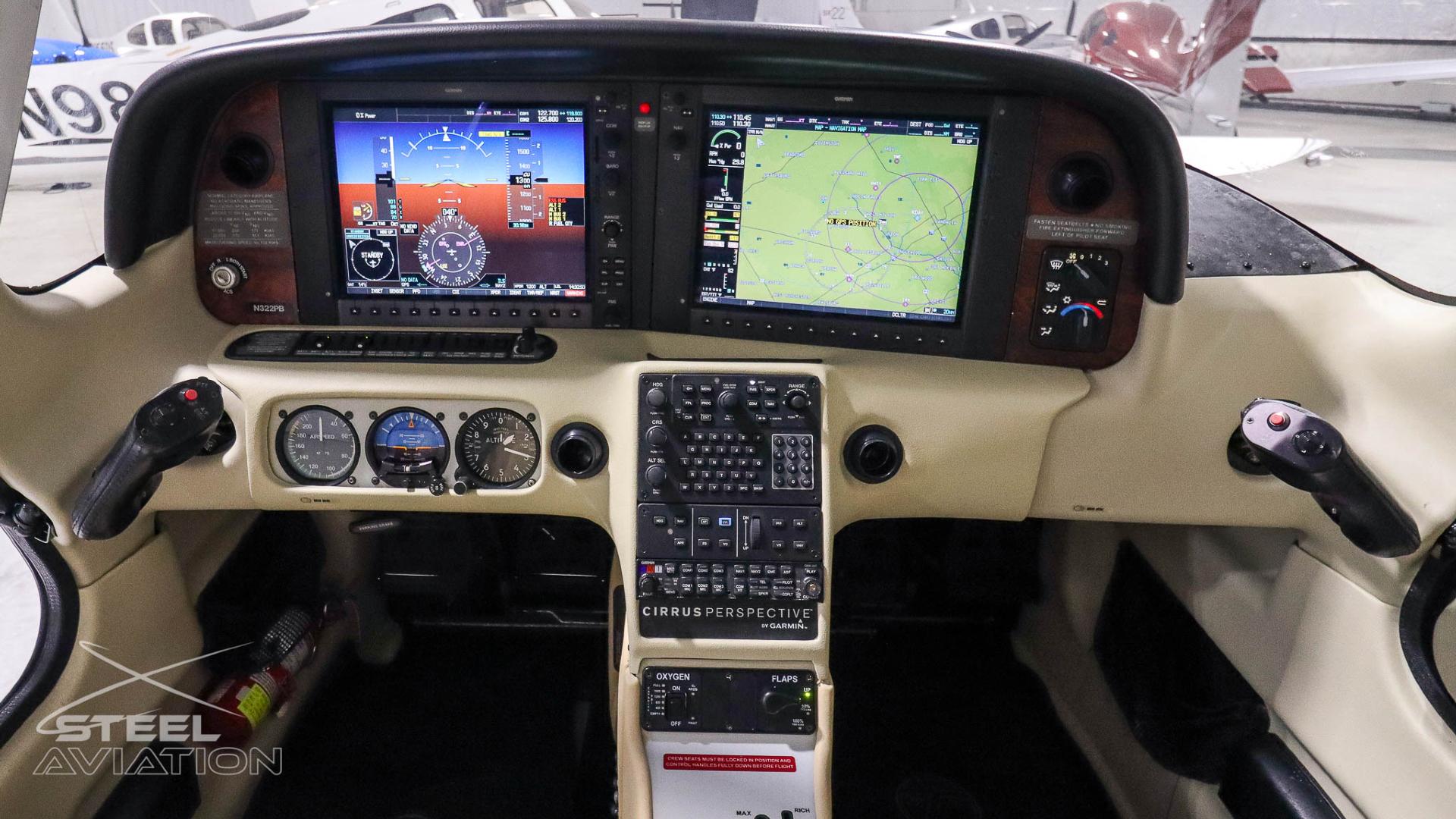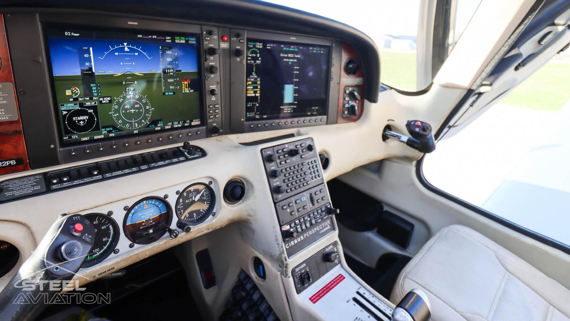 Step inside to a warm and refined cabin dressed in elegant cream-colored leather that gives the interior a bright, upscale feel. The seats show beautifully and pair perfectly with the rich woodgrain avionics panel, adding a touch of classic sophistication to the modern Cirrus cockpit. The aircraft is equipped with built-in oxygen for effortless high-altitude capability, and features the AMSAFE Airbag Safety Restraint System, offering an added layer of protection and peace of mind for you and your passengers. Overall, it’s a clean, comfortable, and well-appointed cabin—ready for long trips, quick hops, and everything in between.