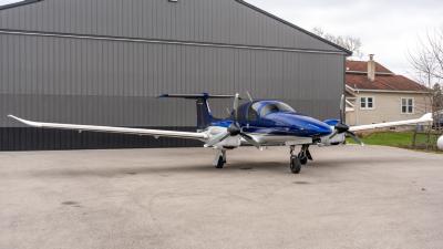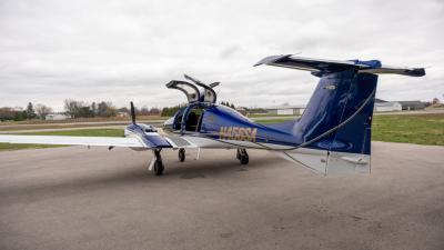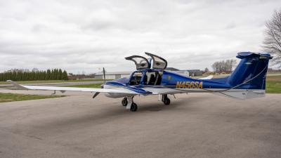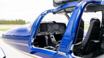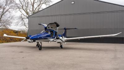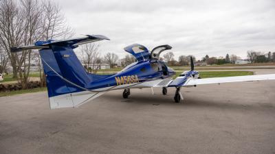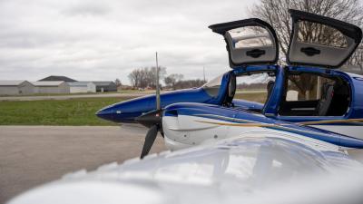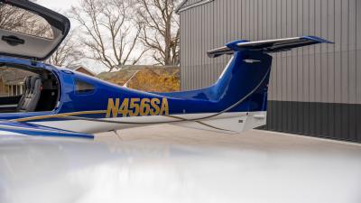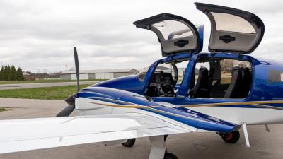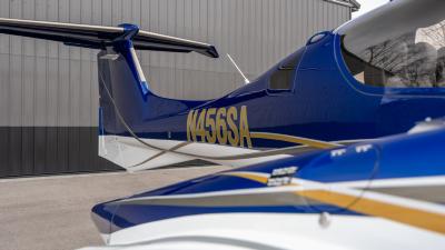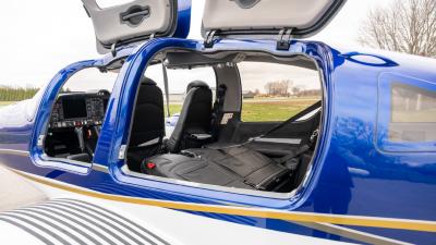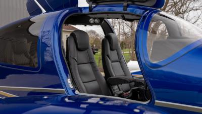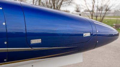 The plane looks so good in the air. The highly visible San Marino blue is the perfect complement to the crisp white. Be ready for attention everywhere you go! This plane always draws a crowd. The silver and gold accents highlight the lines of the aircraft perfectly. Indeed a work of art!