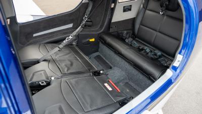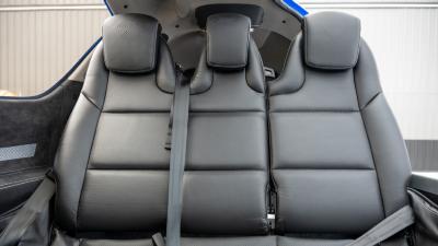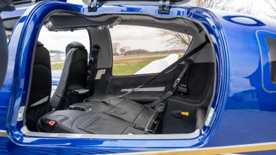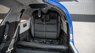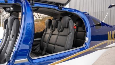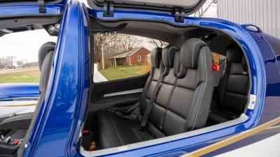 The plane features premium leather in all black. It is so comfortable with the 7 seat configuration you will not need to leave anyone at home. The cargo area is large and the seats fold down. There is plenty of room for golf clubs, folding bikes, dog cages, extra luggage etc. The aircraft looks and smells new!