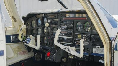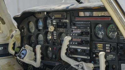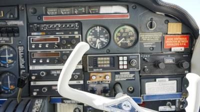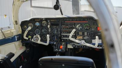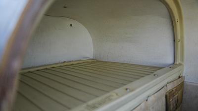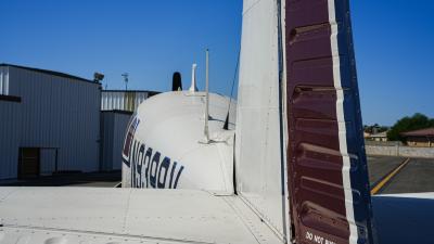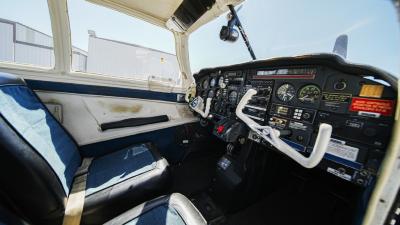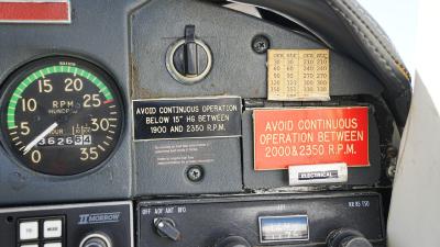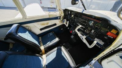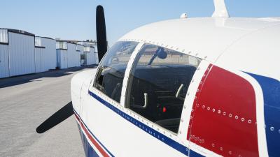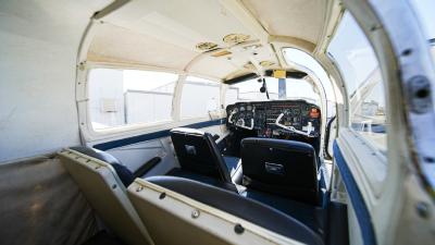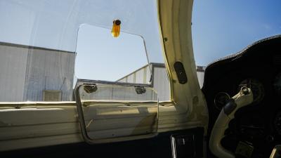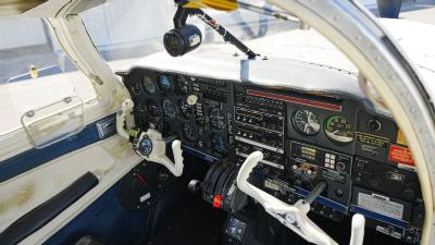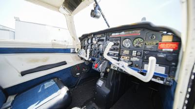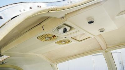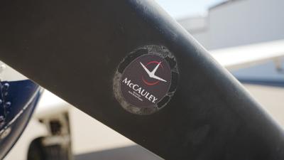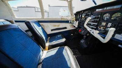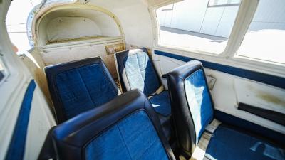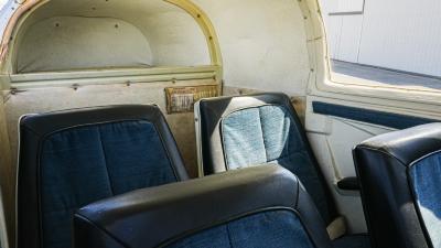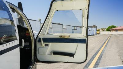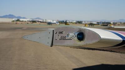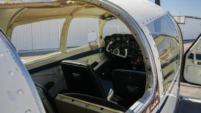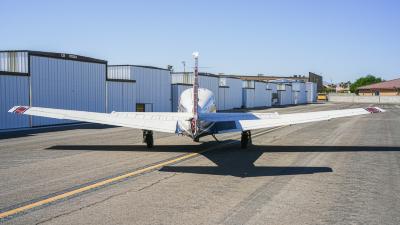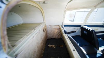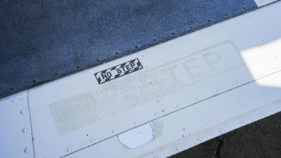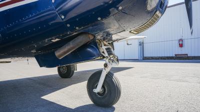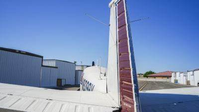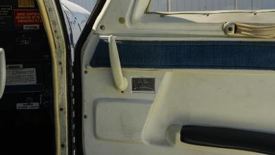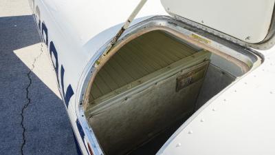 All over white paint scheme with blue and red trim. It has been hangar stored and is in good shape for the vintage with only some minor nicks / chips and fading of paint in some areas, particularly the red stripes on the wingtips.