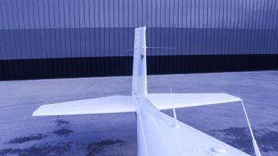 White base paint with Blue silver and dark red decals paint and decals are in good condition and show very well this plane will draw attention in all of the best ways!