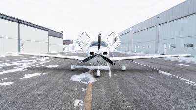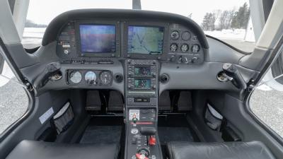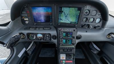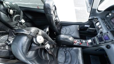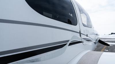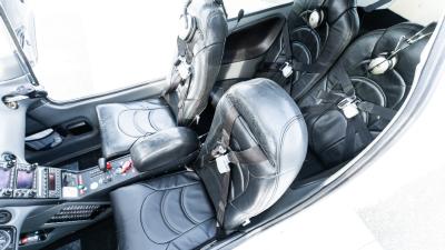 Black leather seating with black, grey, and beige trim. All interior appointments are in fantastic condition. The owner has taken the utmost care of this aircraft and the interior is in tremendously nice shape.
