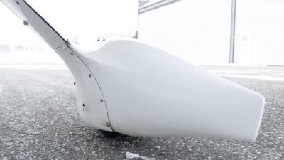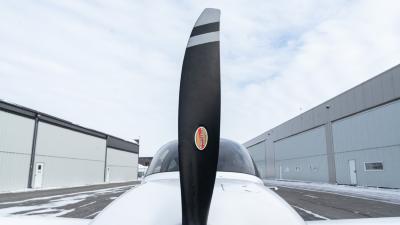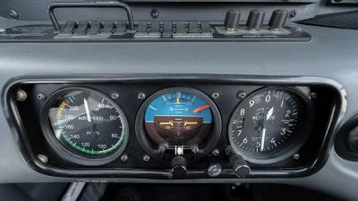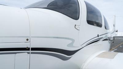 Base white with an elegant black and silver vinyl scheme. The original paint is in excellent condition for the vintage. It has been continuously hangar stored and shows nicely.
