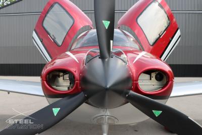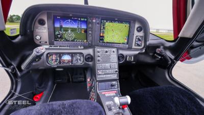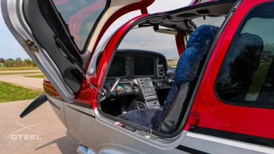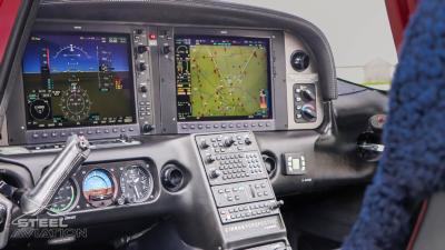 Inside, it’s a different world. Custom interior with black leather and red stitching turn the cockpit into something far more personal than just a place to fly—it feels tailored, deliberate, like every flight is meant to matter. And front and center, the Garmin Perspective suite brings everything to life: crisp displays, razor-sharp situational awareness, and a cockpit that feels more like a command center than a panel.