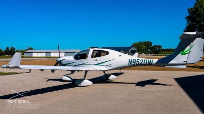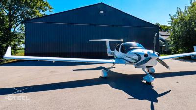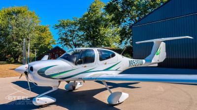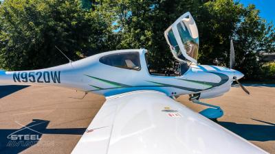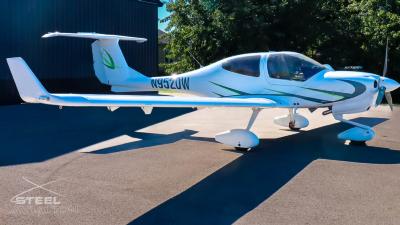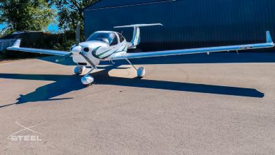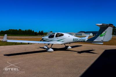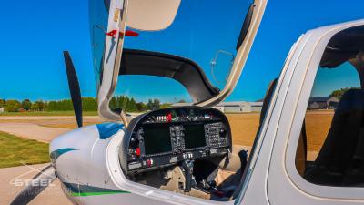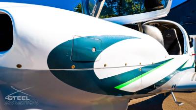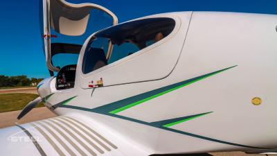 The exterior of this DA40 NG is clean, modern, and eye-catching without trying too hard. Its bright white base is accented by smooth, flowing green and subtle gray striping that gives the aircraft a sleek, contemporary look. The long, slender wings and T-tail design add to its elegant profile, while the large canopy enhances its futuristic feel. The paint appears well-kept and glossy, reflecting strong overall care. From nose to tail, everything about this aircraft looks streamlined and purposeful, with just enough color to stand out on the ramp while still maintaining a refined, professional appearance.