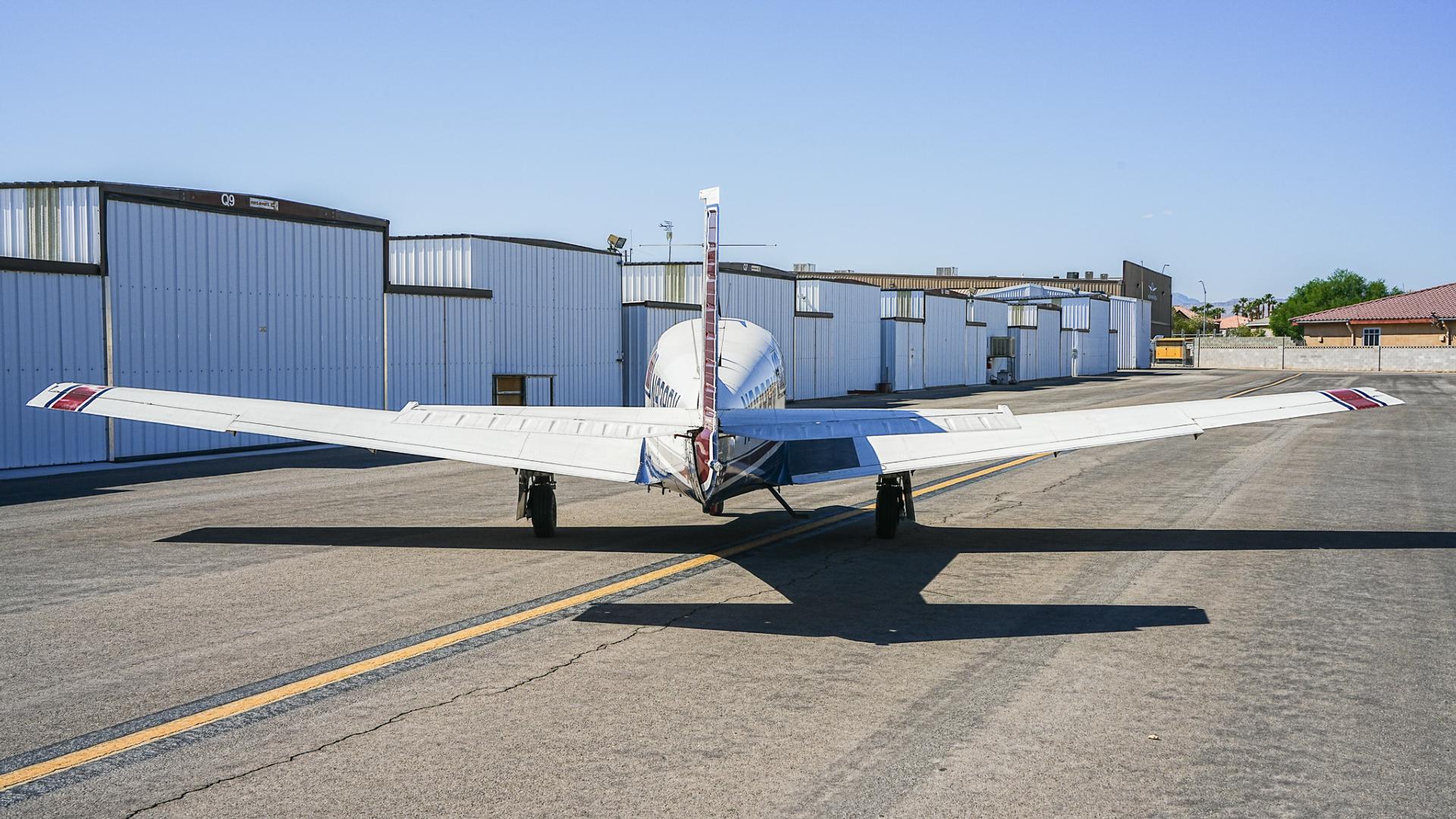 All over white paint scheme with blue and red trim. It has been hangar stored and is in good shape for the vintage with only some minor nicks / chips and fading of paint in some areas, particularly the red stripes on the wingtips.