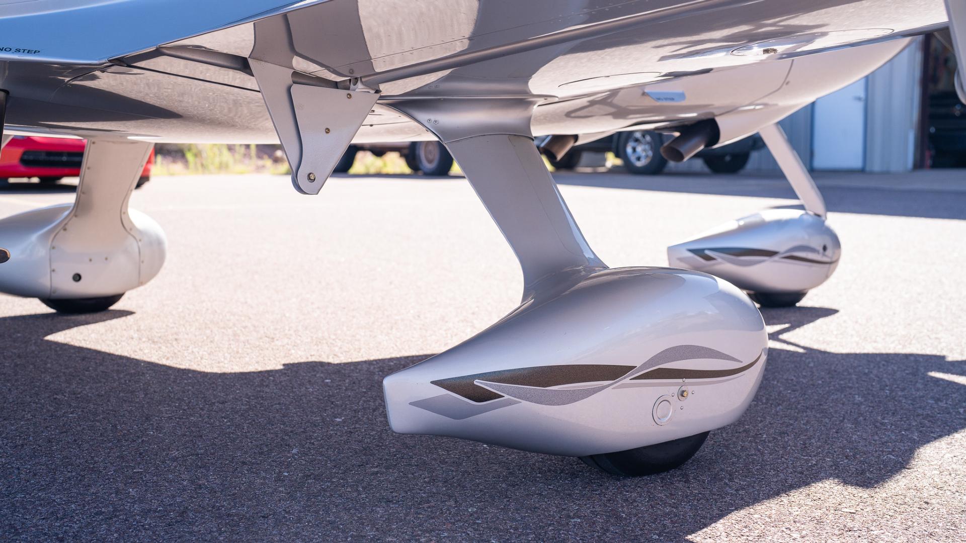Draped in a stunning sterling silver paint scheme accented by sleek grey and black decals, this aircraft exudes sophistication from spinner to tail. The metallic silver finish gleams in the sunlight, while the contrasting stripes add a sporty, modern edge that makes it look fast even when it’s parked.