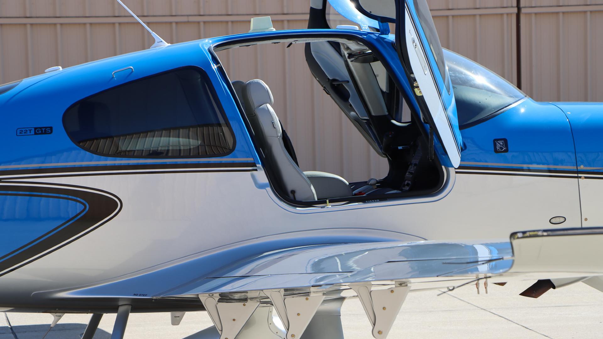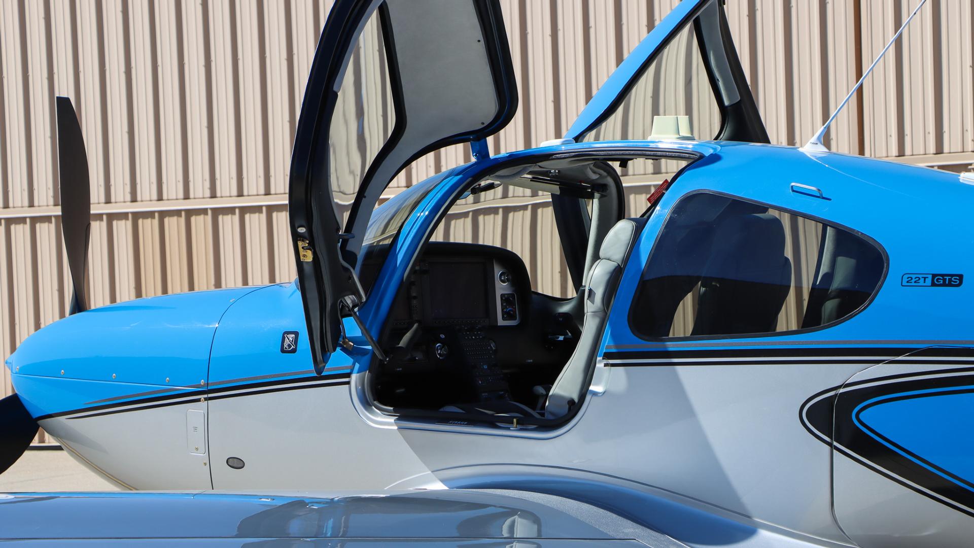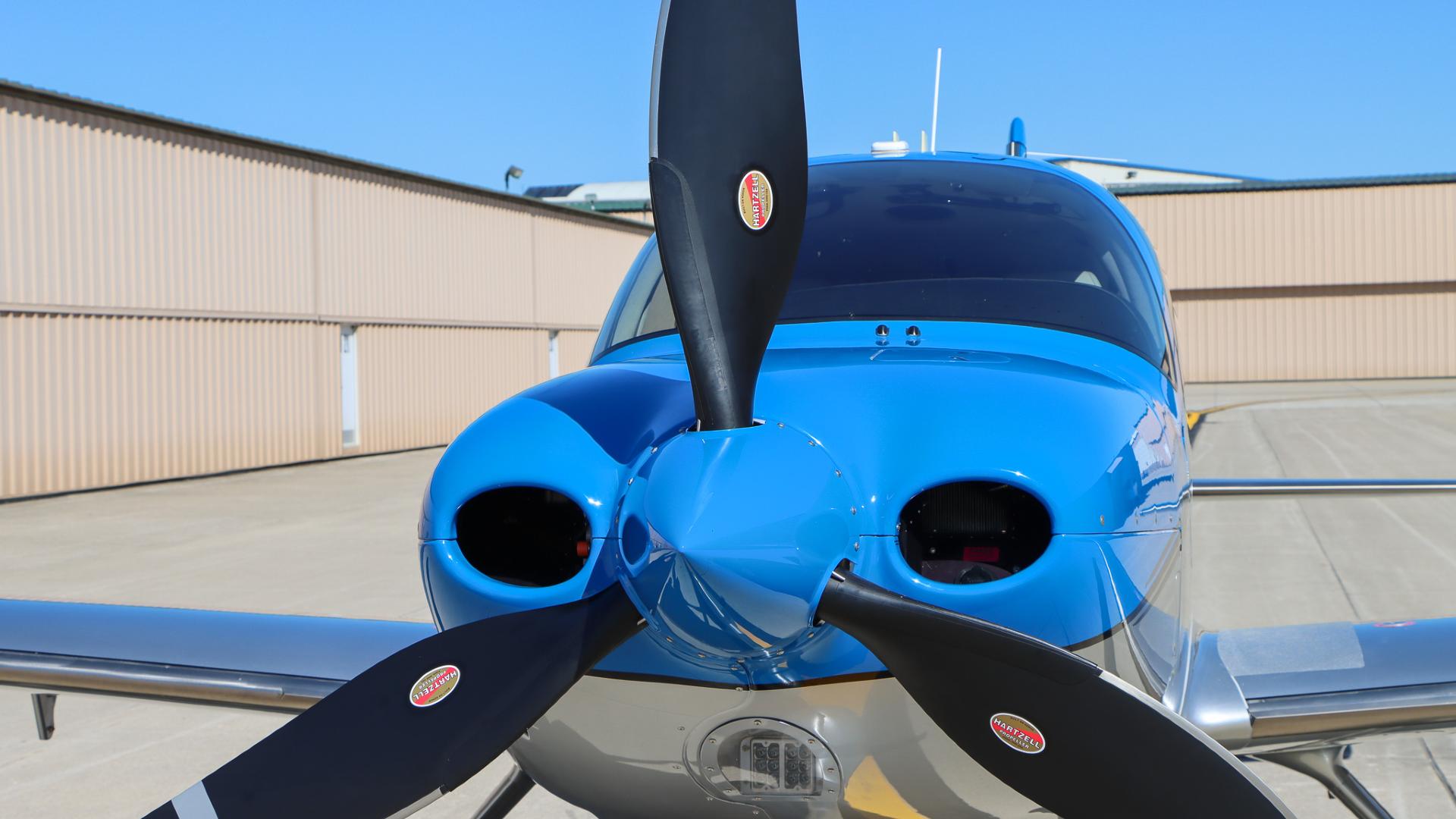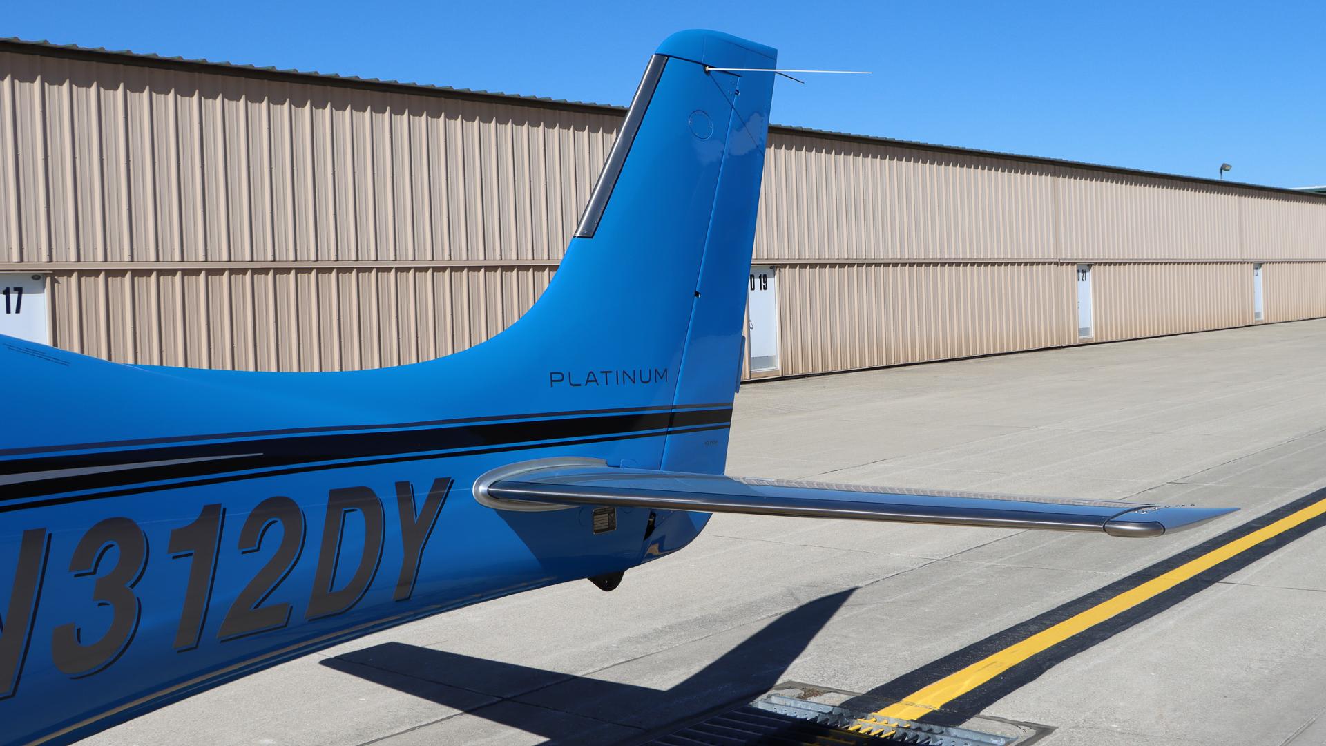The exterior of this Platinum Edition SR22 Turbo is nothing short of stunning. Finished in a rich Monarch Blue/Sterling Silver accented with sleek black details, the aircraft exudes sophistication and ramp appeal.