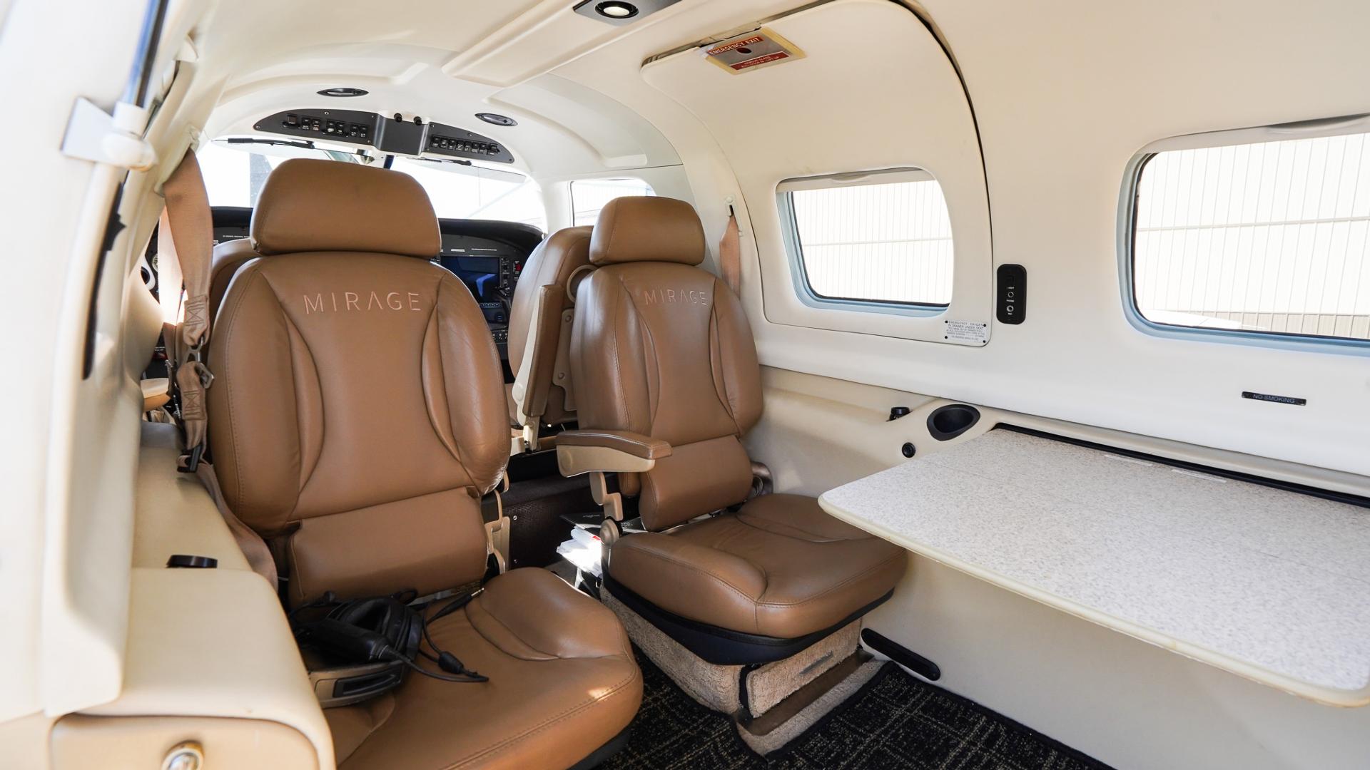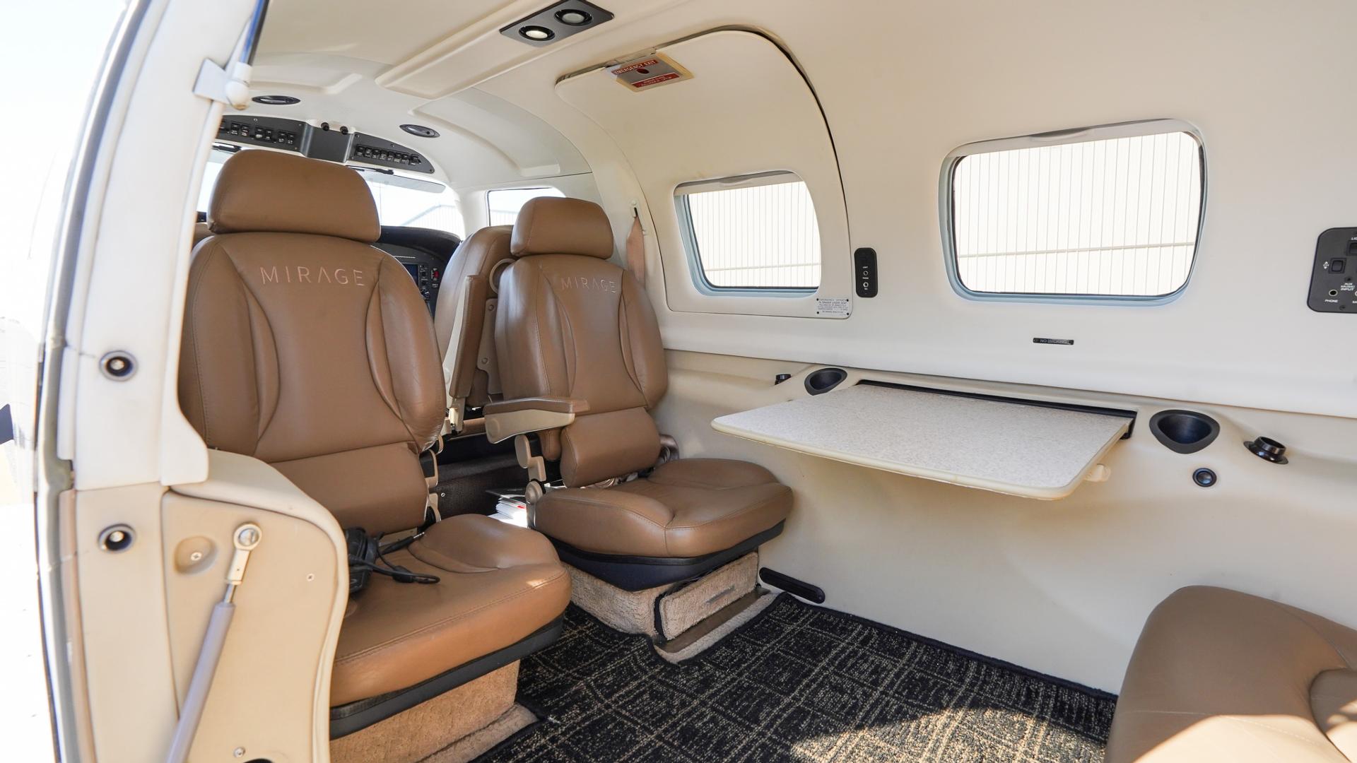 Power & Performance: Equipped with a turbocharged Lycoming TIO-540-AE2A engine, producing 350 horsepower, the Mirage delivers a cruise speed of around 200 knots with a range of 1,300+ nautical miles.