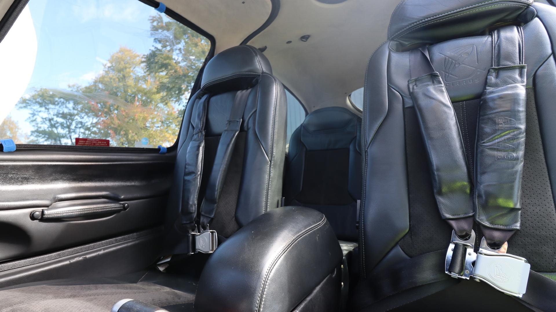 A black leather interior with Alcantara trim, creating a cockpit environment that’s both luxurious and purpose-built. The premium materials offer a refined, tactile feel—soft to the touch yet durable for everyday use. The seating is supportive and well-cushioned, providing long-distance comfort for pilot and passengers alike. Alcantara accents along the seats add a sporty, upscale flair that complements the aircraft’s high-performance nature. The cabin remains in excellent condition, with clean surfaces, intact stitching, and a fresh, well-cared-for appearance.