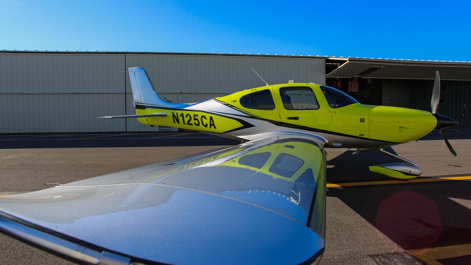 The exterior of N125CA is nothing short of show-stopping. Dressed in a brilliant Volt Yellow base accented by sleek Sterling Silver detailing, this G7 SR22 GTS looks like it’s moving fast even when it’s parked. The vibrant yellow dominates the fuselage with an energetic, high-visibility flair, while the silver accents trace the aircraft’s elegant lines, adding a touch of sophistication to the boldness. It’s a combination that perfectly sums up what this aircraft is all about—confidence, performance, and style that can’t be ignored. Whether taxiing across the ramp or climbing through the clouds, N125CA turns every flight into an entrance.