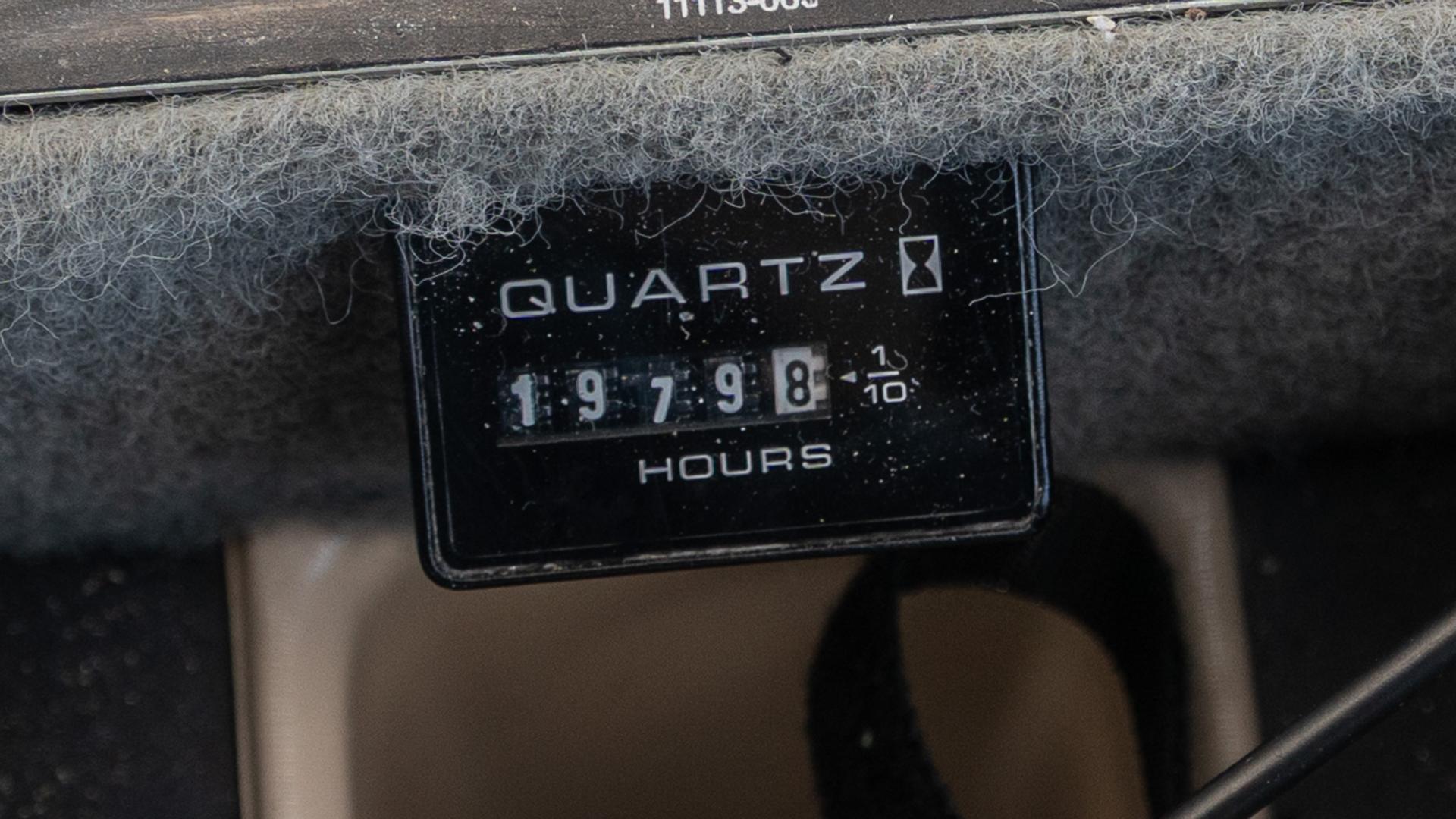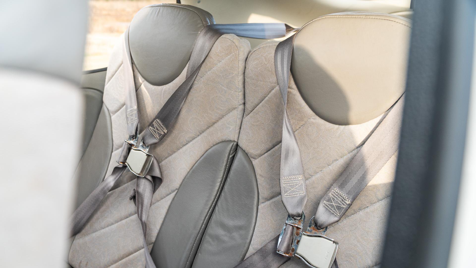 Seating is grey leather with beige cloth insets. Grey and beige trim and paneling have been well cared for and present nicely for the vintage.
