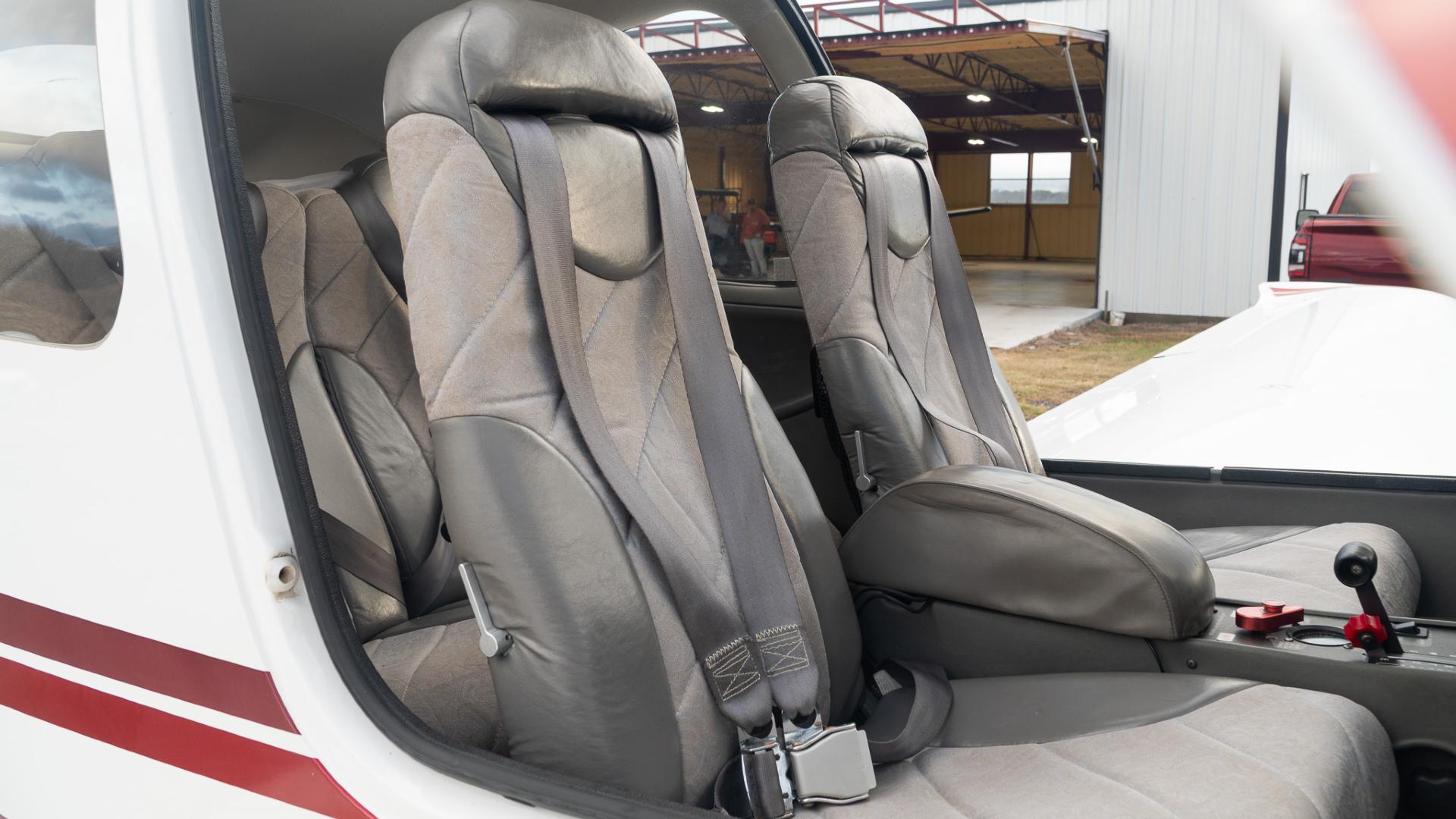 Original white paint with maroon and silver vinyl trim are all in great condition. The aircraft has been hangar stored and shows very well.