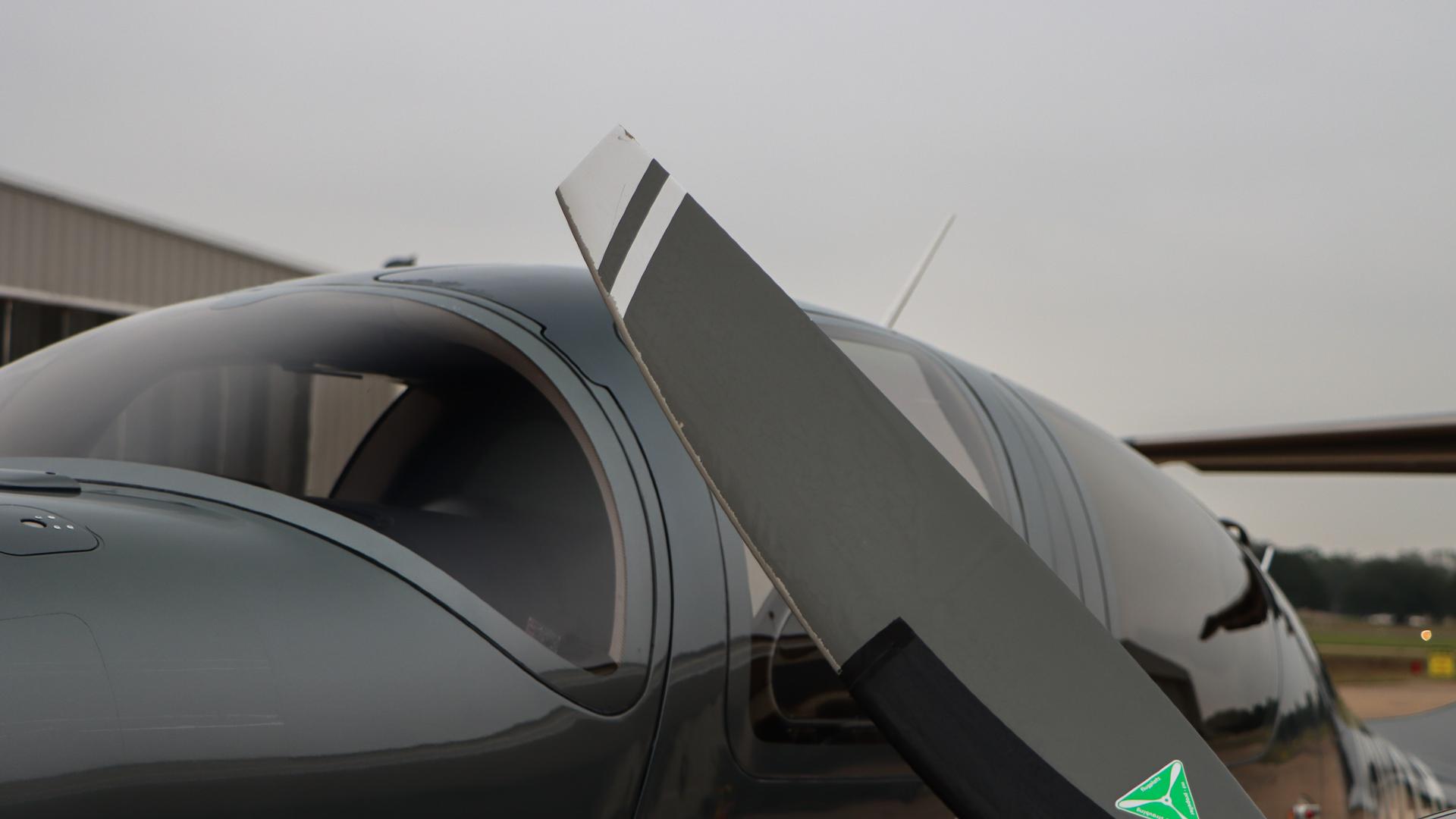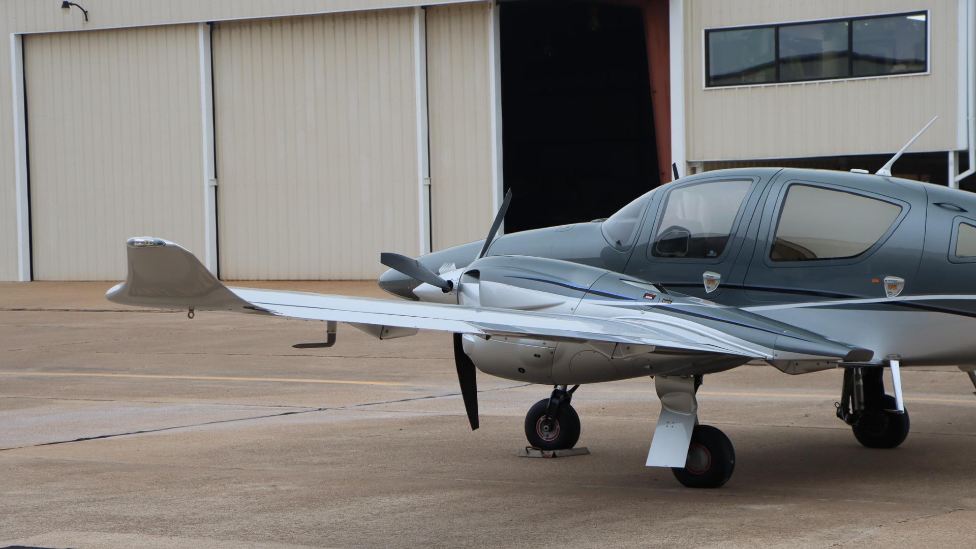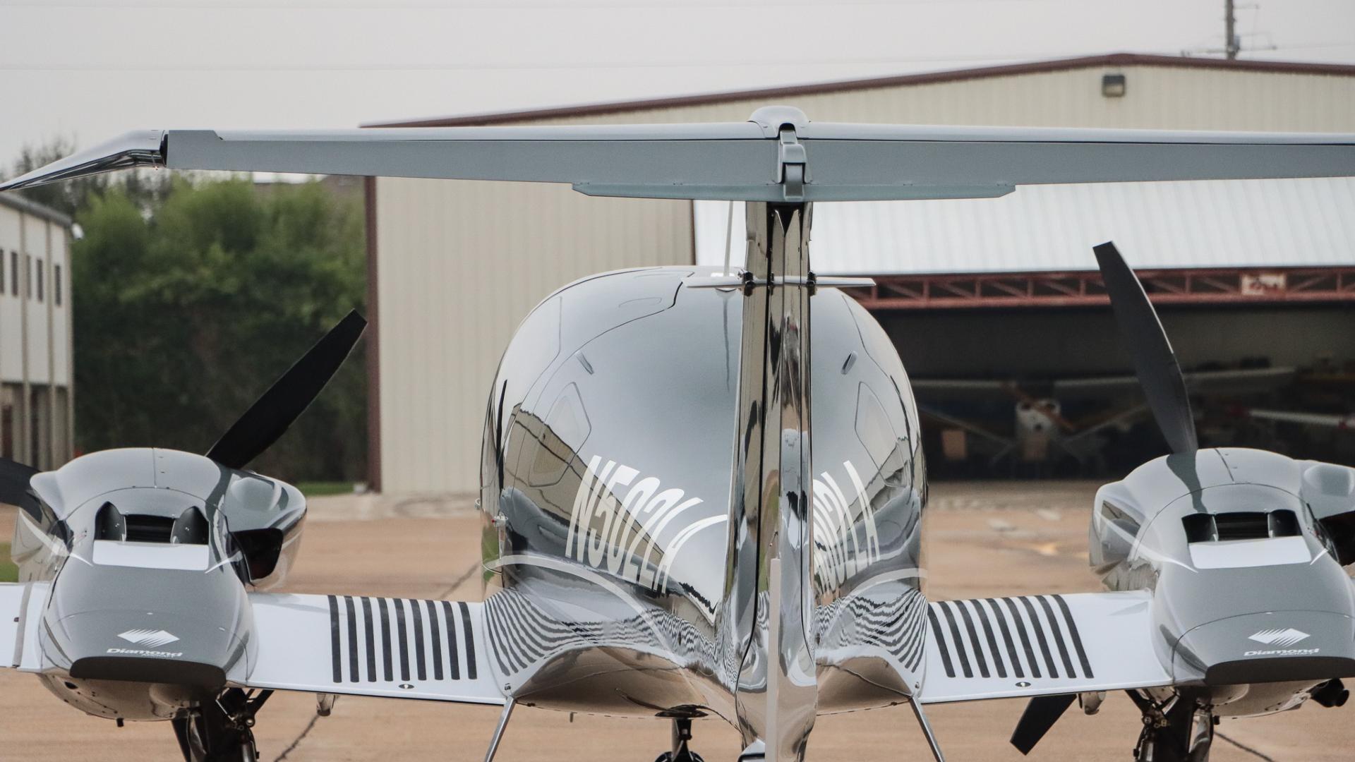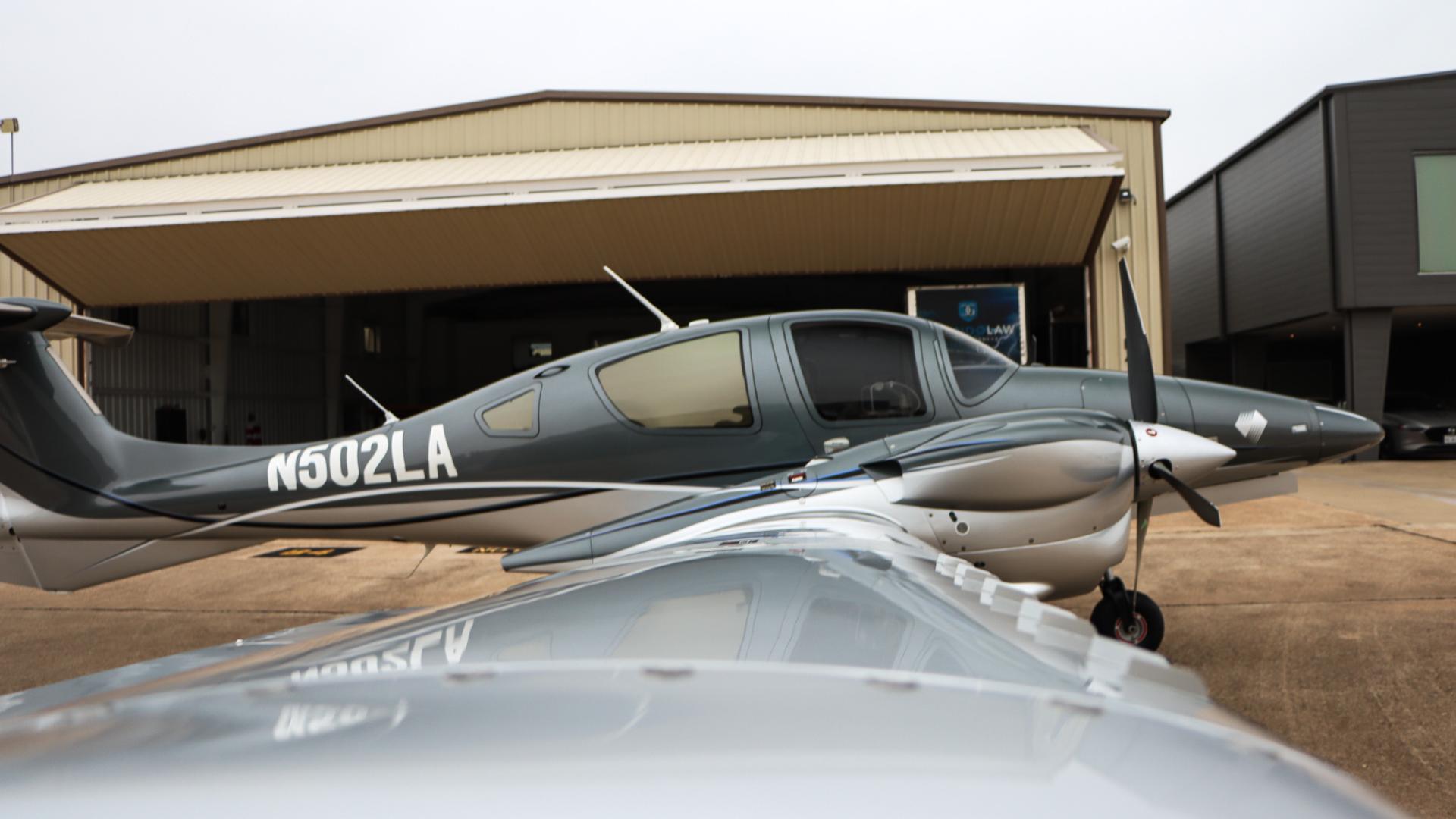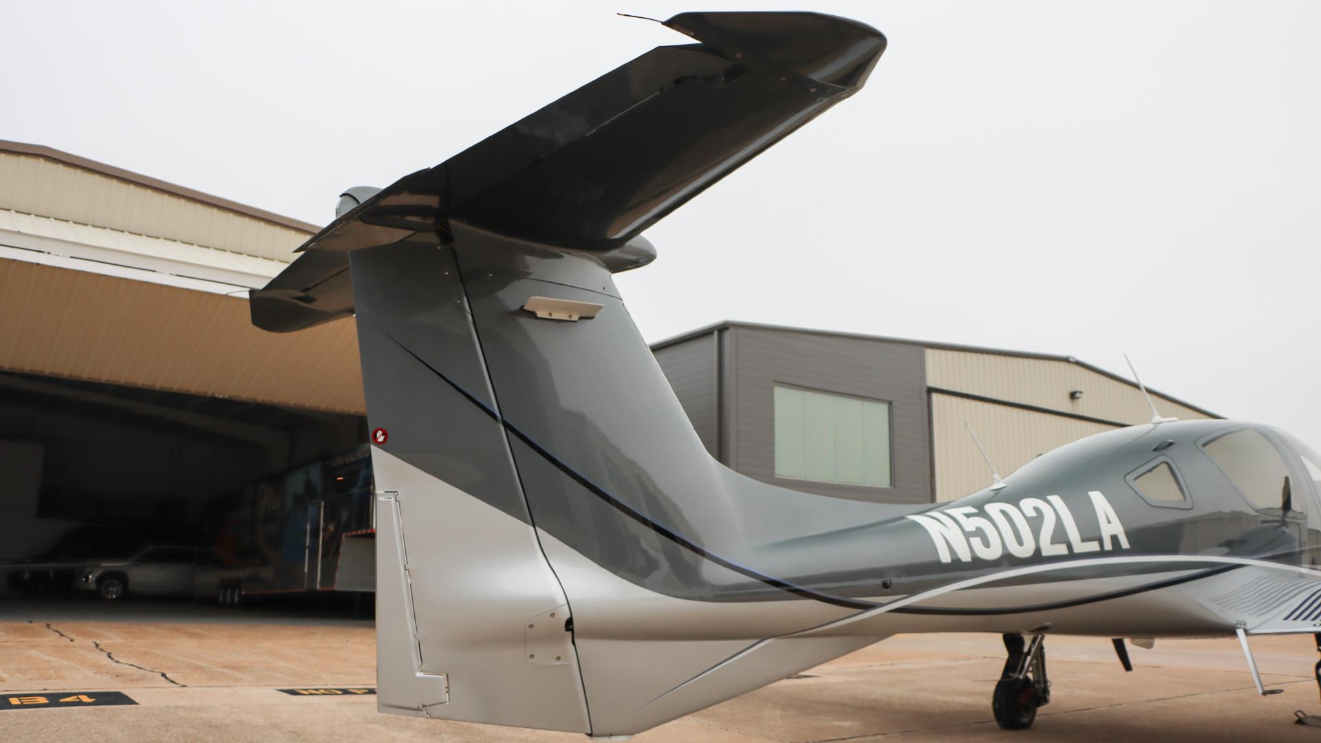 This Diamond DA62 features the striking Diamond Premium Anthracite Metallic base color, a deep, modern shade that gives the aircraft a commanding and upscale presence. The metallic finish adds dimension and highlights the DA62’s sleek composite curves under any lighting. Complementing the bold Anthracite, refined Silver accents run cleanly along the airframe, creating a balanced, elegant contrast that enhances the aircraft’s overall sophistication. The combination of these two premium colors results in a distinctive, contemporary look that sets this DA62 apart on any ramp—both stylish and timeless.