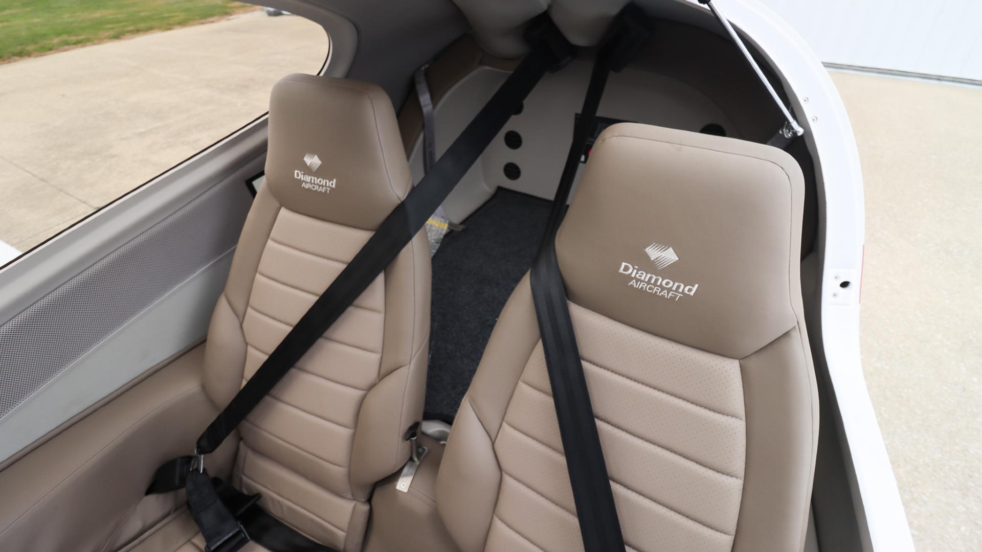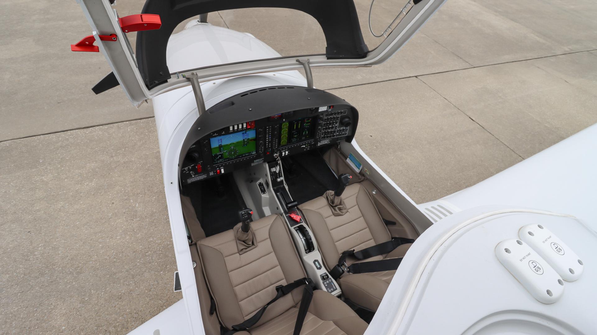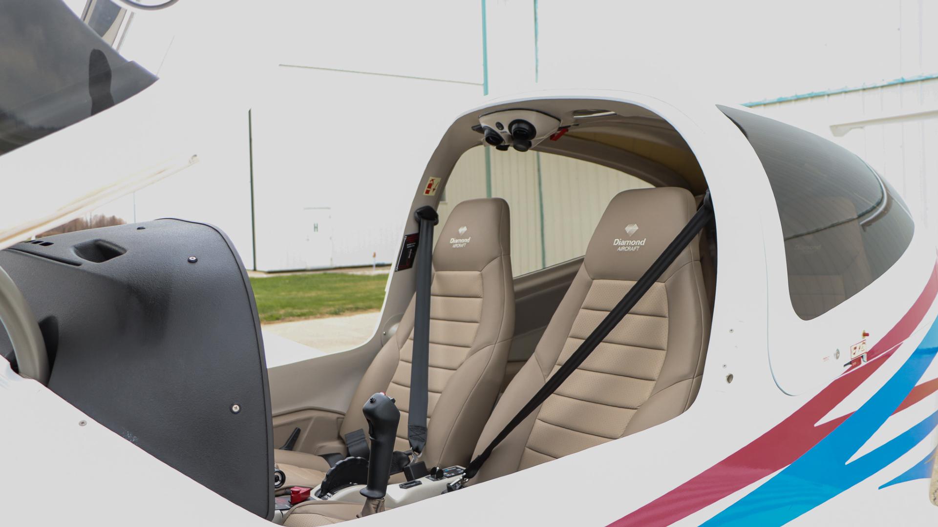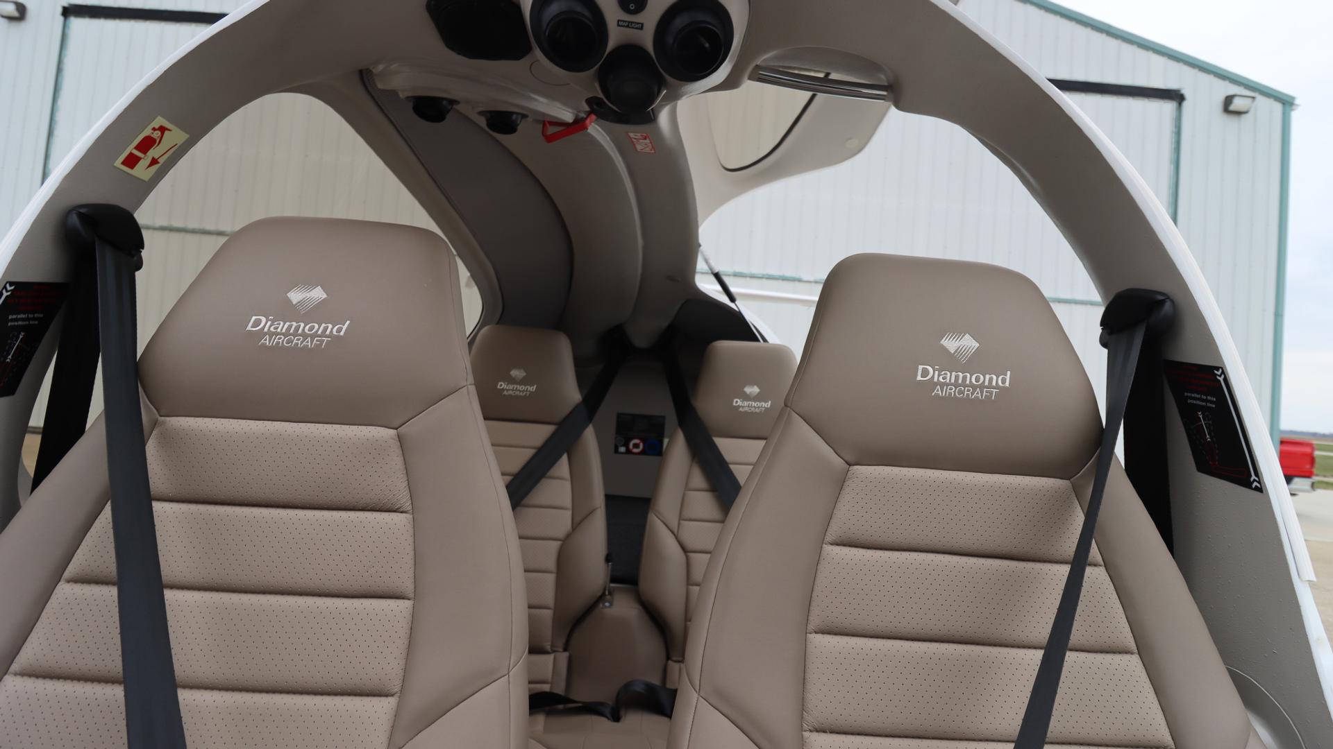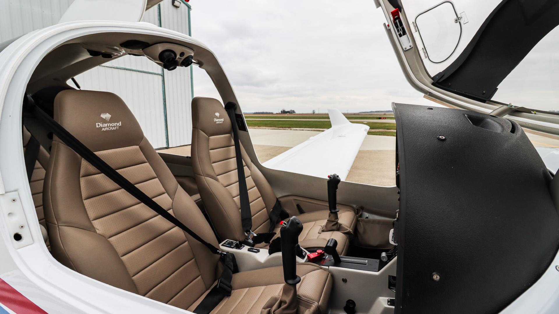Finished in a crisp white base accented by bold red and blue exterior striping, this aircraft turns heads on the ramp while maintaining Diamond’s signature aerodynamic elegance.