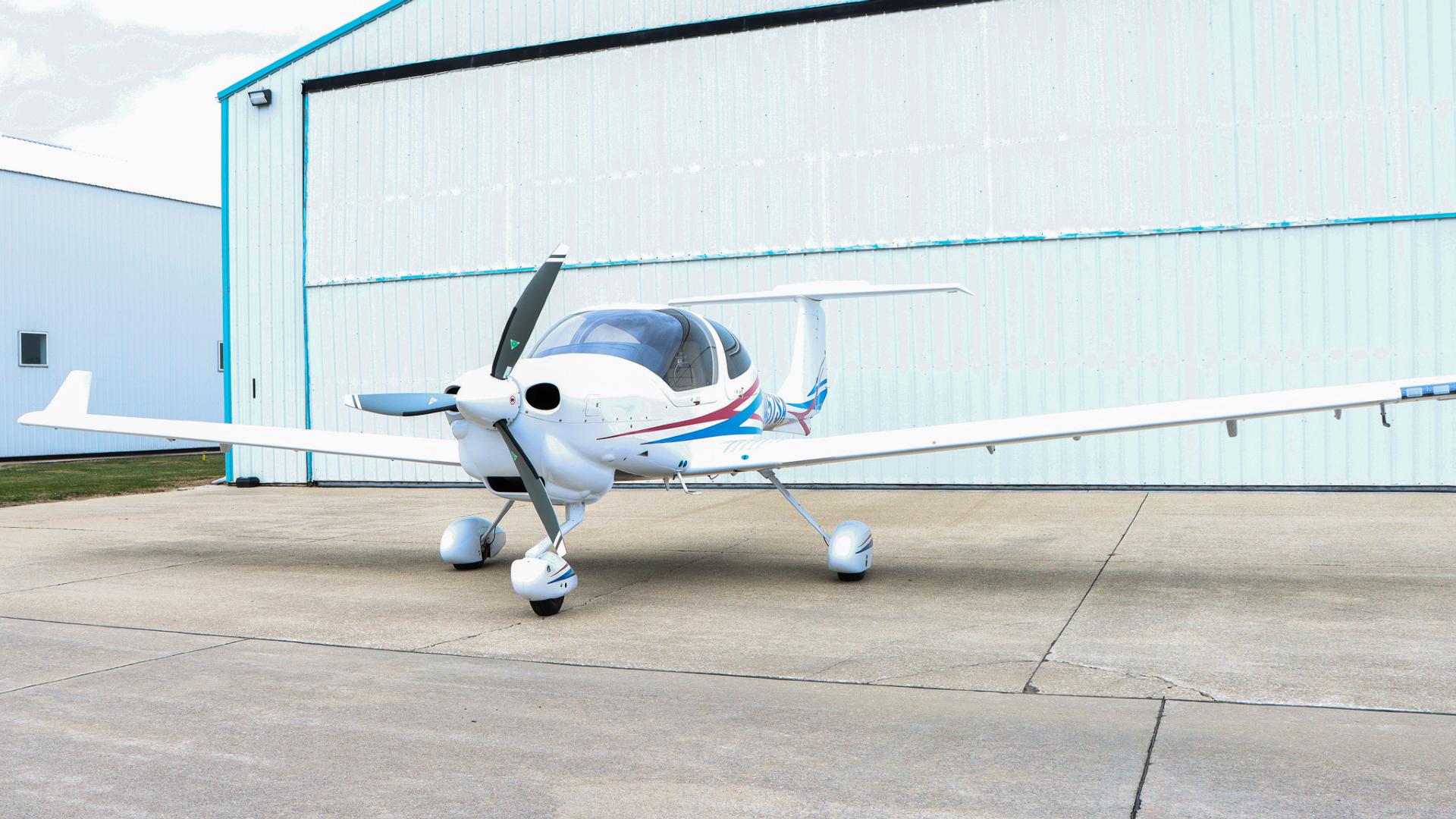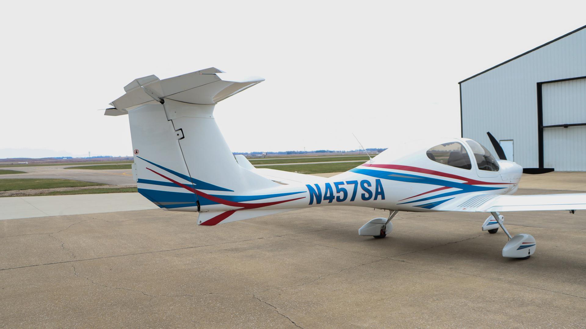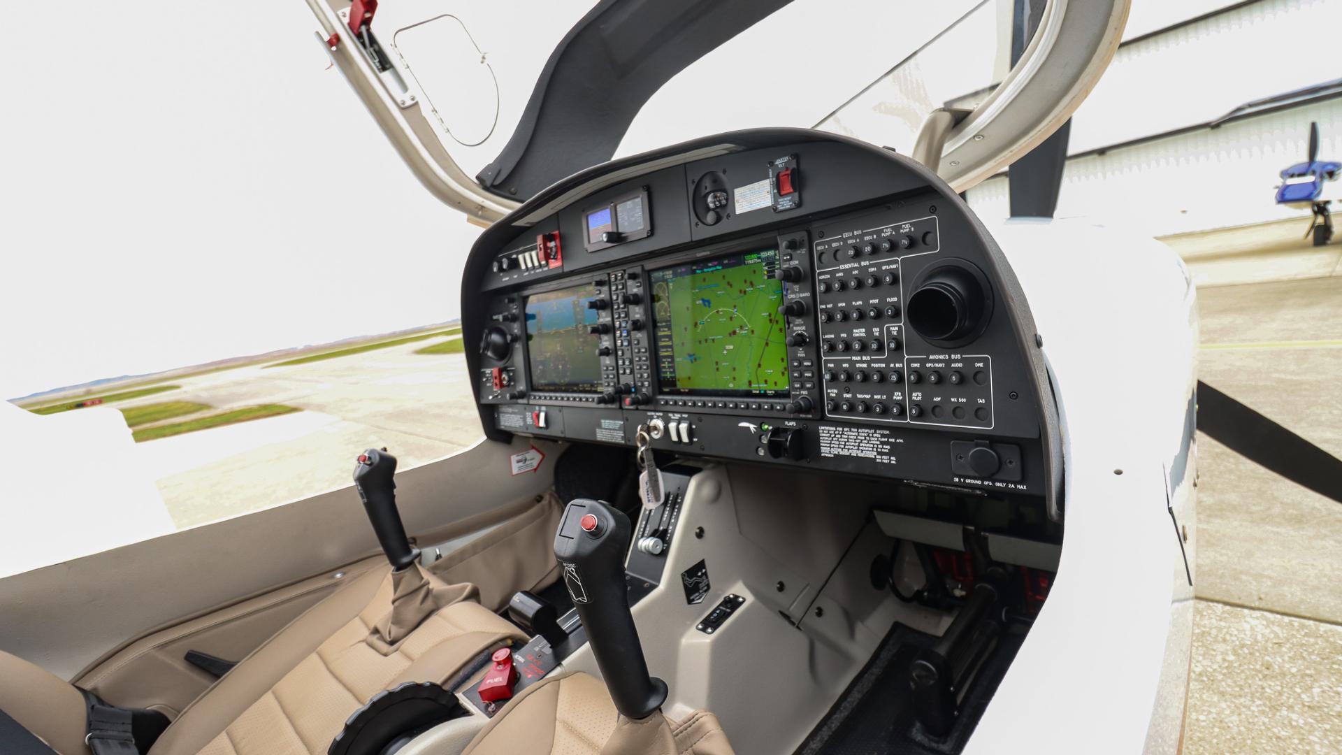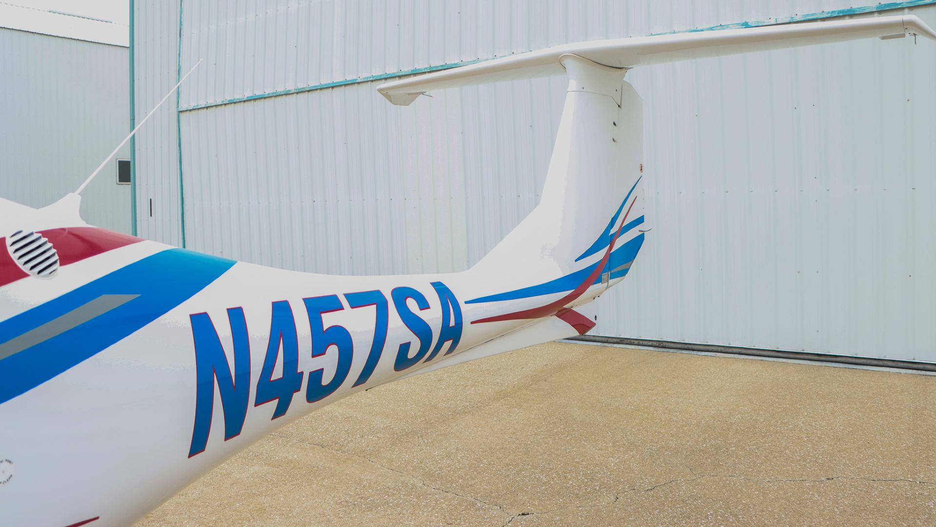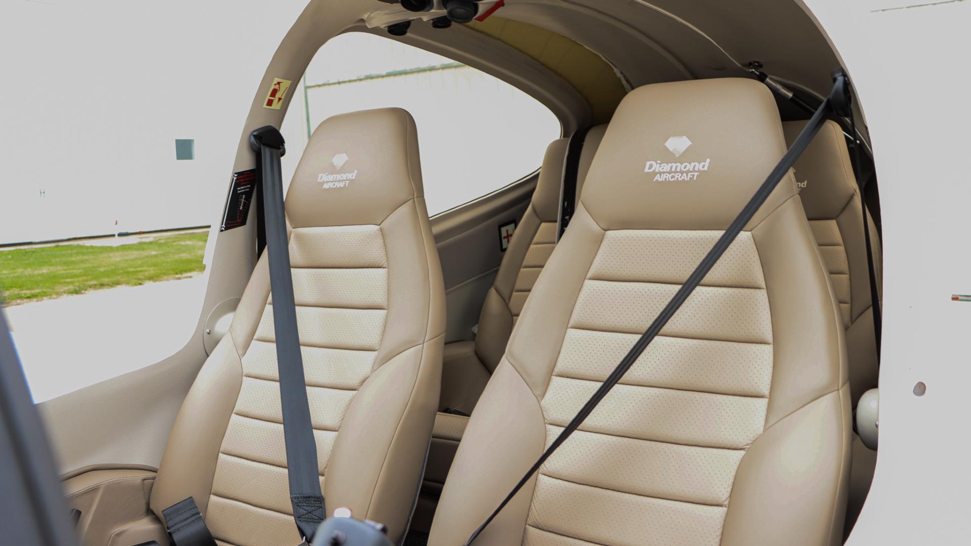 Finished in a crisp white base accented by bold red and blue exterior striping, this aircraft turns heads on the ramp while maintaining Diamond’s signature aerodynamic elegance.