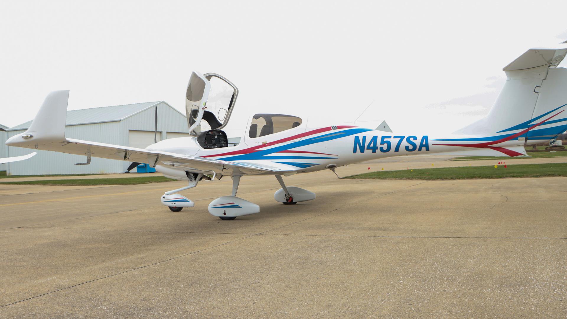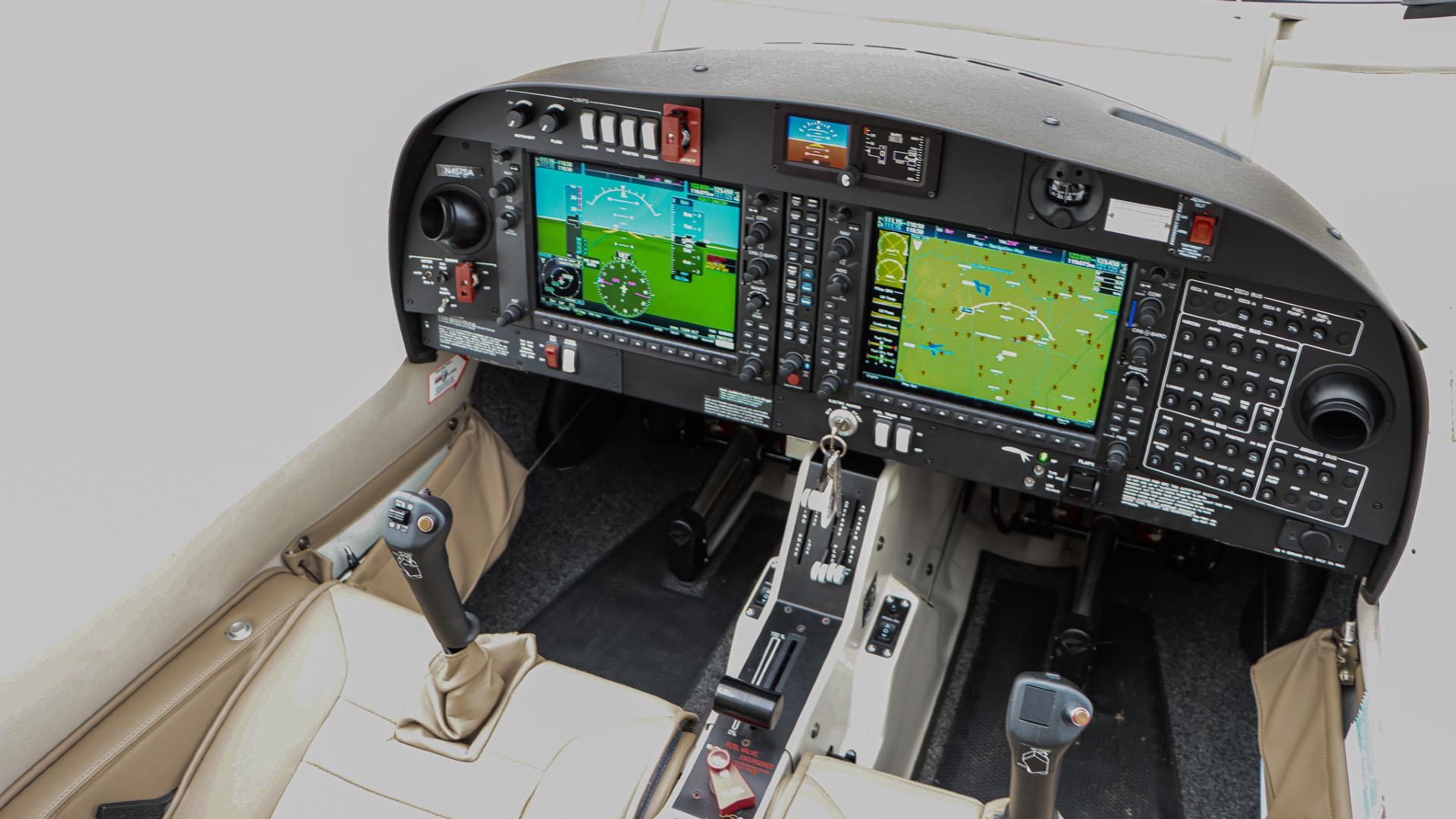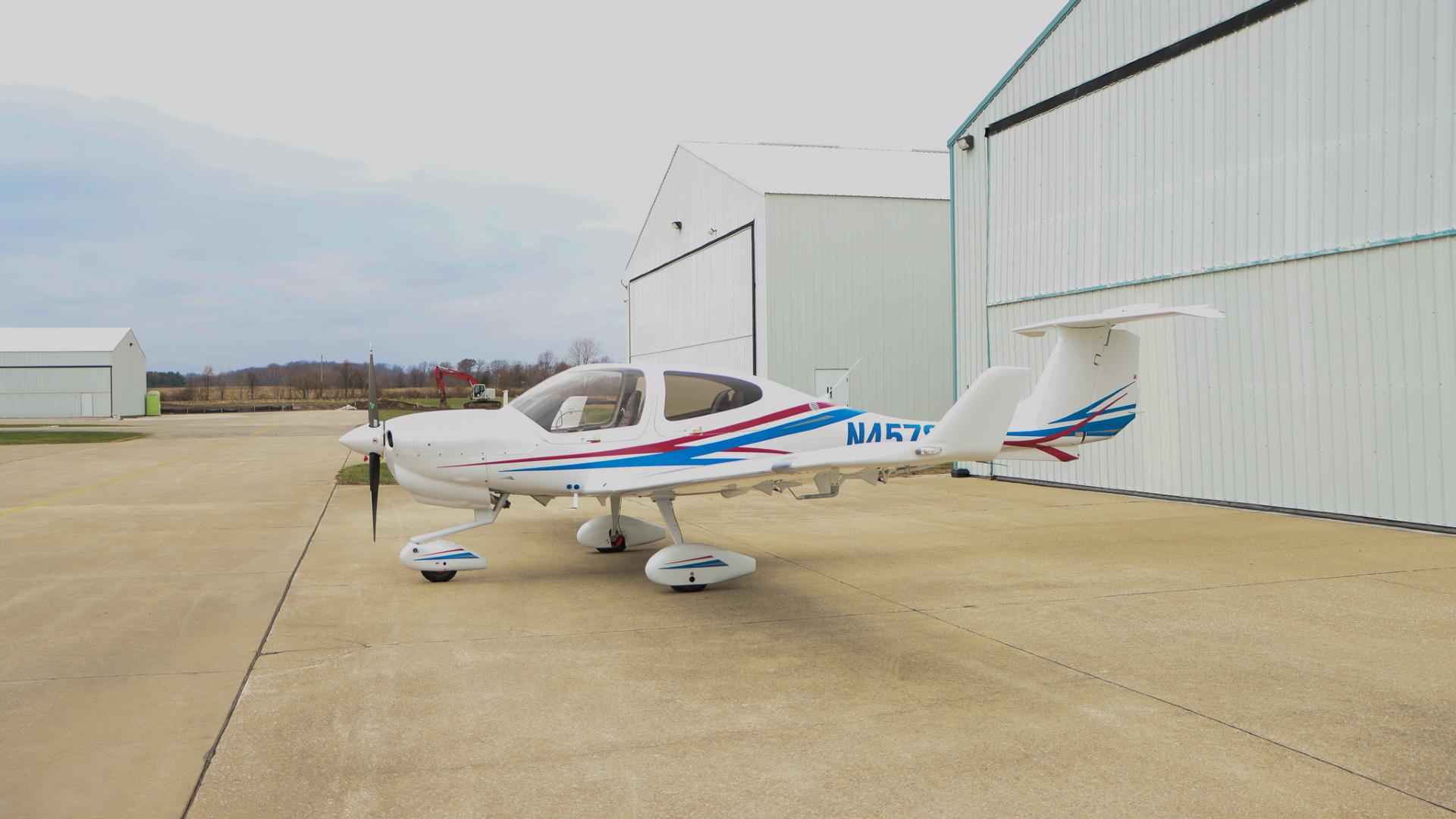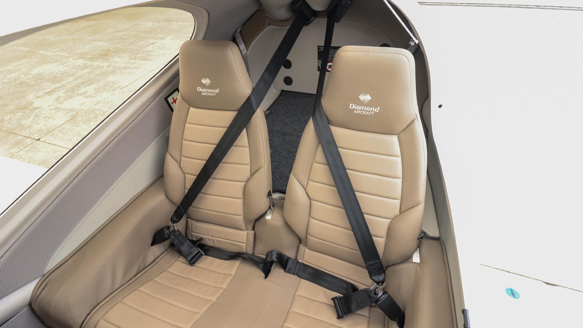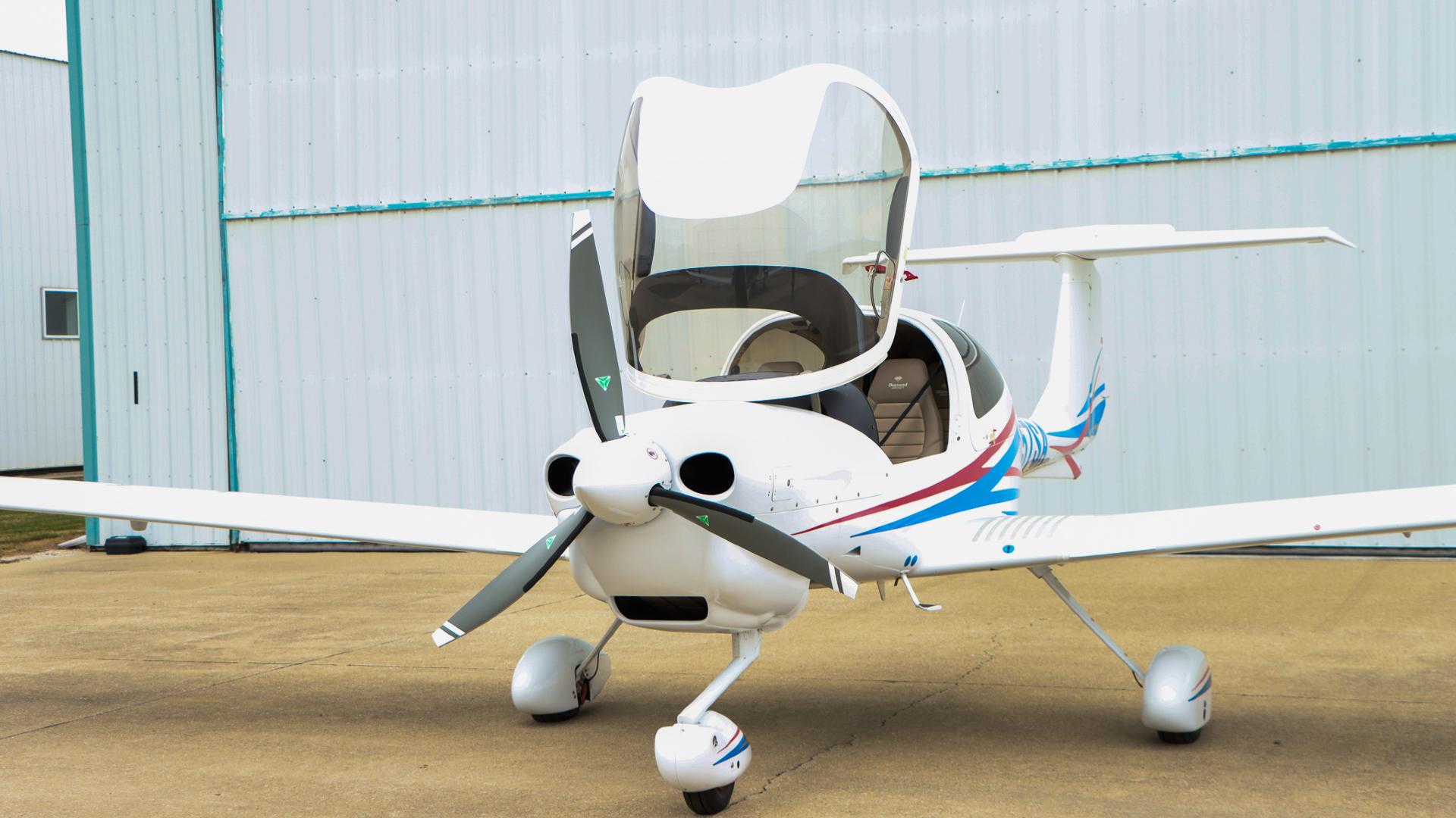 Finished in a crisp white base accented by bold red and blue exterior striping, this aircraft turns heads on the ramp while maintaining Diamond’s signature aerodynamic elegance.