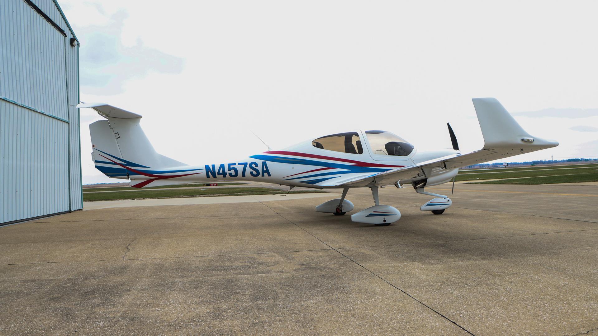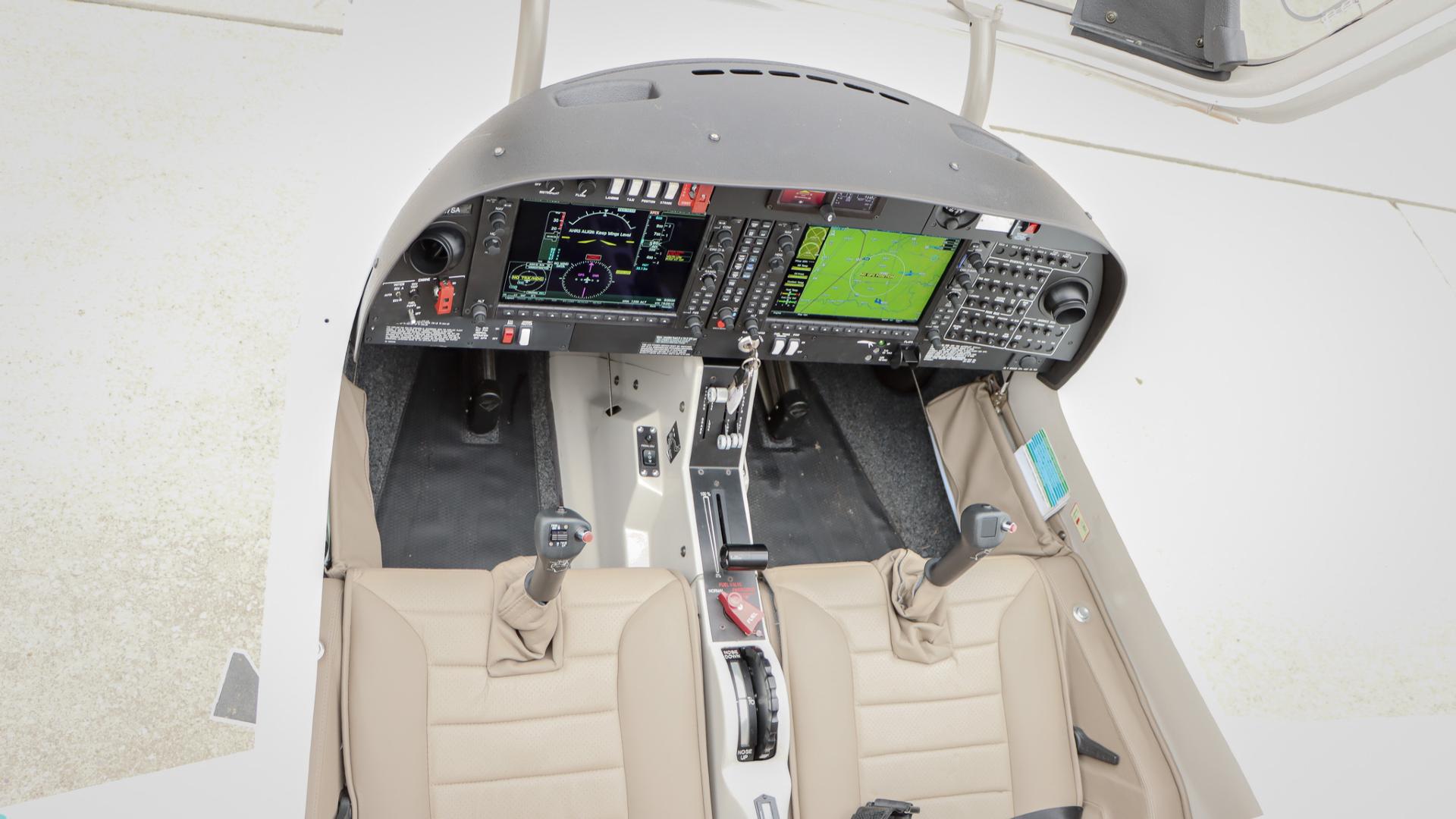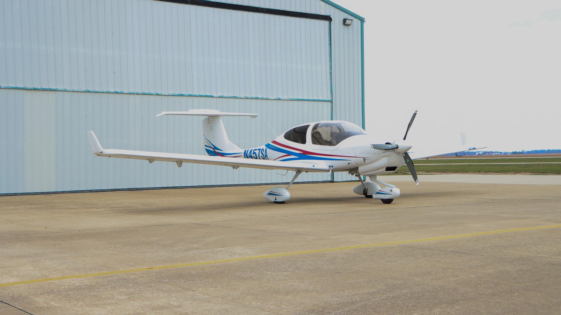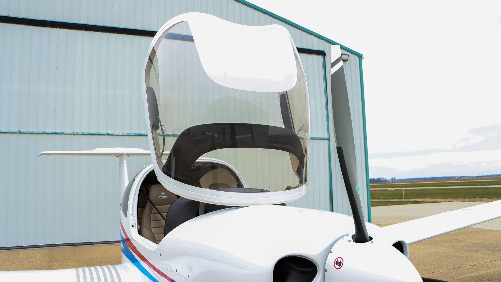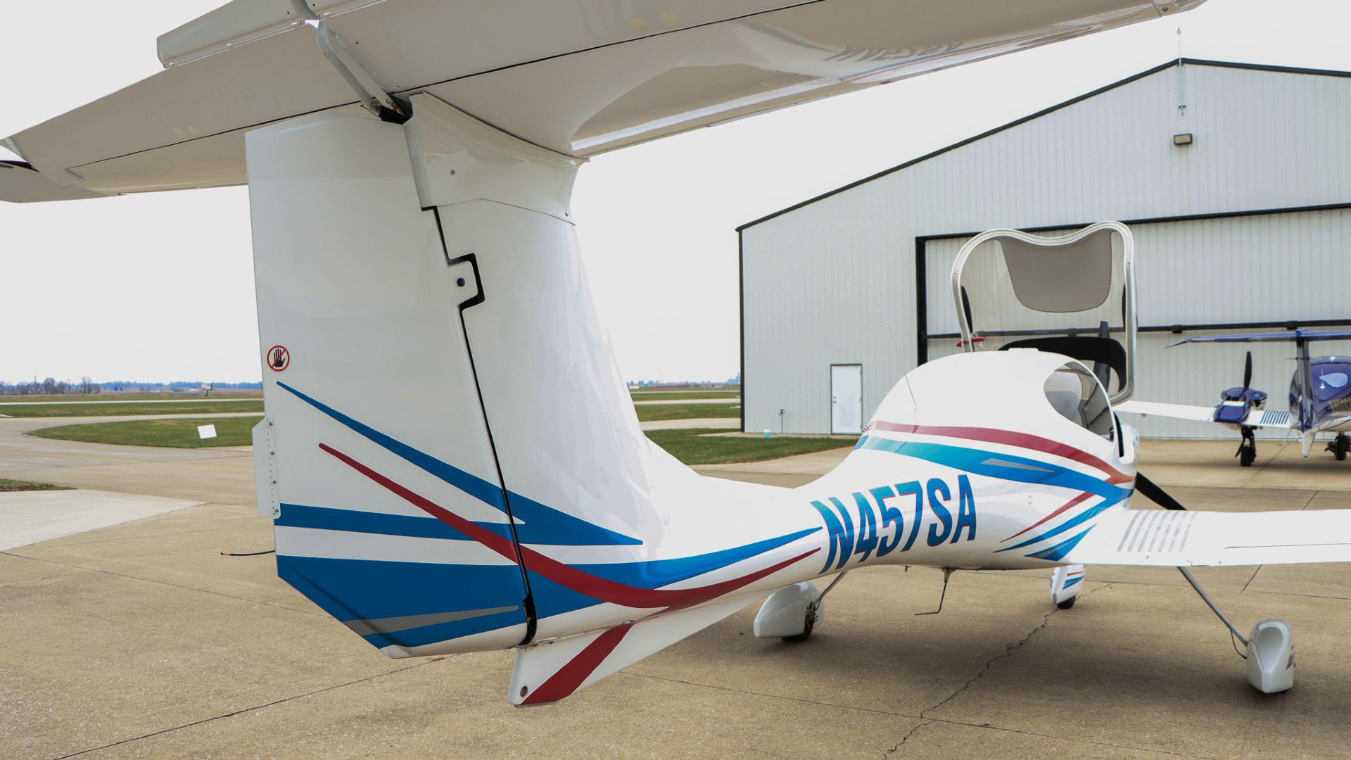 Finished in a crisp white base accented by bold red and blue exterior striping, this aircraft turns heads on the ramp while maintaining Diamond’s signature aerodynamic elegance.