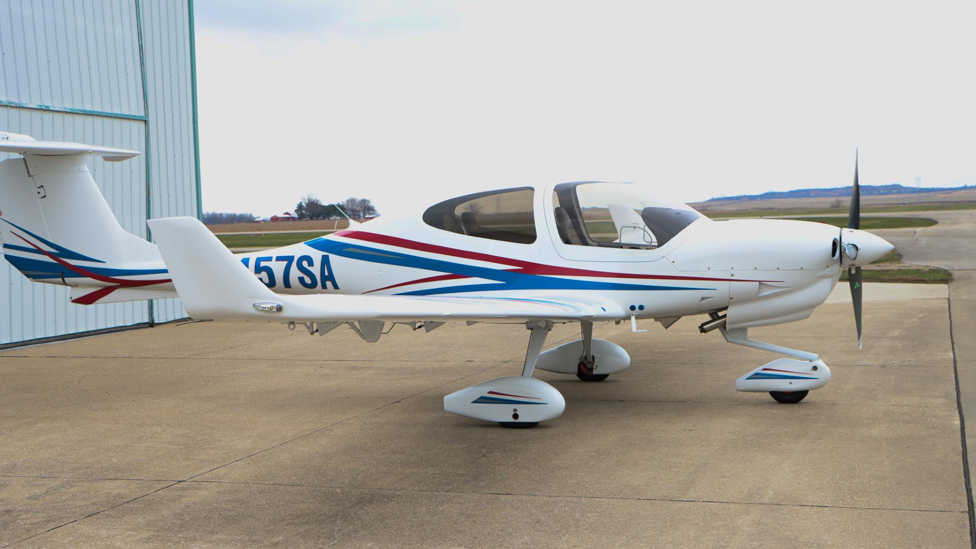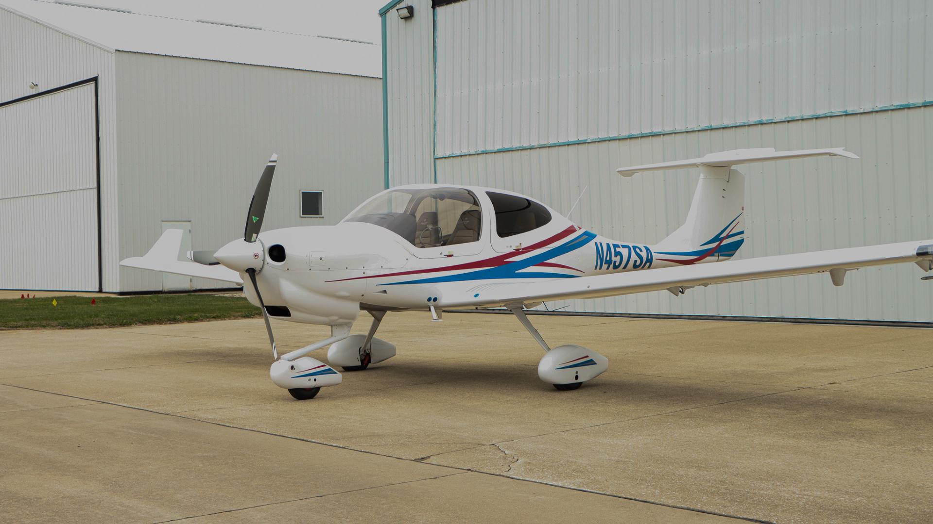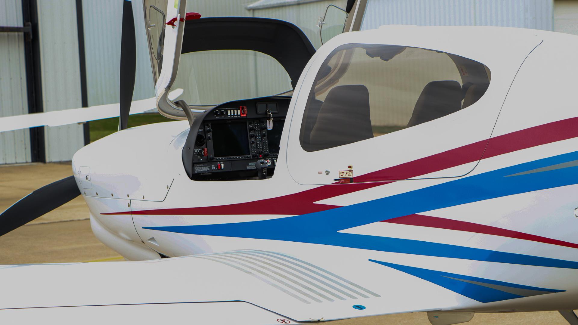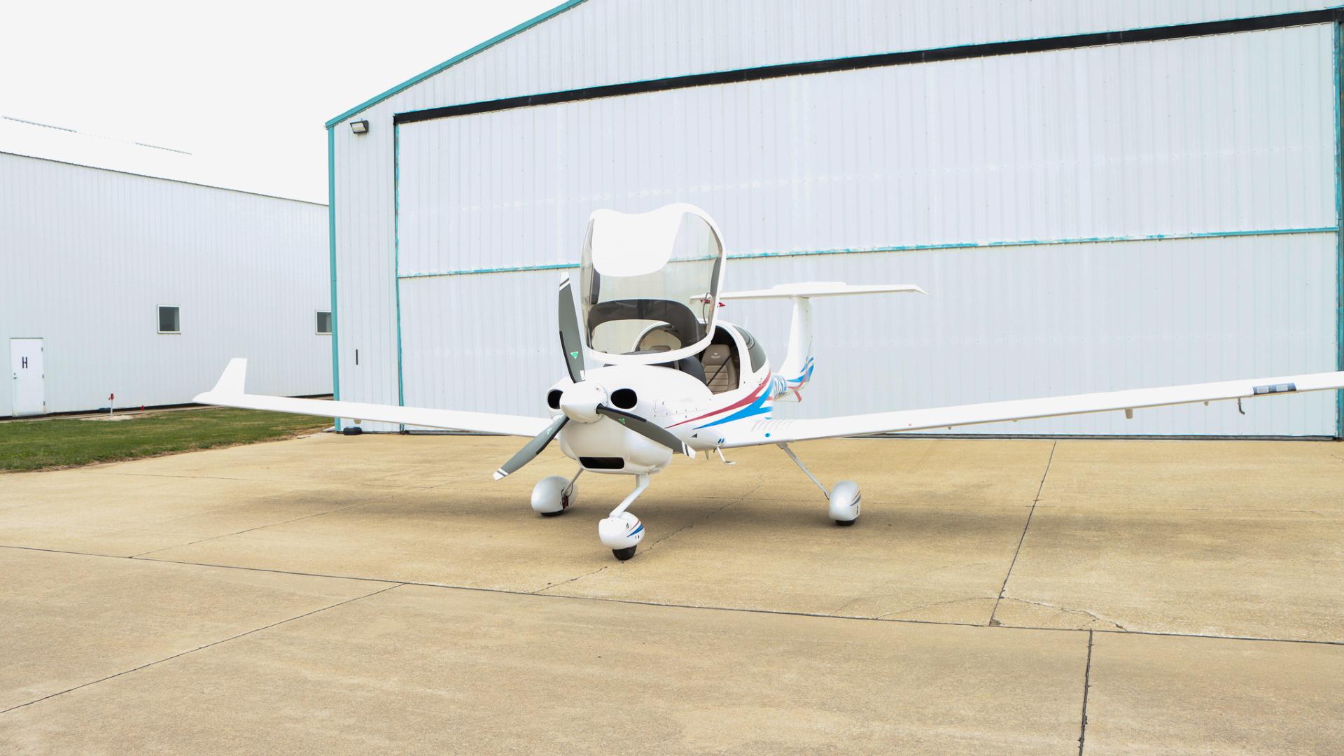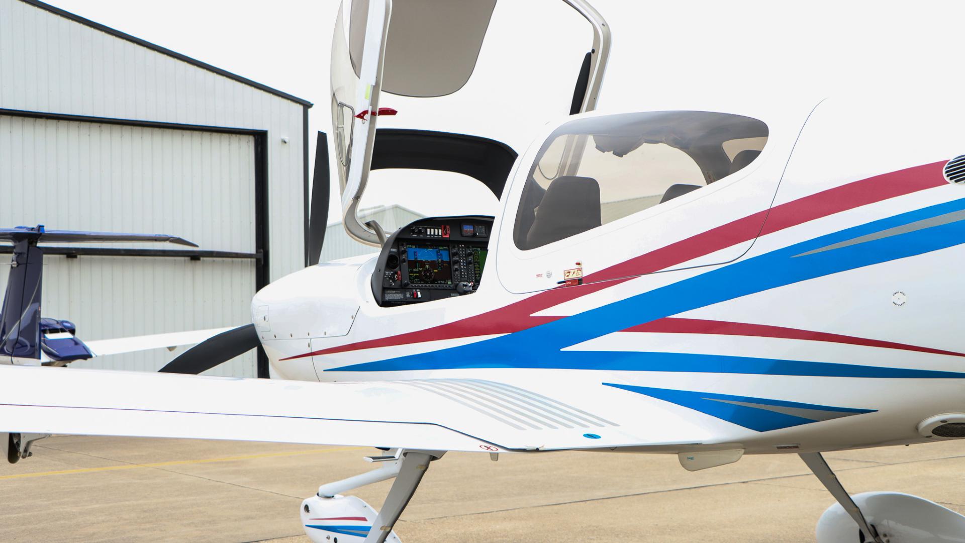 Finished in a crisp white base accented by bold red and blue exterior striping, this aircraft turns heads on the ramp while maintaining Diamond’s signature aerodynamic elegance.