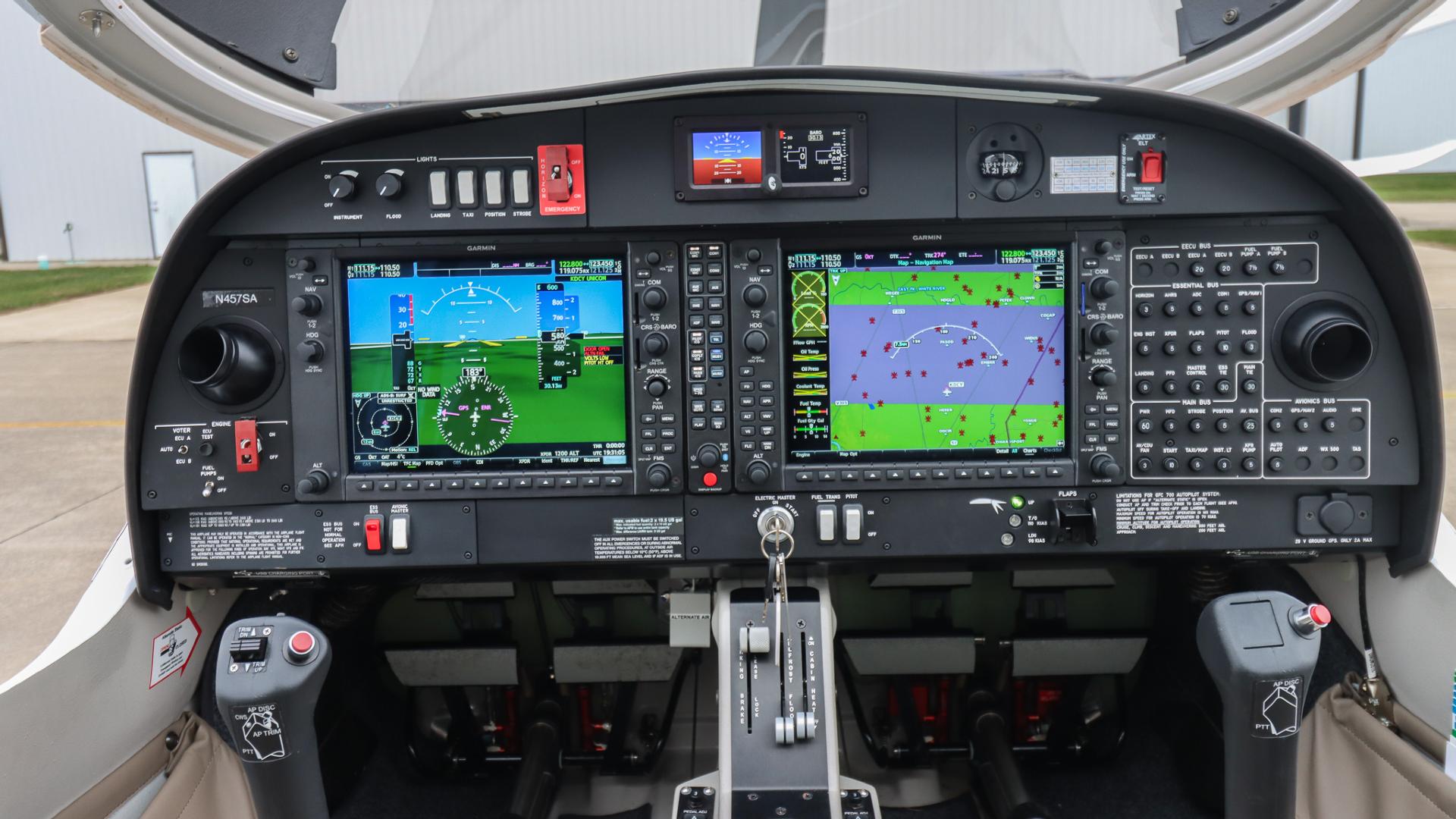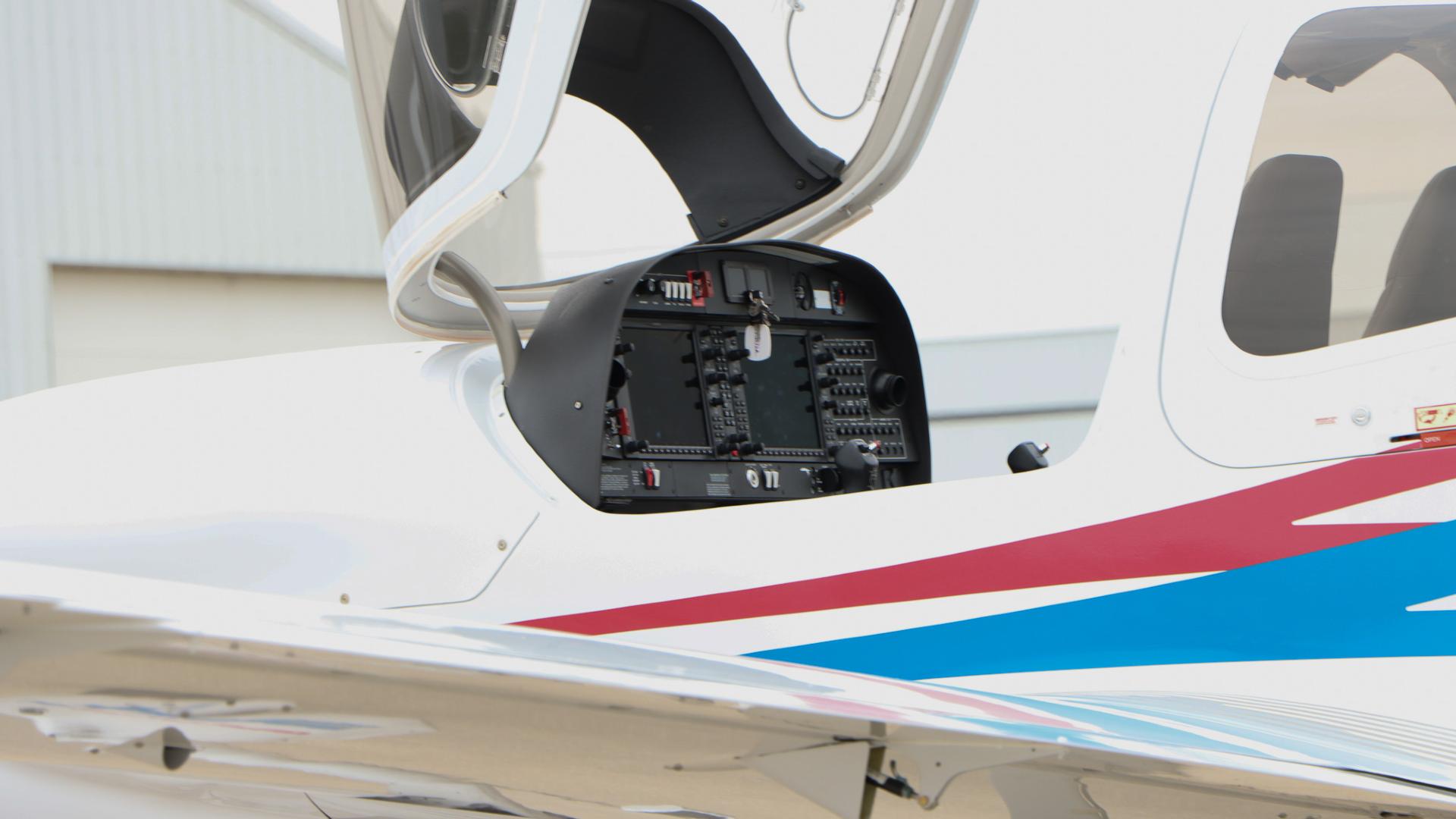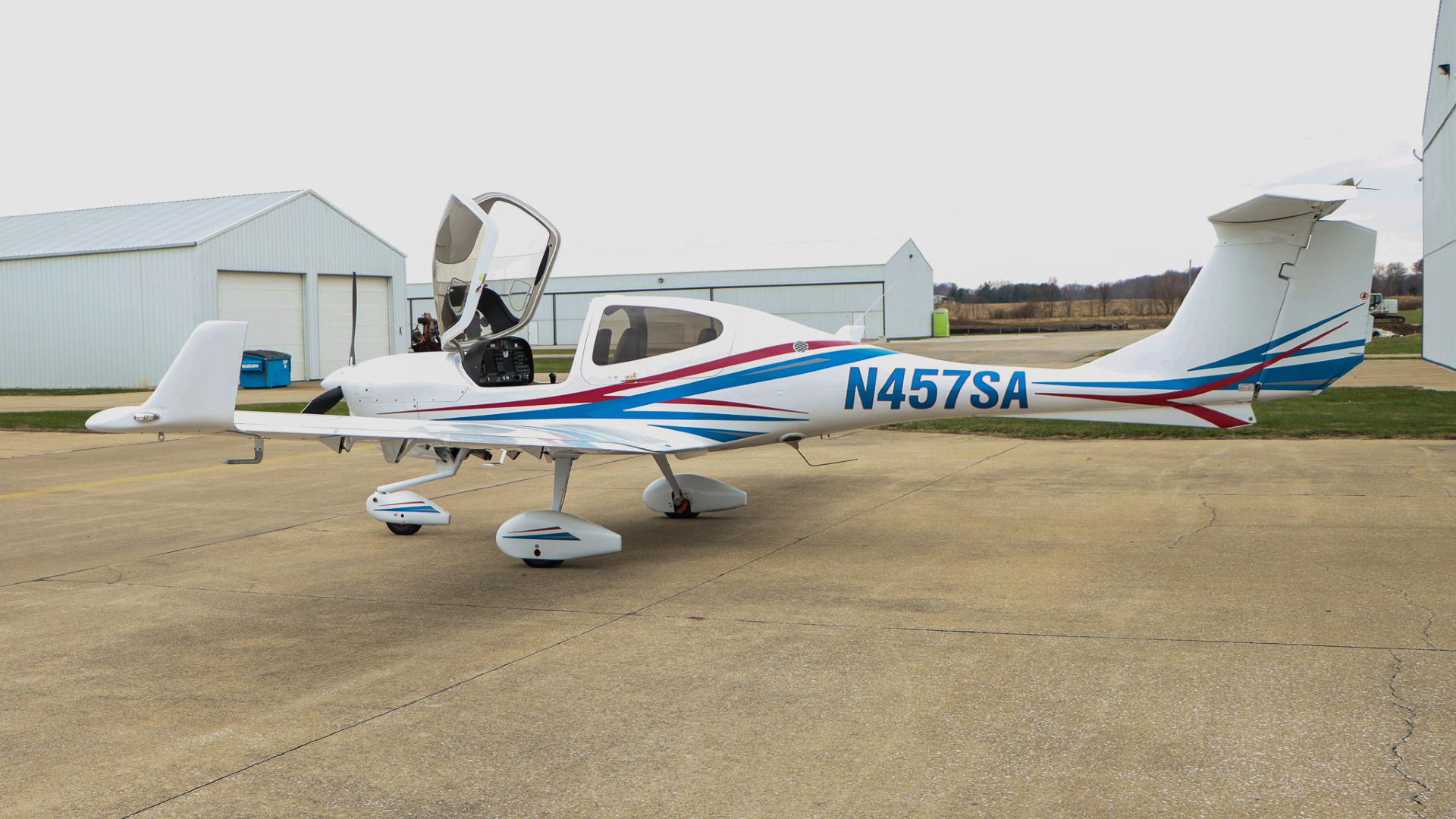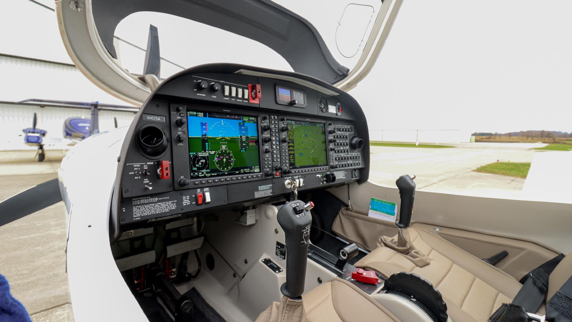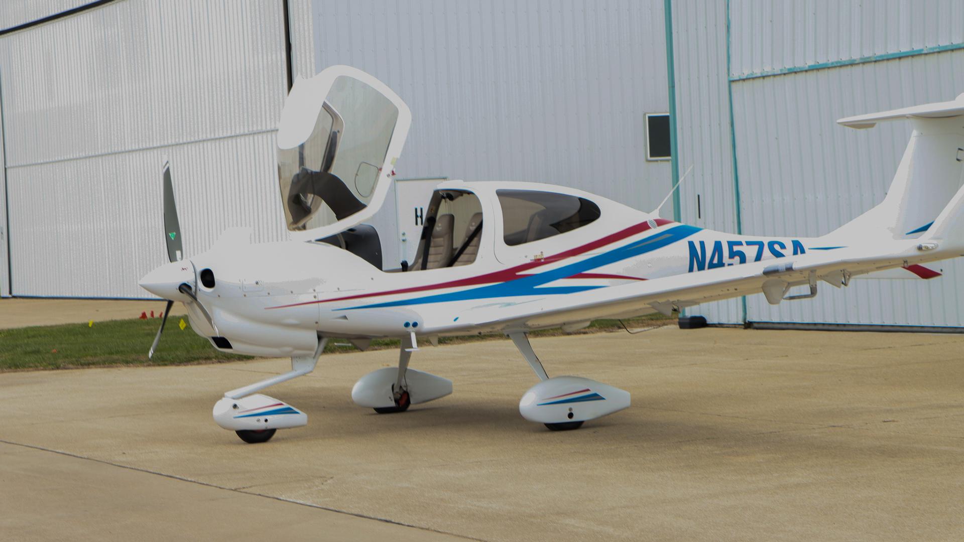 Finished in a crisp white base accented by bold red and blue exterior striping, this aircraft turns heads on the ramp while maintaining Diamond’s signature aerodynamic elegance.