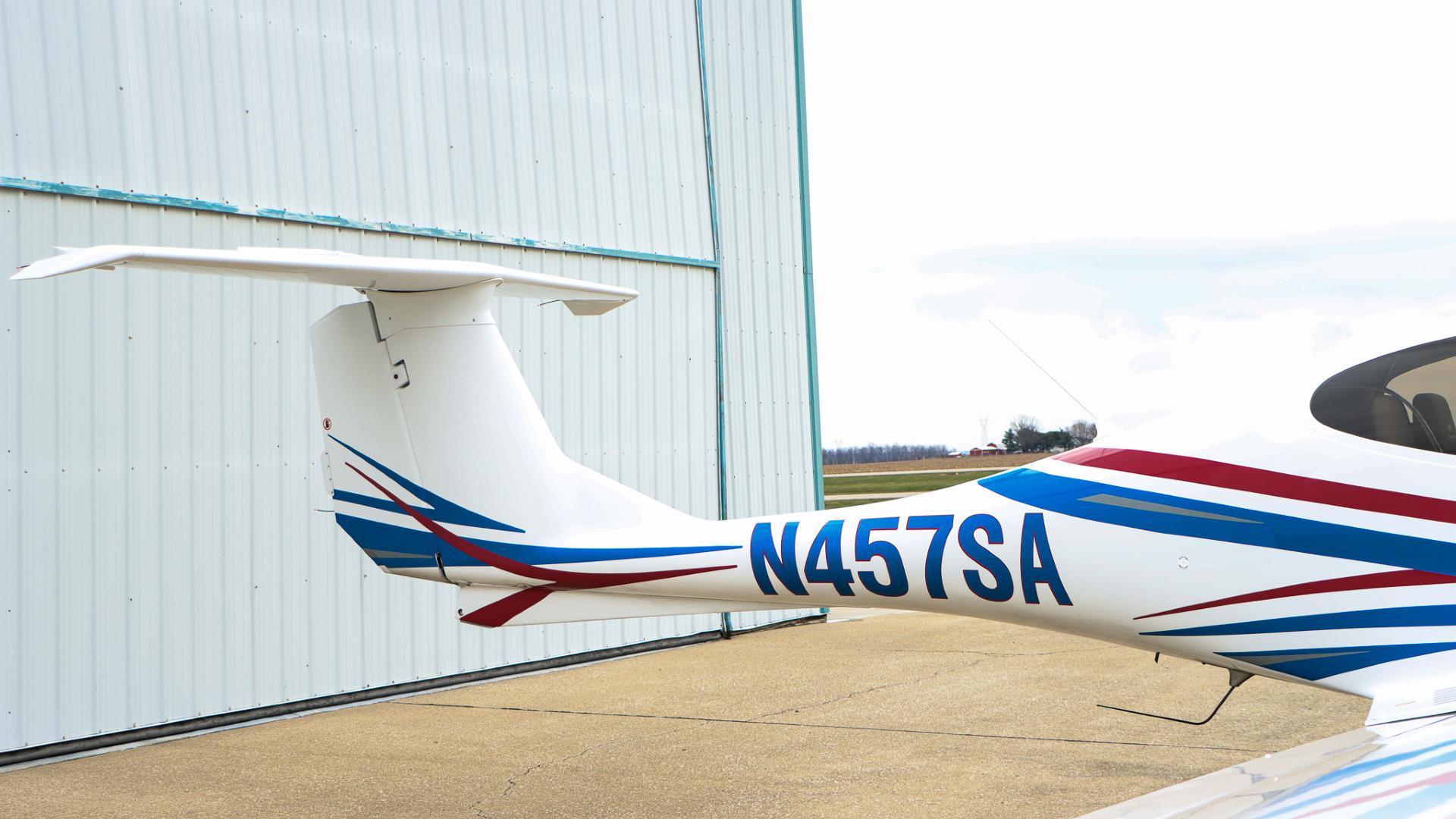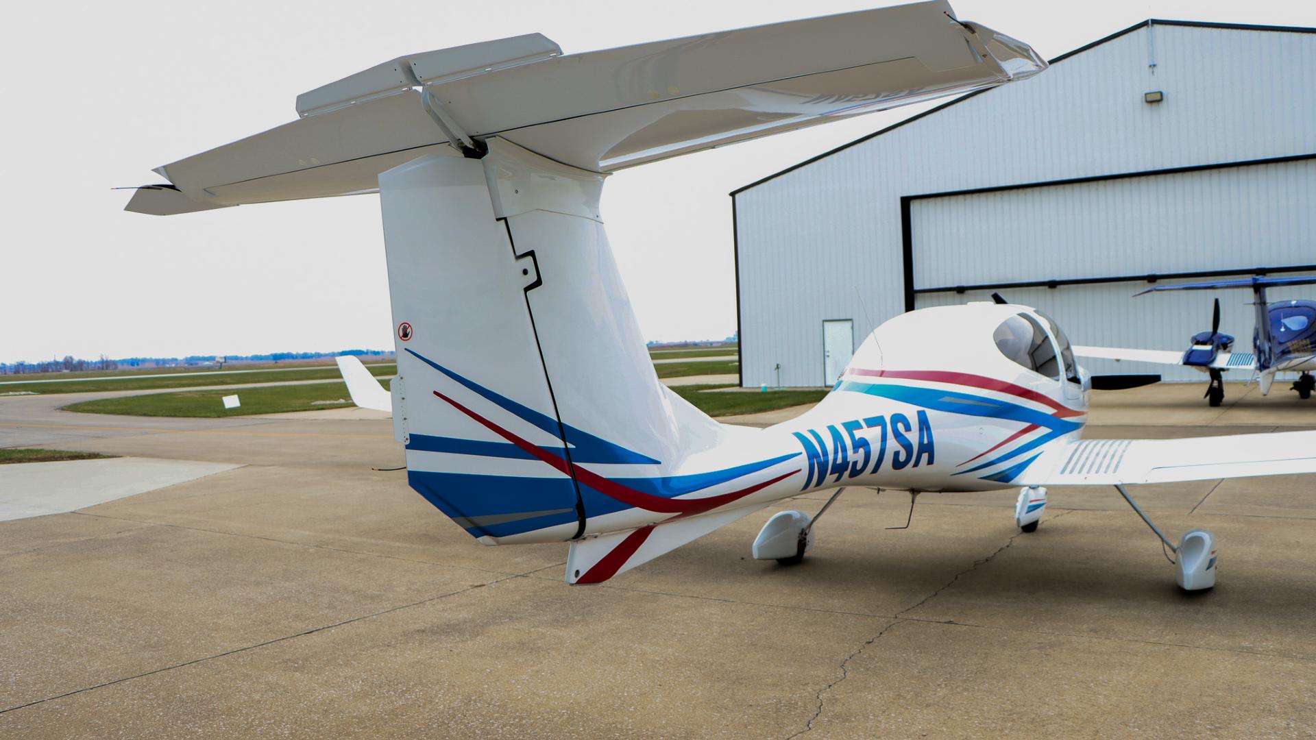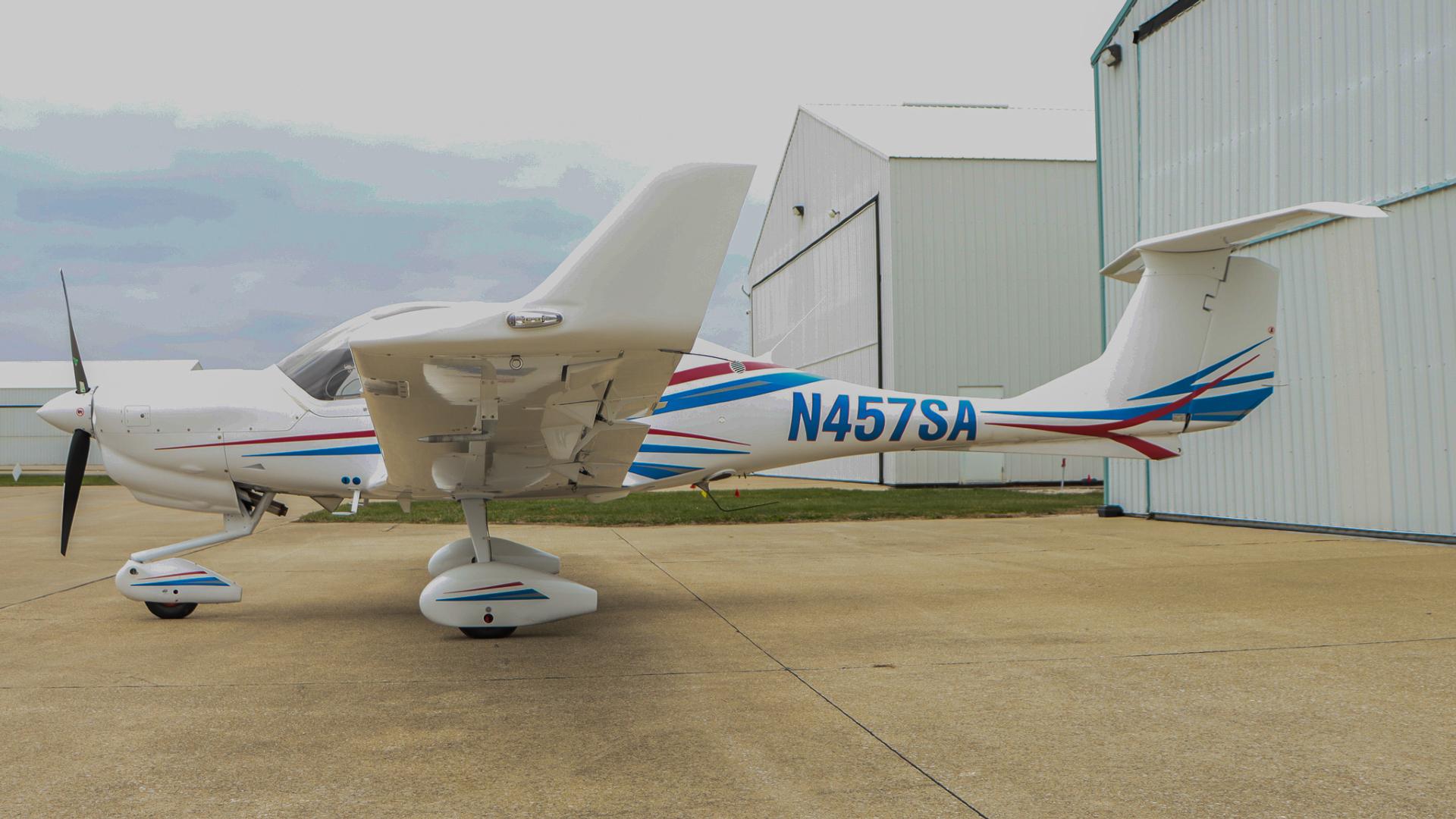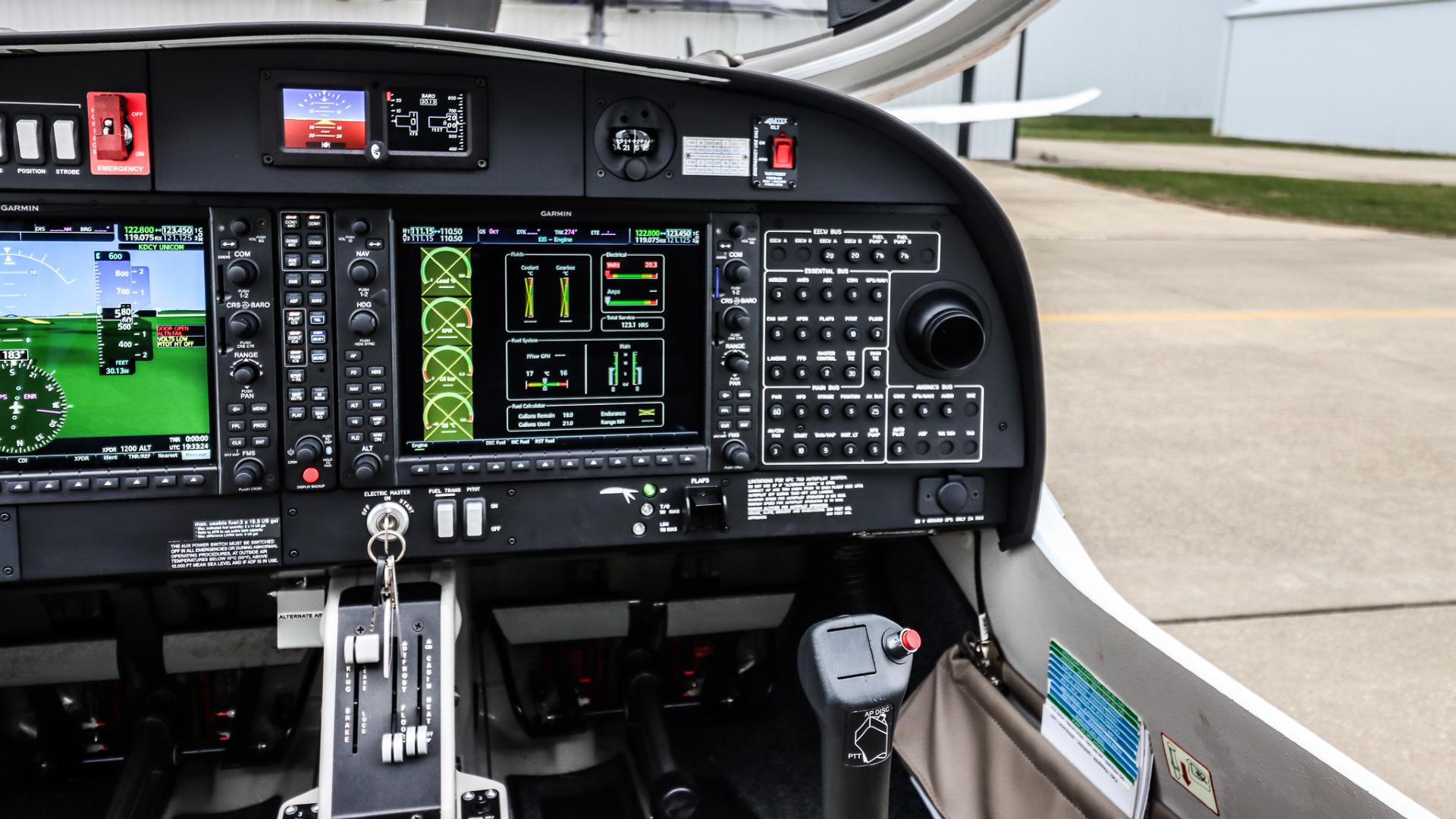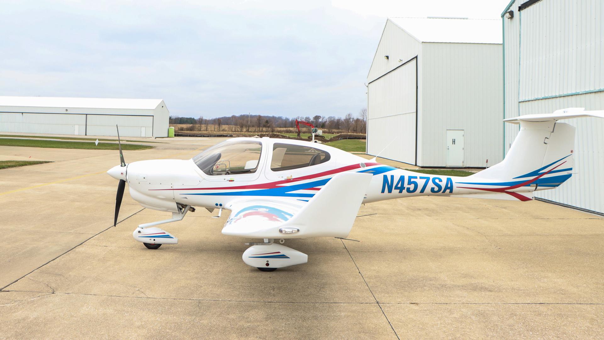 Finished in a crisp white base accented by bold red and blue exterior striping, this aircraft turns heads on the ramp while maintaining Diamond’s signature aerodynamic elegance.