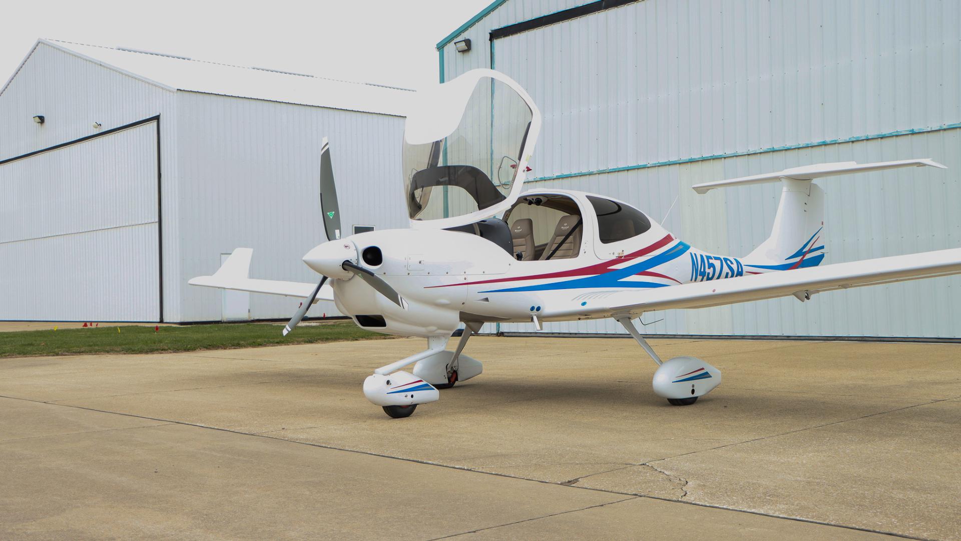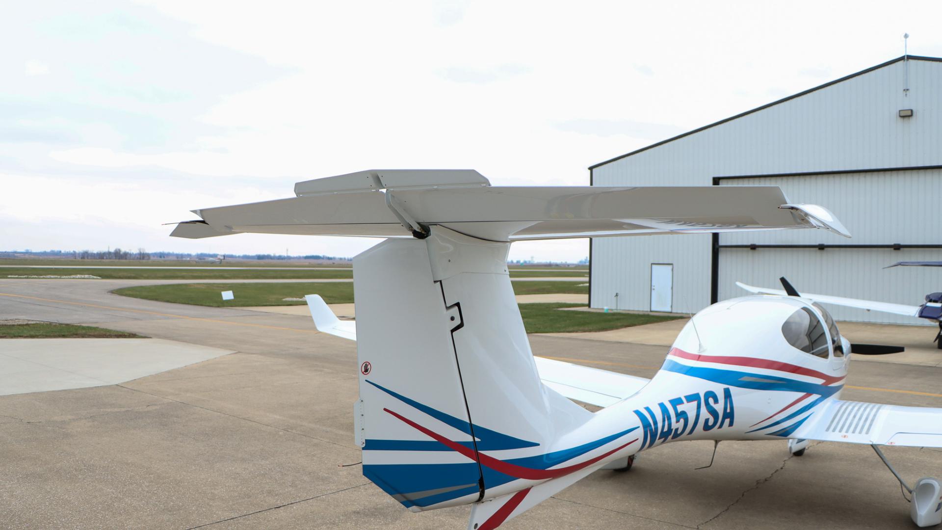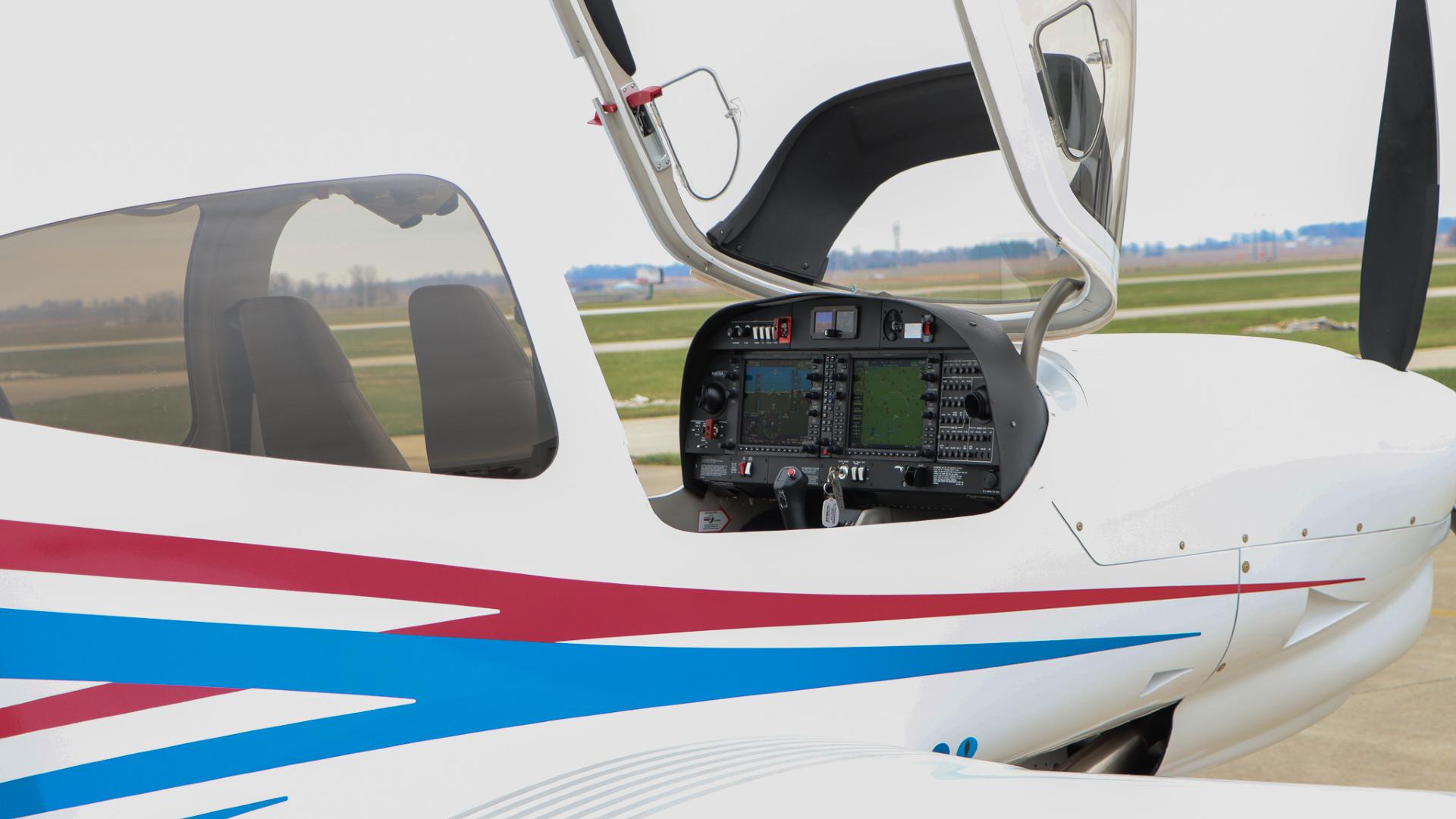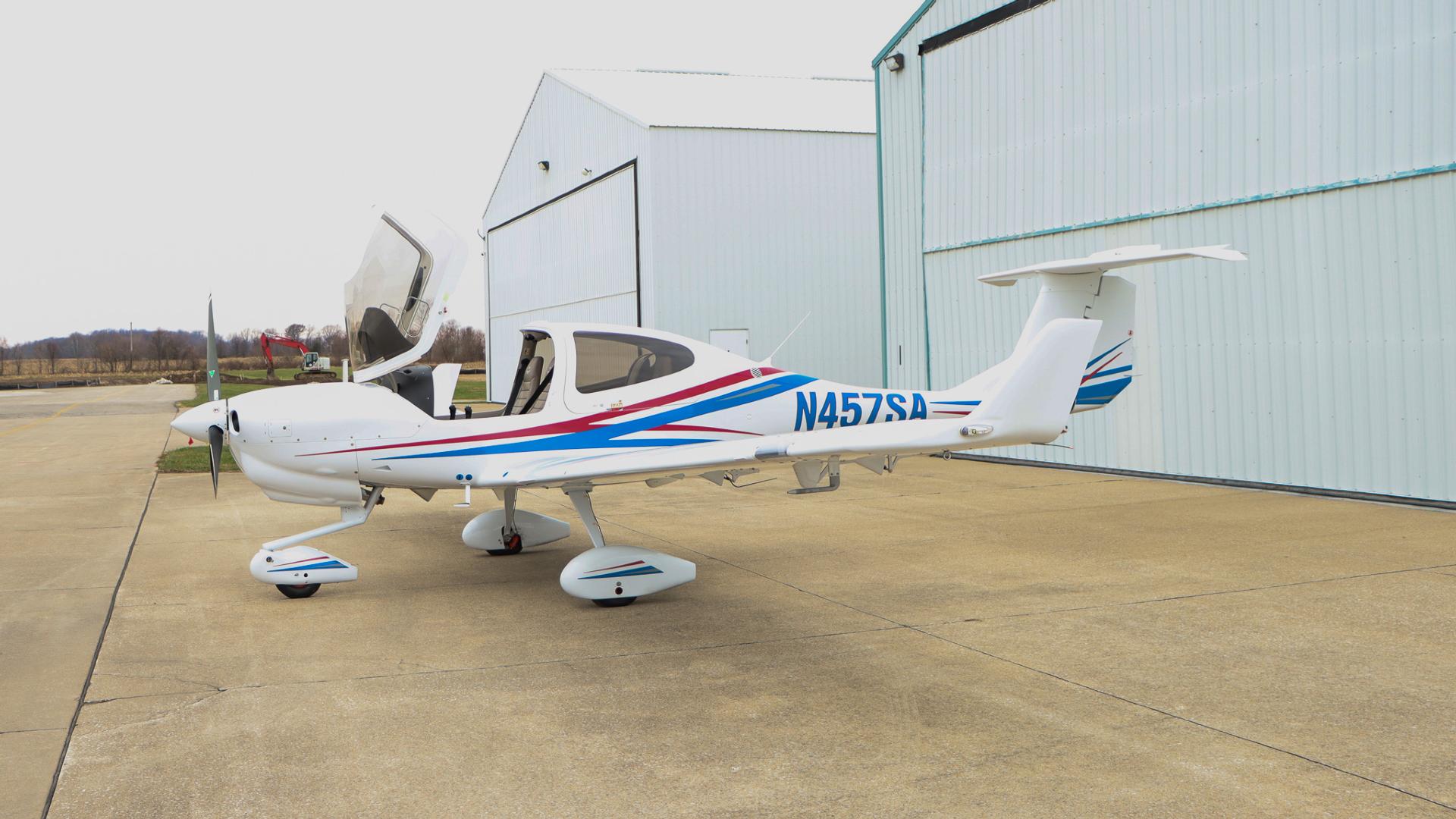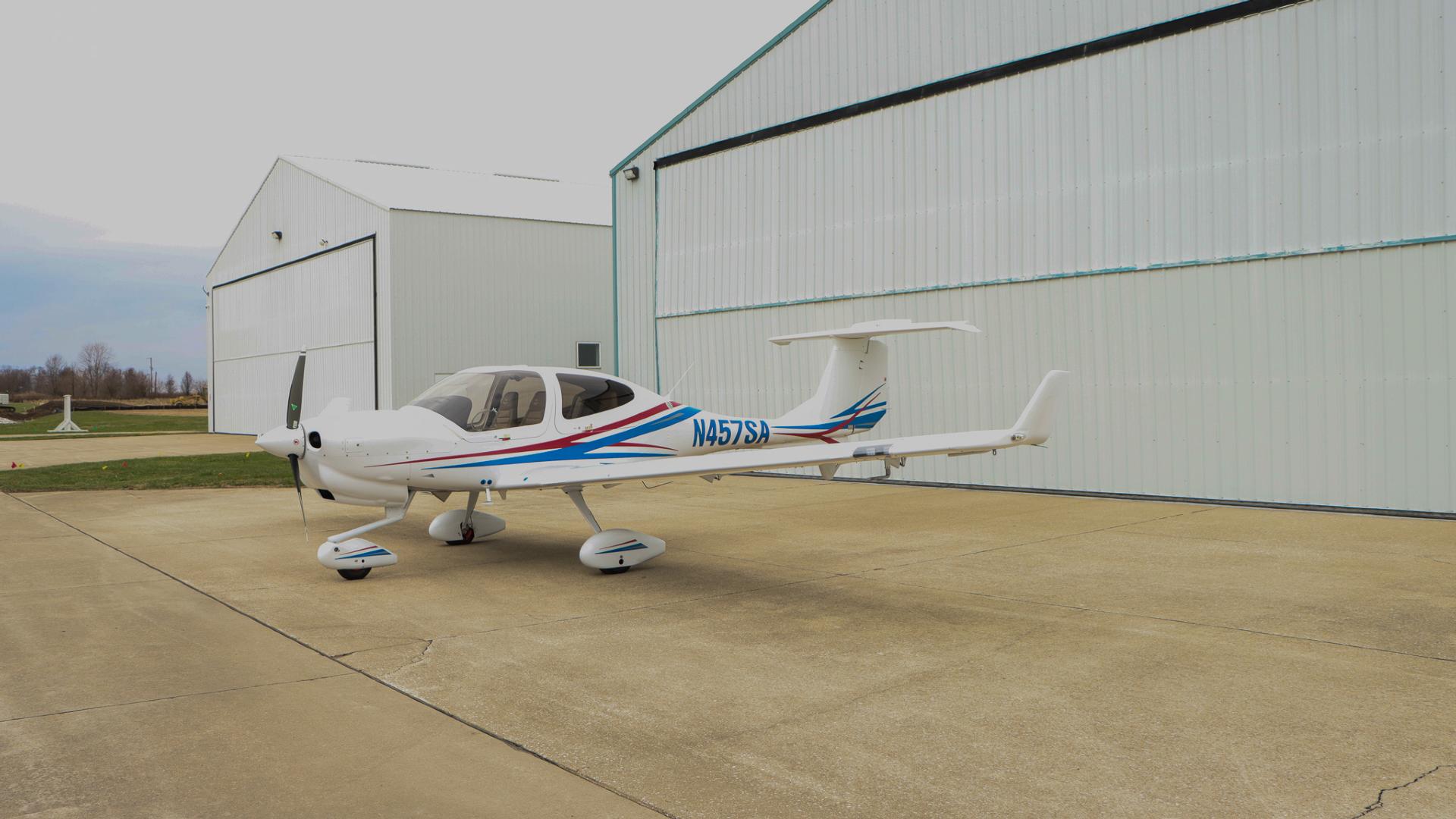 Finished in a crisp white base accented by bold red and blue exterior striping, this aircraft turns heads on the ramp while maintaining Diamond’s signature aerodynamic elegance.