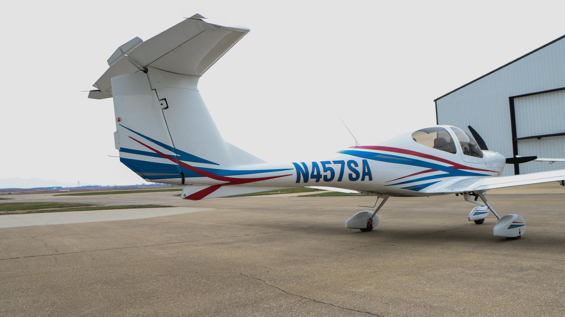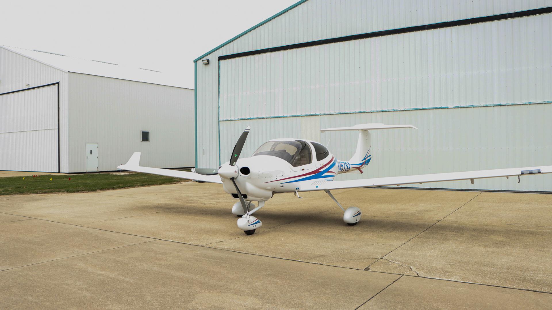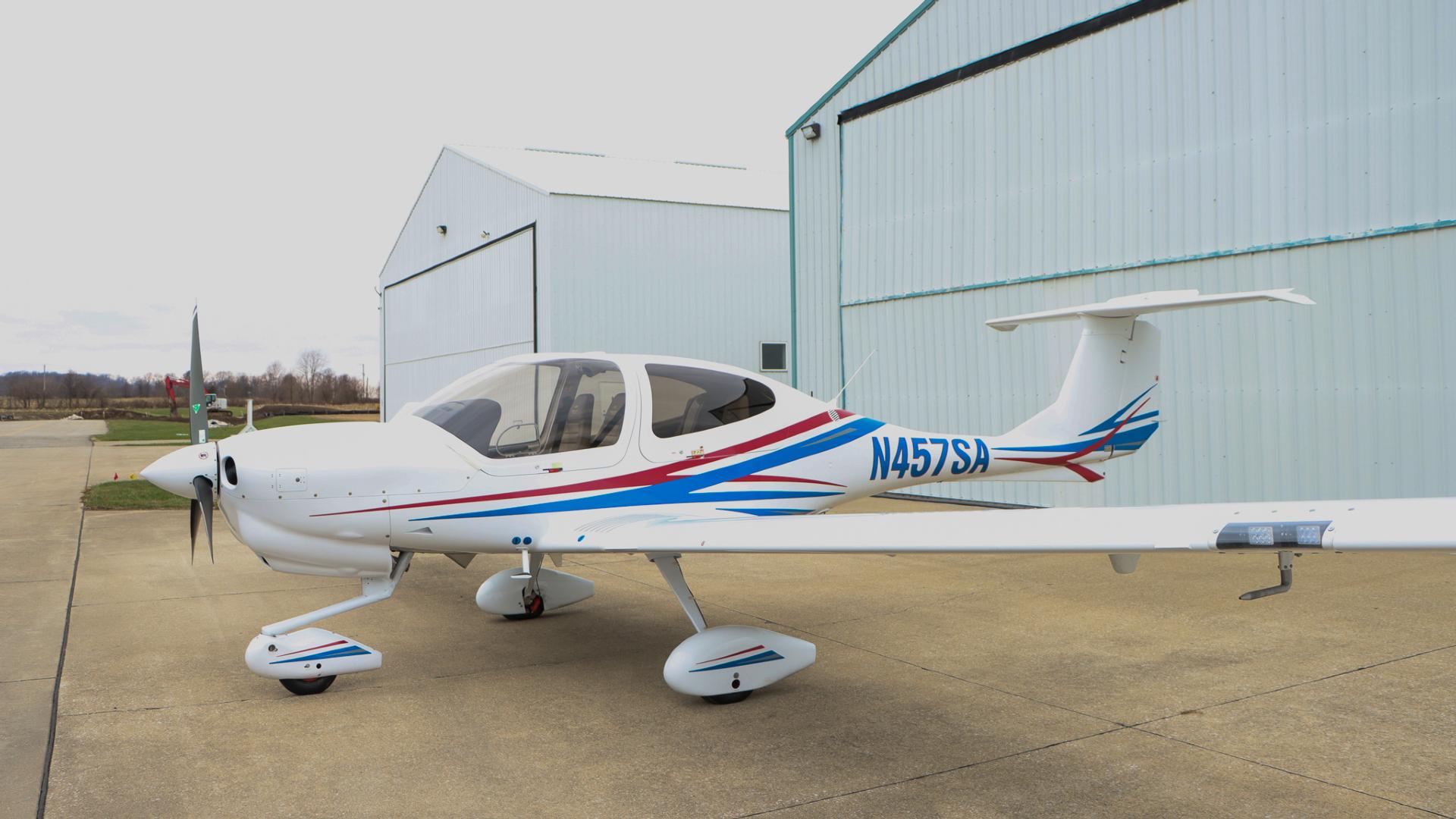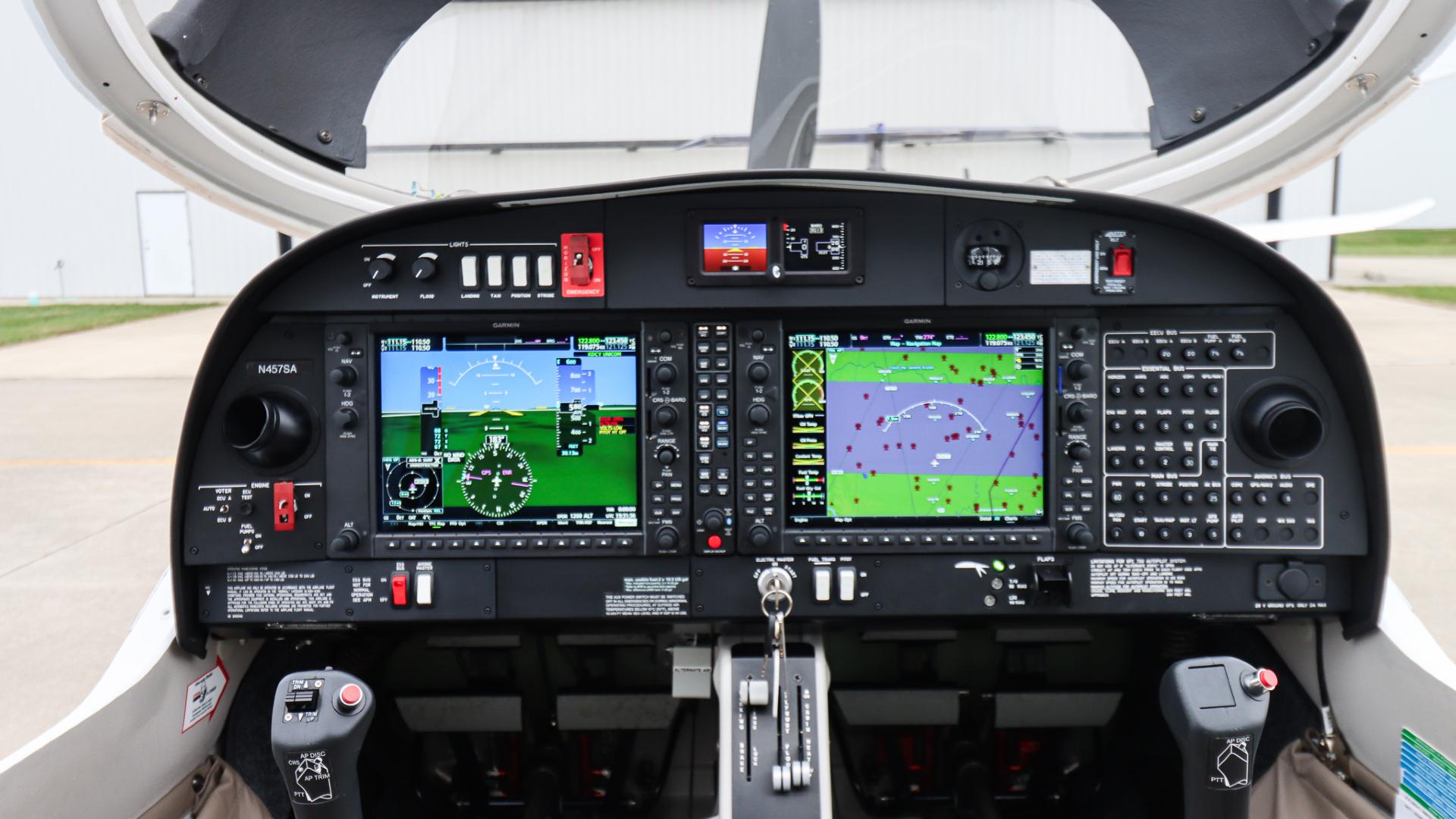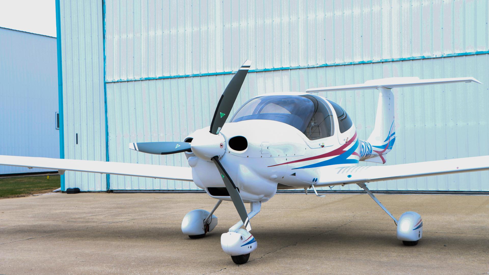 Finished in a crisp white base accented by bold red and blue exterior striping, this aircraft turns heads on the ramp while maintaining Diamond’s signature aerodynamic elegance.