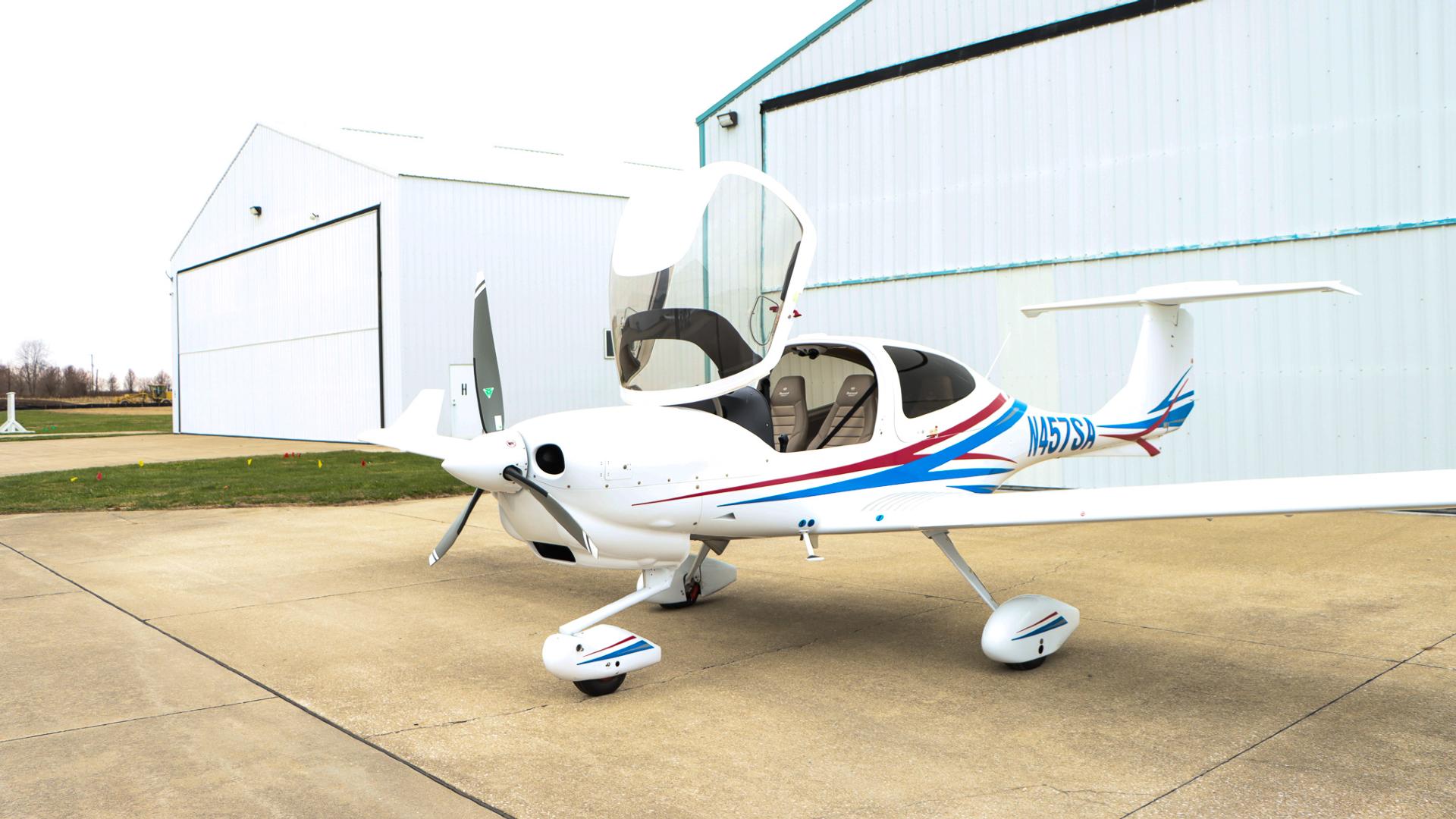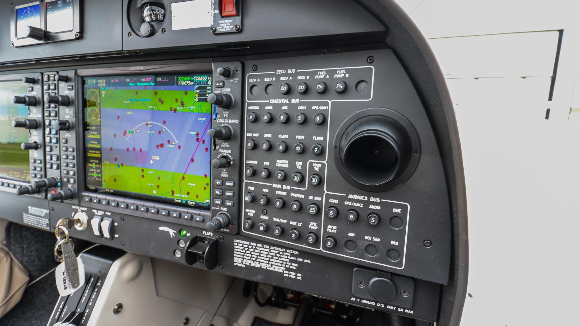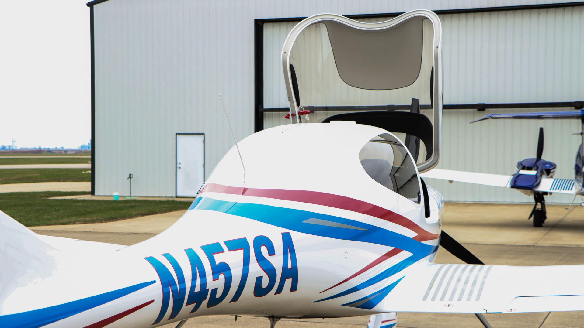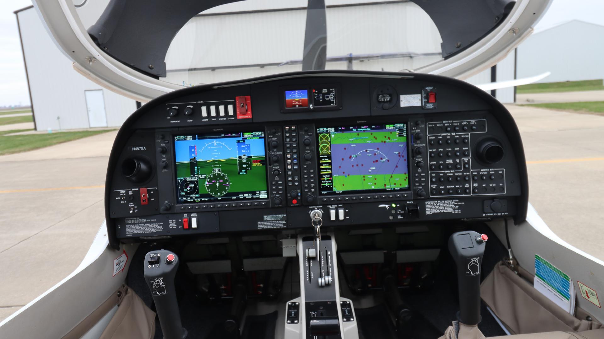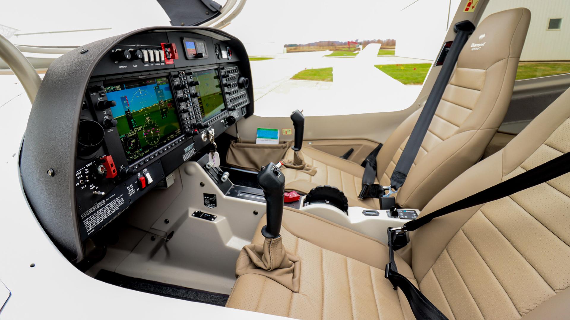 Finished in a crisp white base accented by bold red and blue exterior striping, this aircraft turns heads on the ramp while maintaining Diamond’s signature aerodynamic elegance.