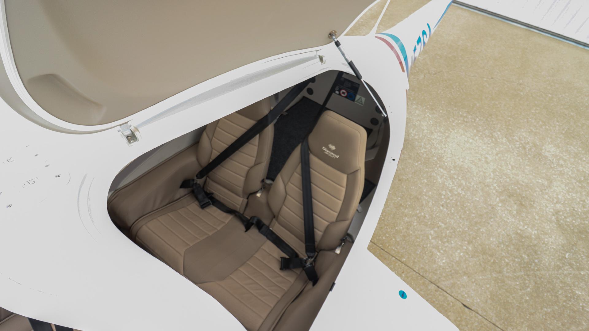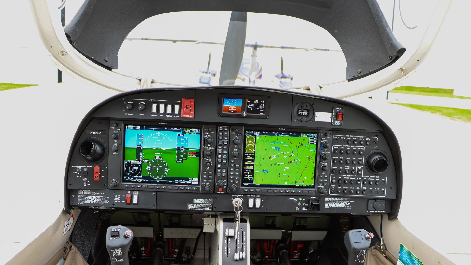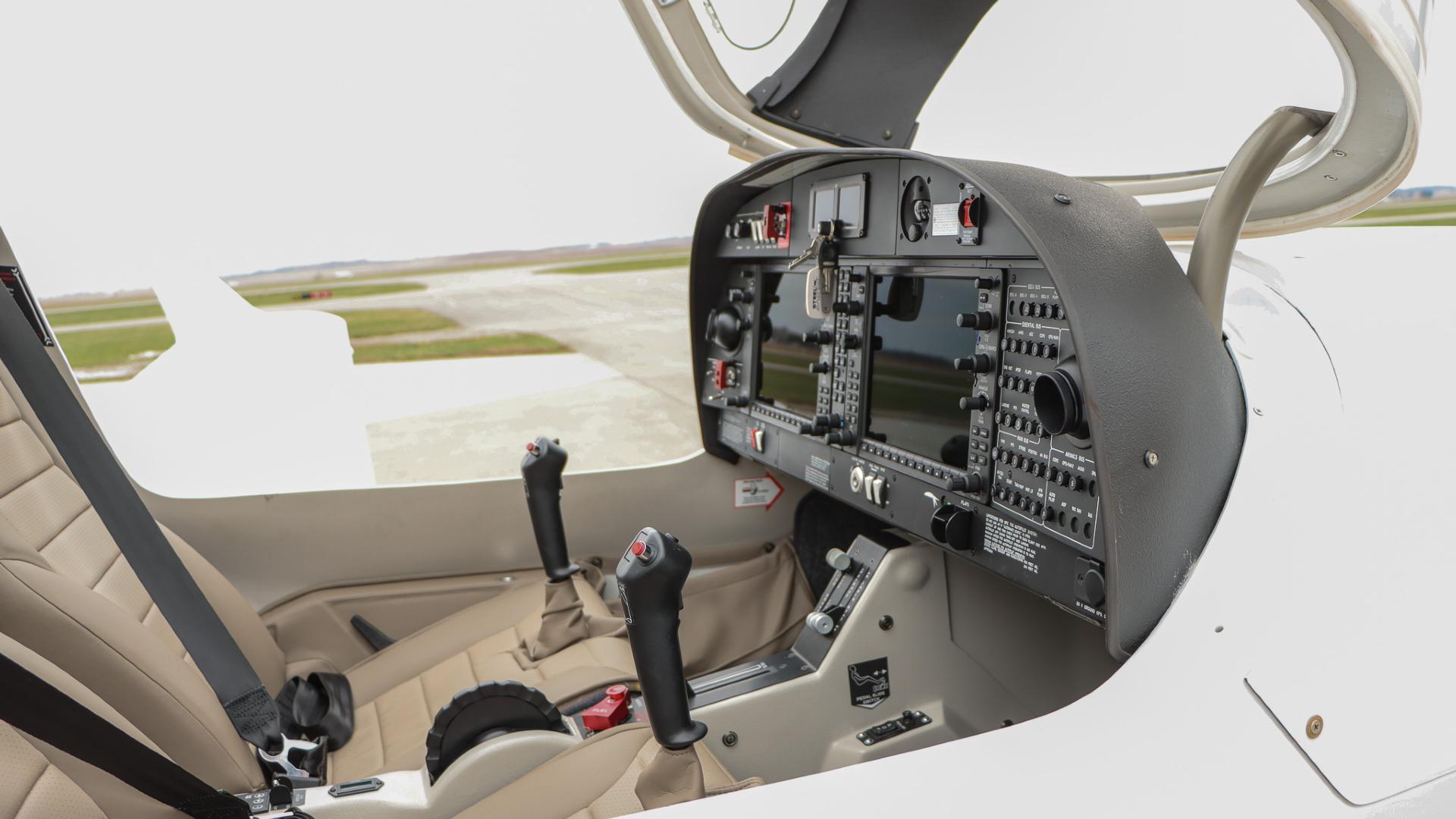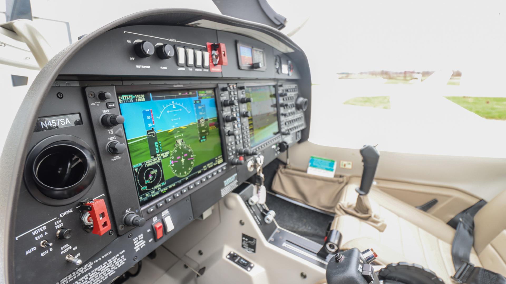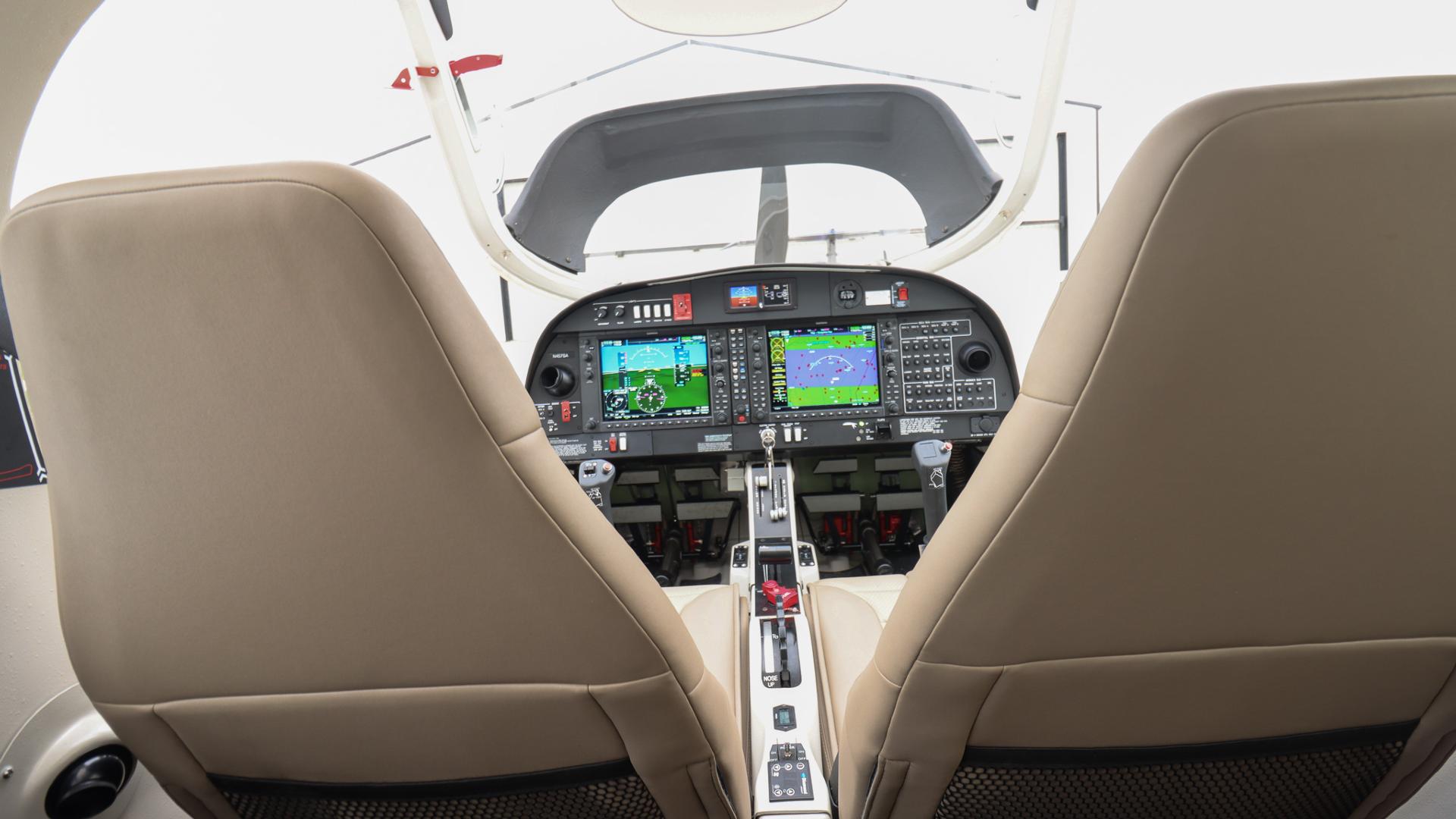 Inside, the tan interior creates a bright, inviting cabin that feels both refined and relaxed. Thoughtful details elevate the experience, including electronically adjustable rudder pedals that allow pilots of all sizes to quickly dial in a perfect seating and control position at the touch of a button. Factory-installed air conditioning keeps the cabin comfortable year-round, making every flight more enjoyable, whether local or cross-country.