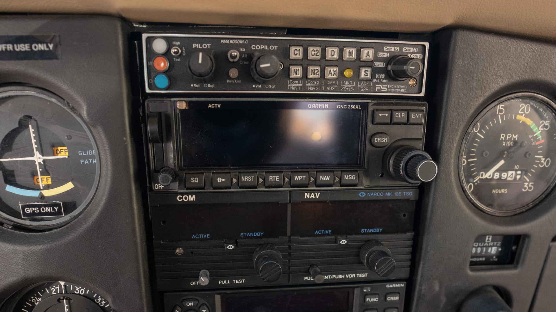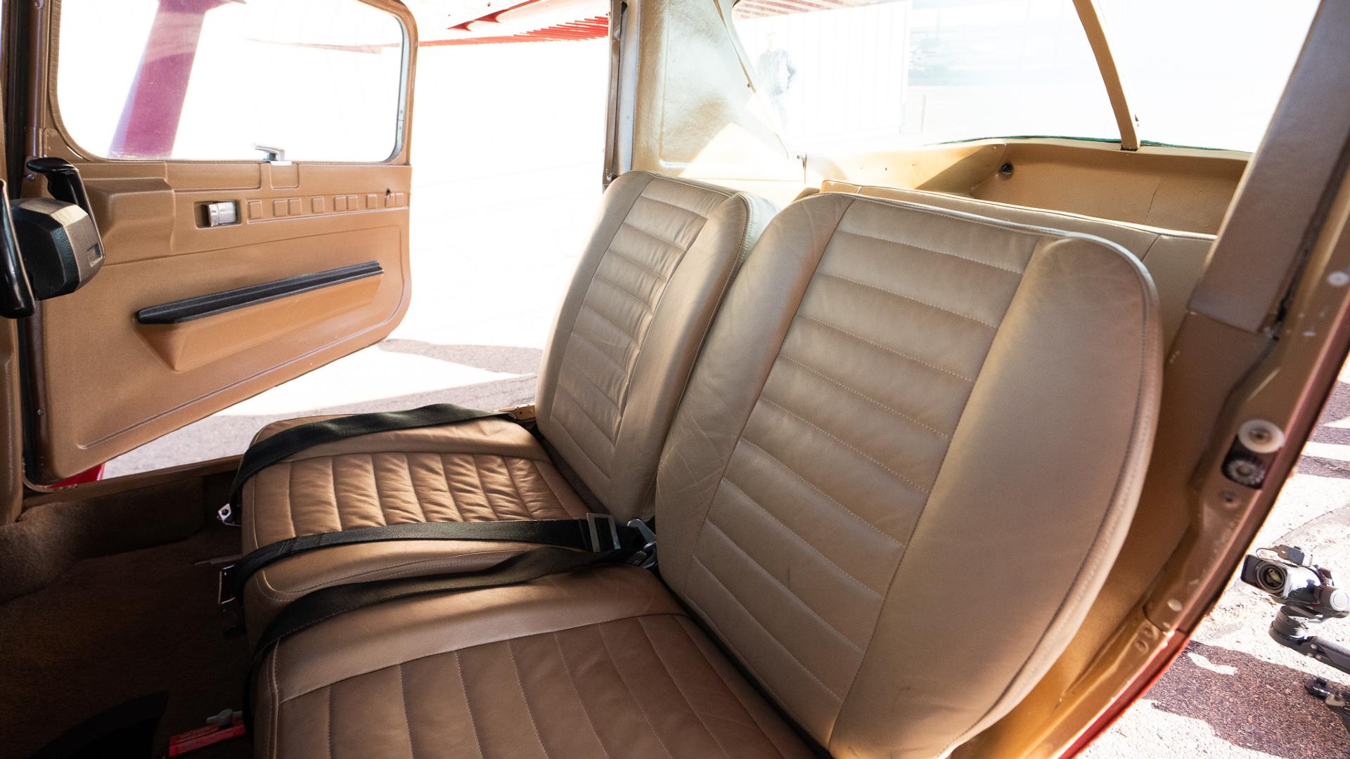 Nice clean cockpit panel with well maintained tan leather interior including a rear bench seat rarely found in a 152
