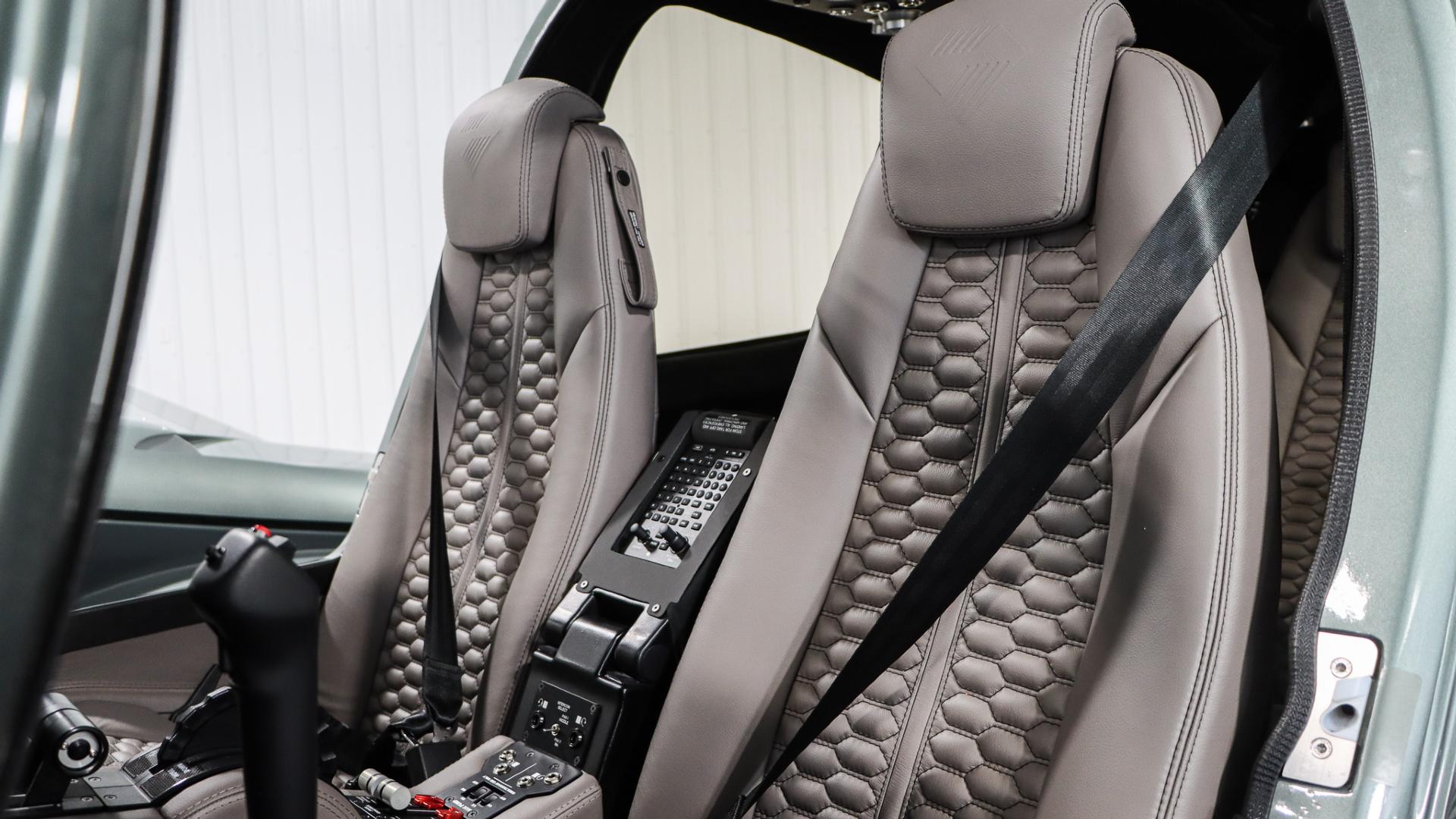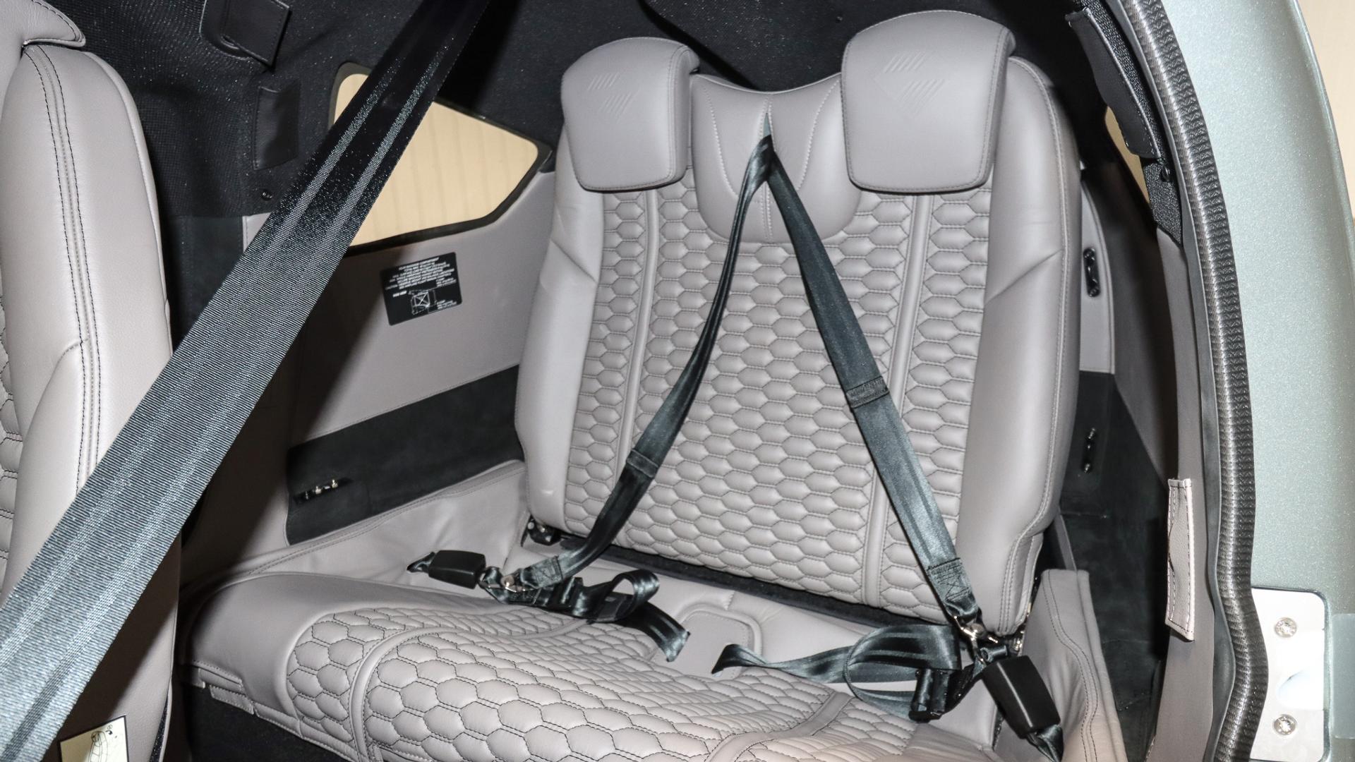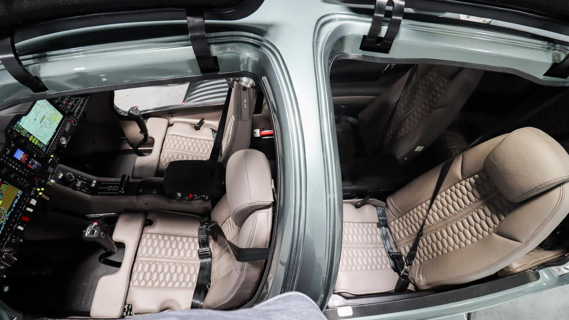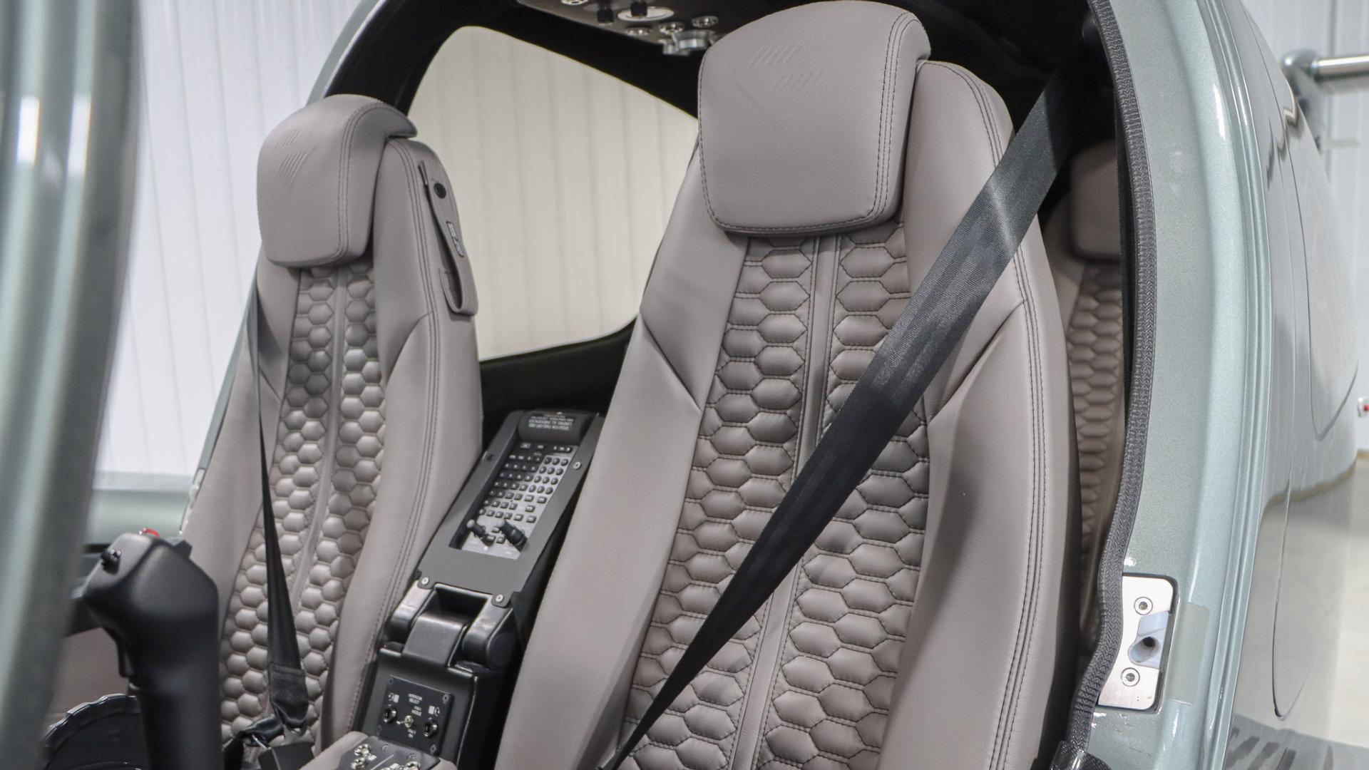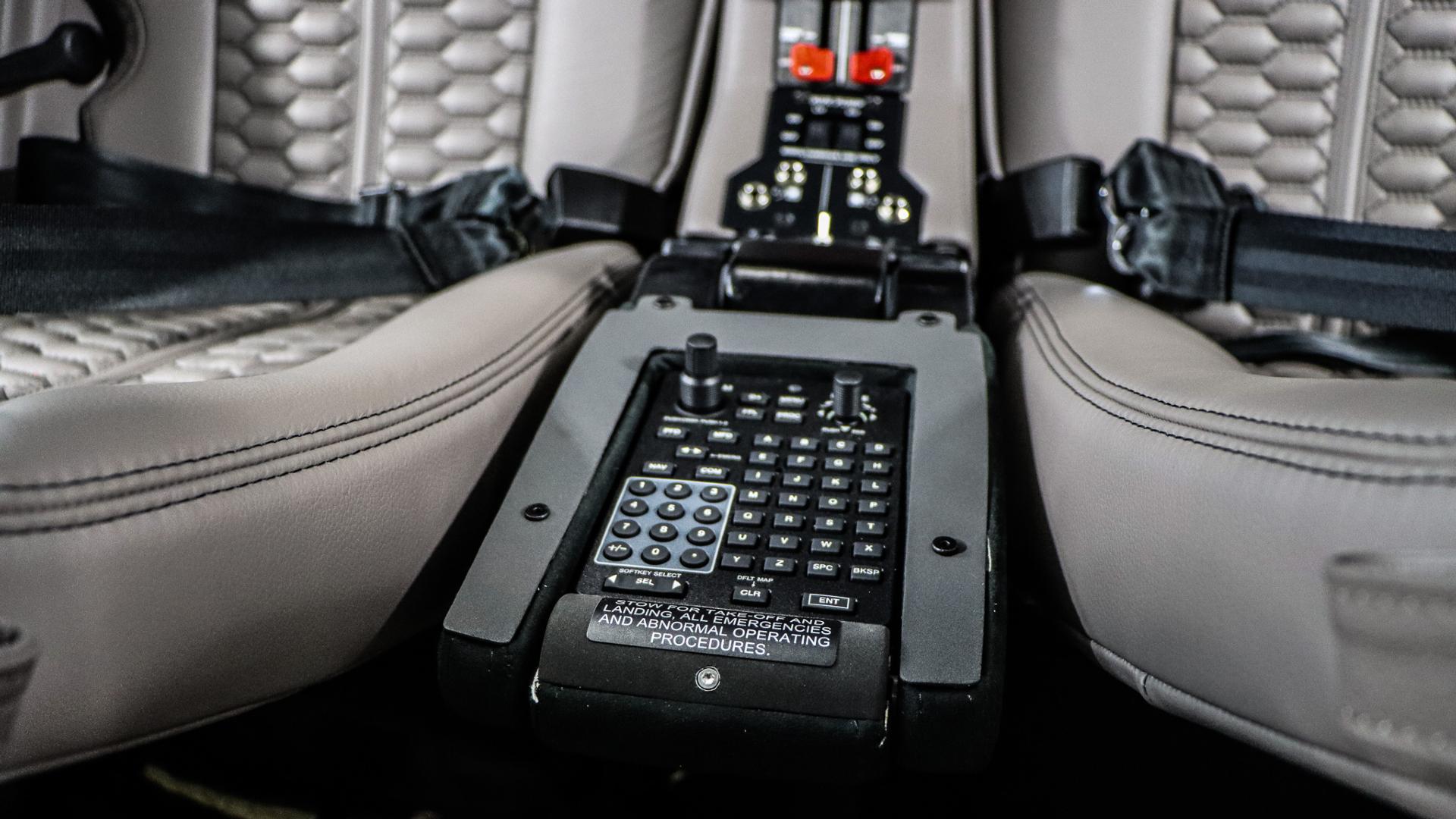 Finished in light gray leather with a distinctive hexagonal pattern, the cabin strikes the perfect balance between modern luxury and European design. The upgraded seating is exceptionally comfortable, with the second row fully reclining and thoughtfully appointed with a center console and cupholders—details that make every flight more enjoyable for passengers and crew alike.