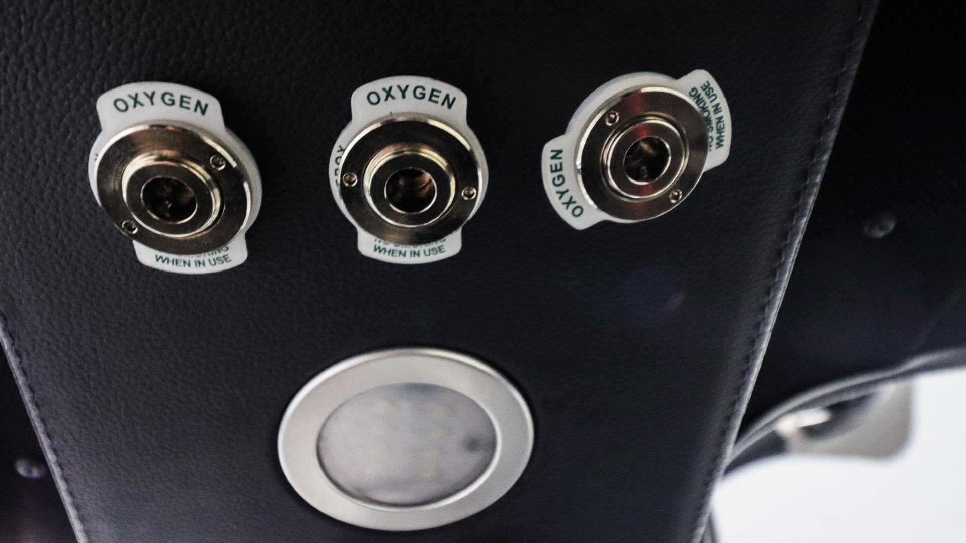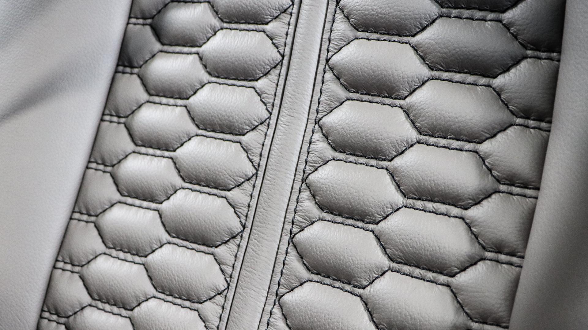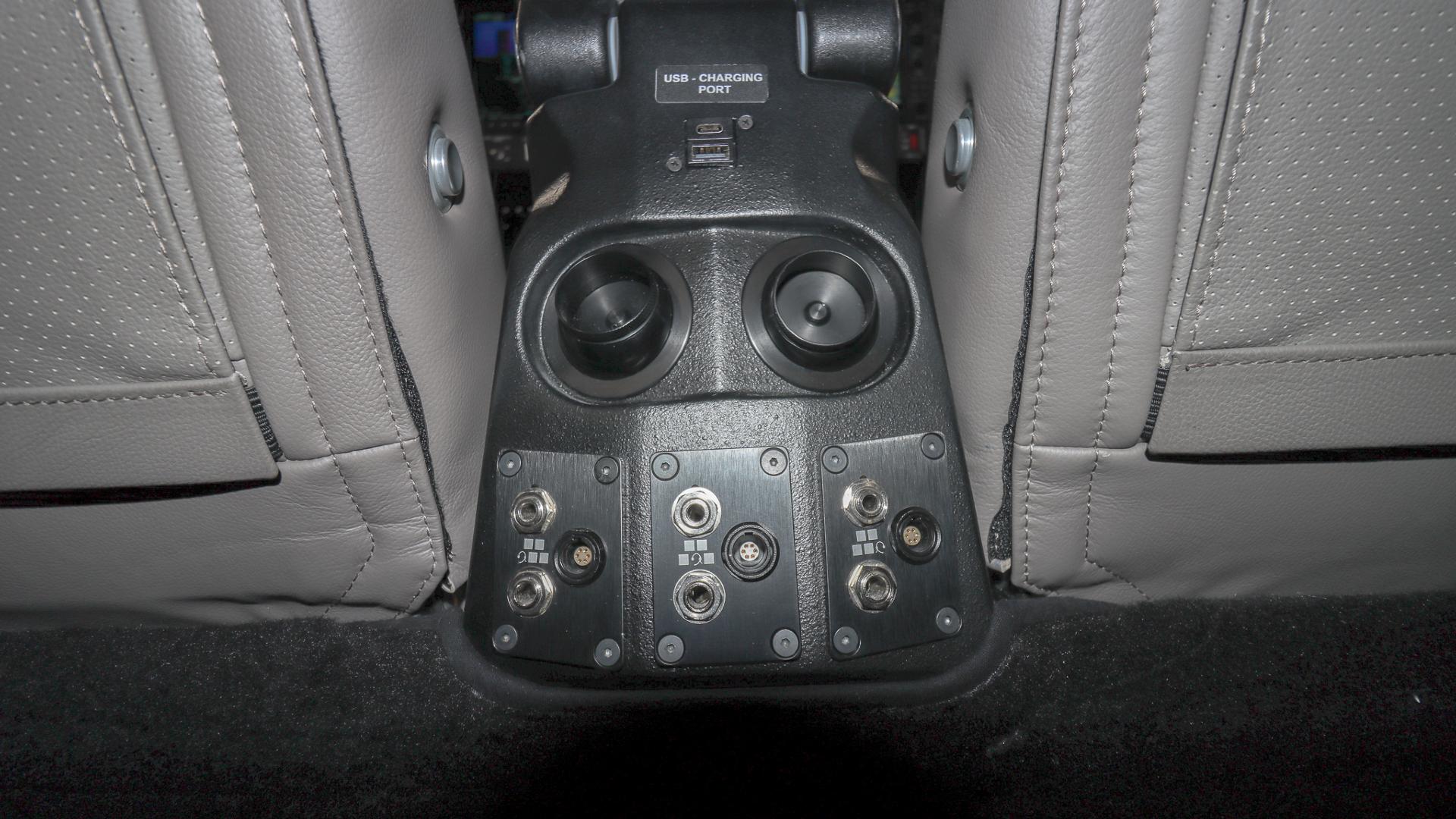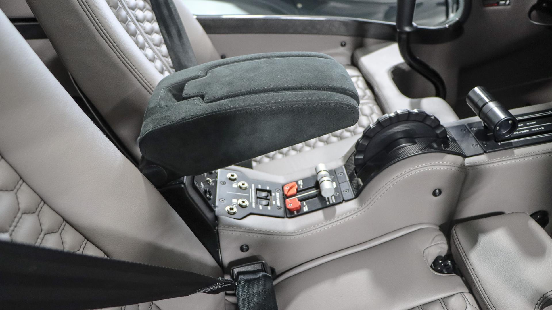 Finished in light gray leather with a distinctive hexagonal pattern, the cabin strikes the perfect balance between modern luxury and European design. The upgraded seating is exceptionally comfortable, with the second row fully reclining and thoughtfully appointed with a center console and cupholders—details that make every flight more enjoyable for passengers and crew alike.