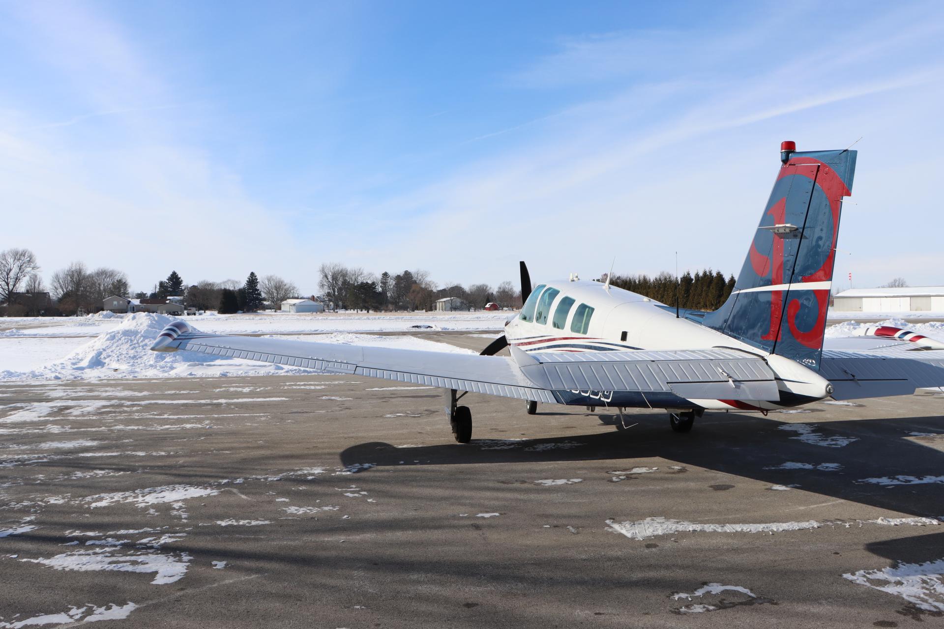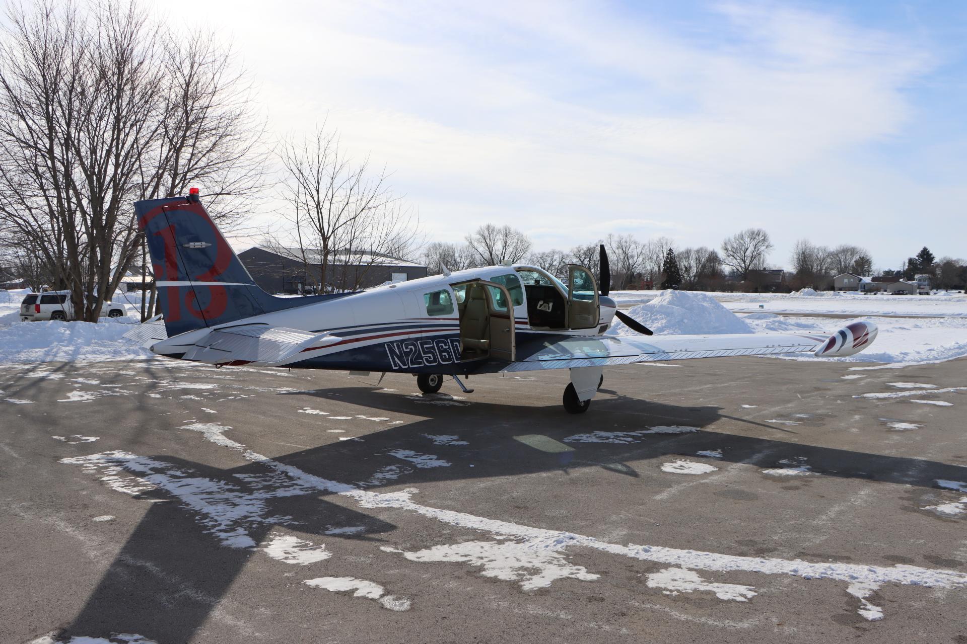 This aircraft immediately impresses with a stunning, modern red white and blue paint scheme that highlights the Bonanza’s timeless lines and unmistakable ramp presence. The finish is crisp and well cared for, reflecting the pride of ownership throughout.