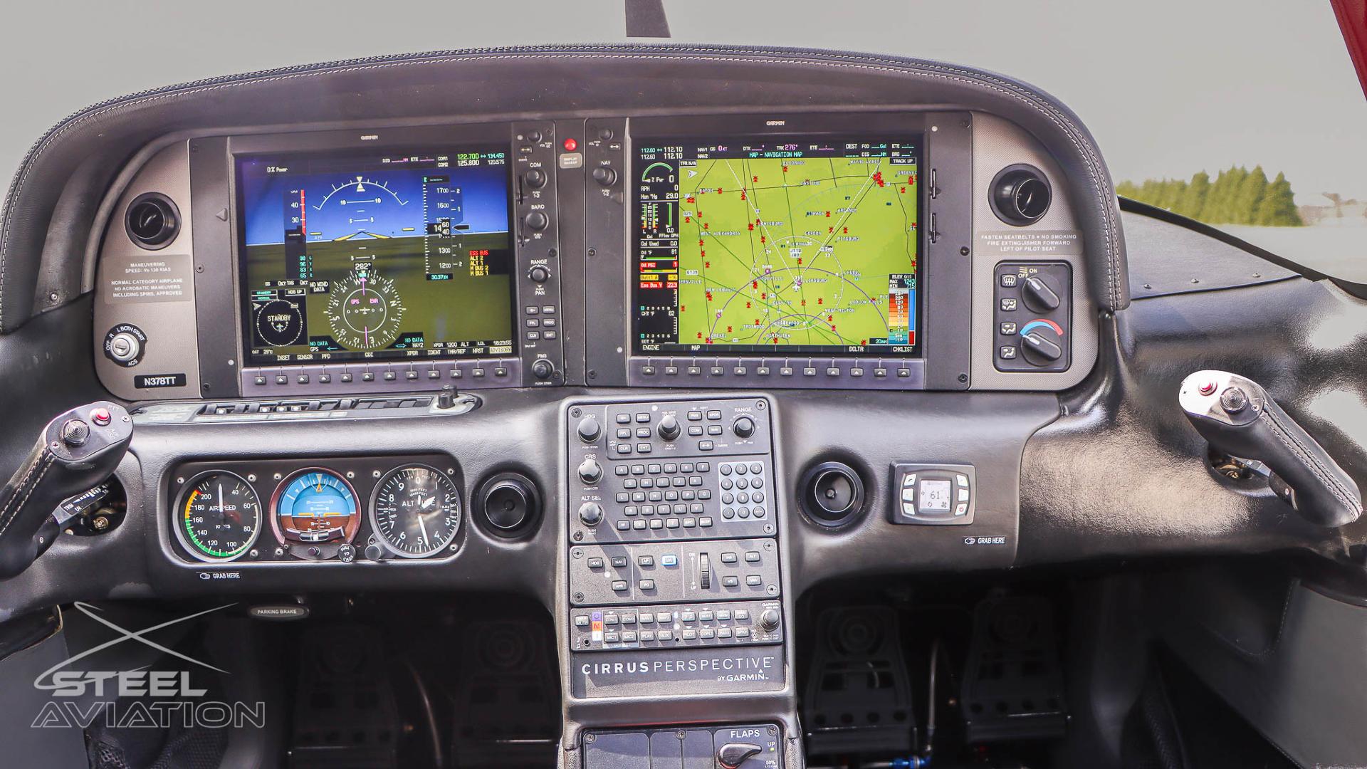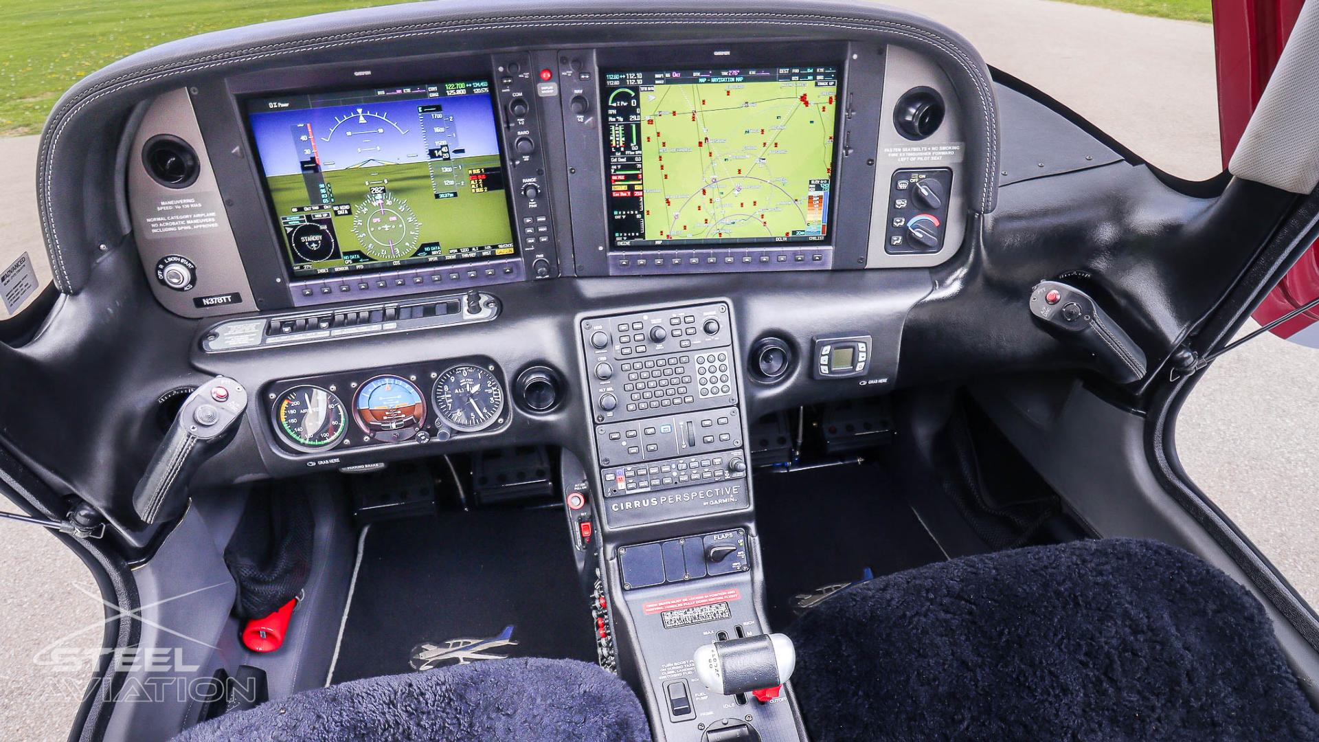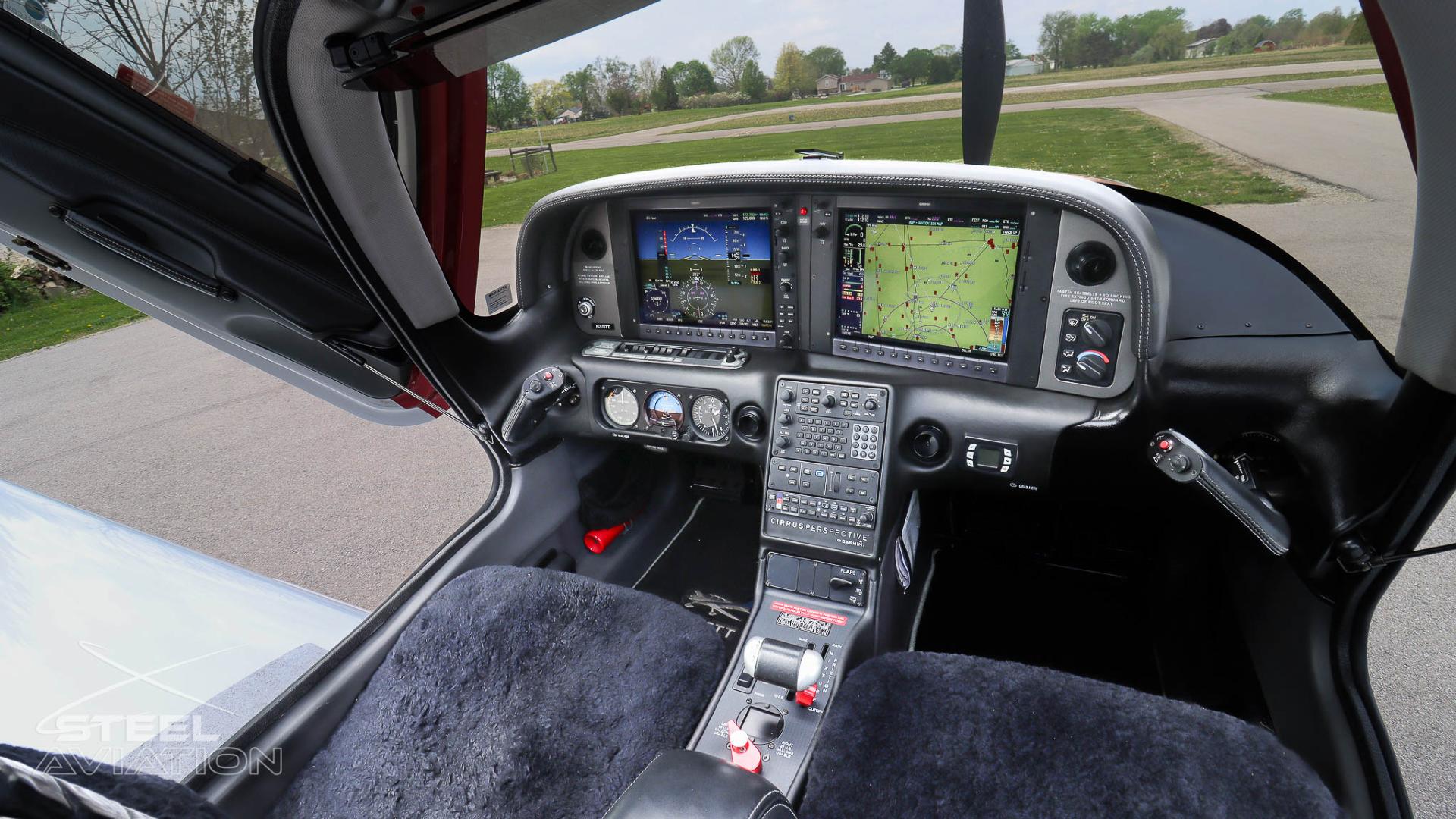Inside, it’s a different world. Custom interior with black leather and red stitching turn the cockpit into something far more personal than just a place to fly—it feels tailored, deliberate, like every flight is meant to matter. And front and center, the Garmin Perspective suite brings everything to life: crisp displays, razor-sharp situational awareness, and a cockpit that feels more like a command center than a panel.
