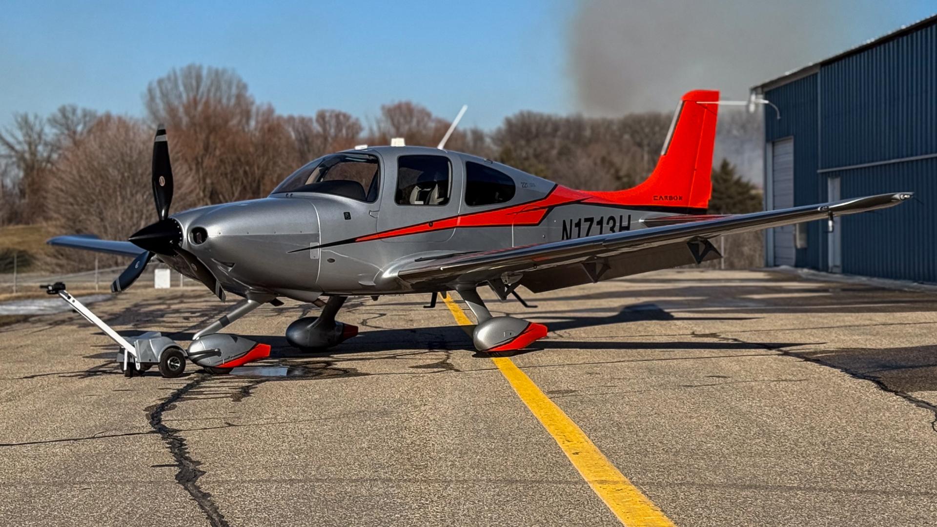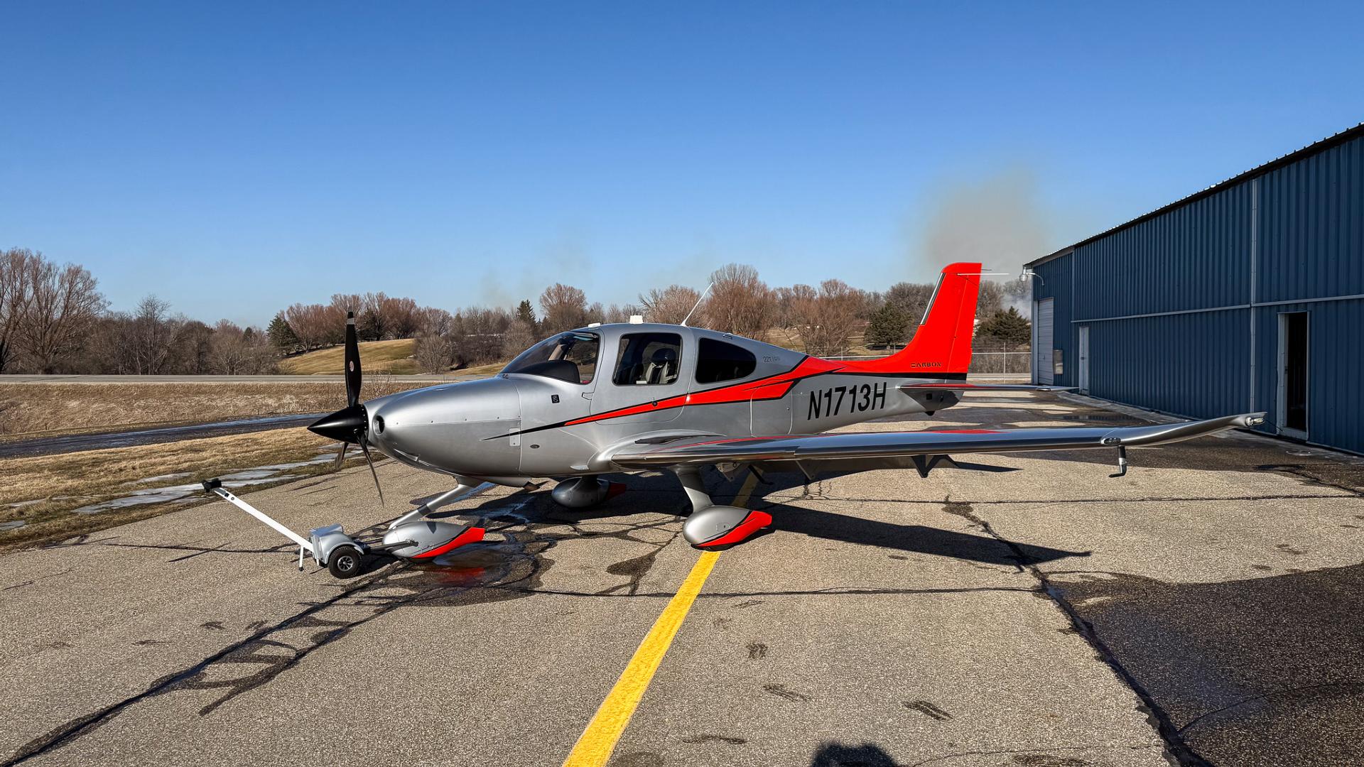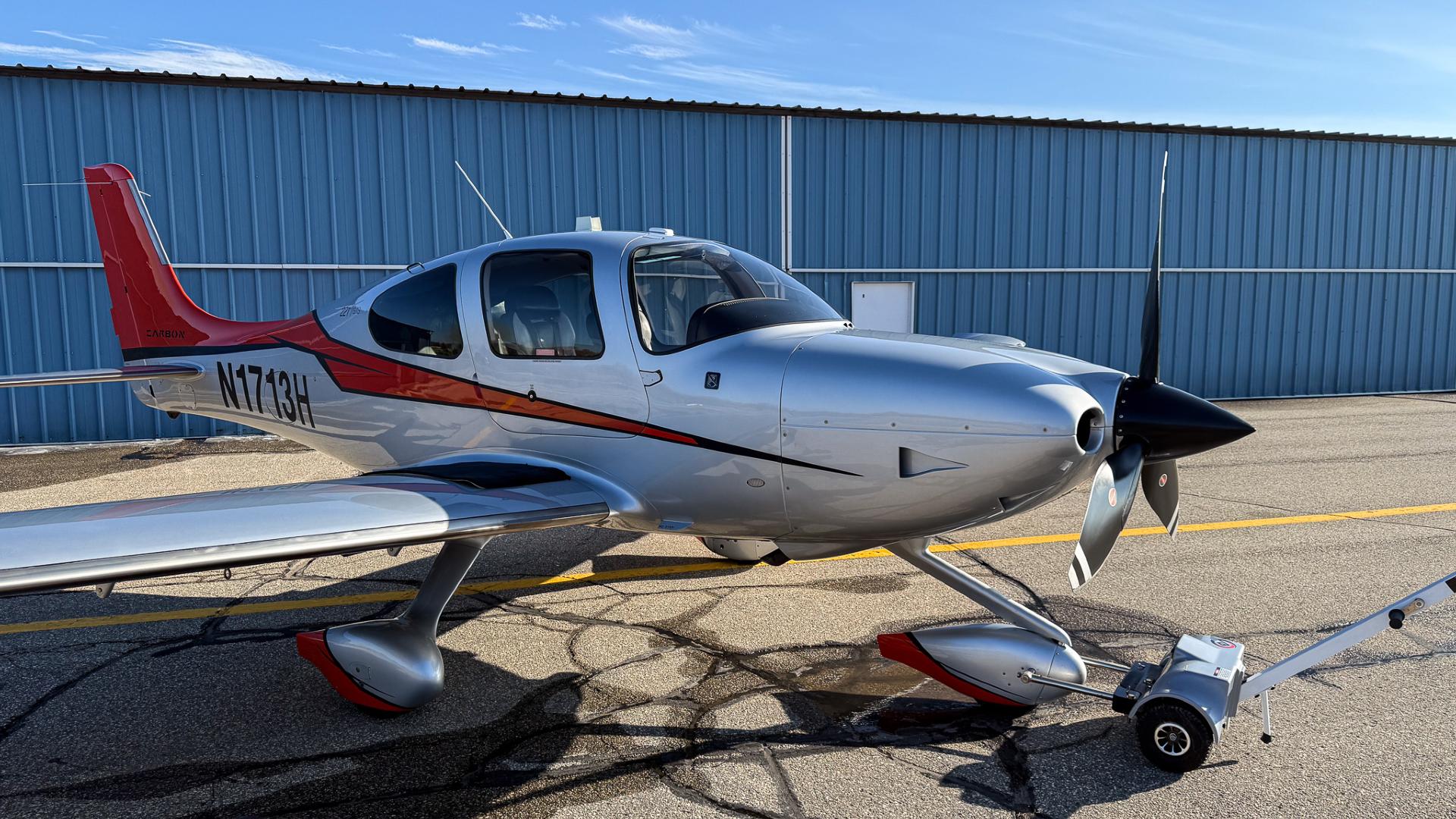 Some airplanes are practical. Some are fast. And then there’s N1713H, a Carbon Edition SR22T that somehow manages to be both while also making you grin every time you walk up to it. Finished in a sleek silver scheme with confident red and black accents, this aircraft looks like it’s already halfway to cruise altitude while sitting on the ramp. Hangared and well cared for, the exterior shines with the kind of gloss that quietly says, “Yes, this one has been loved.”