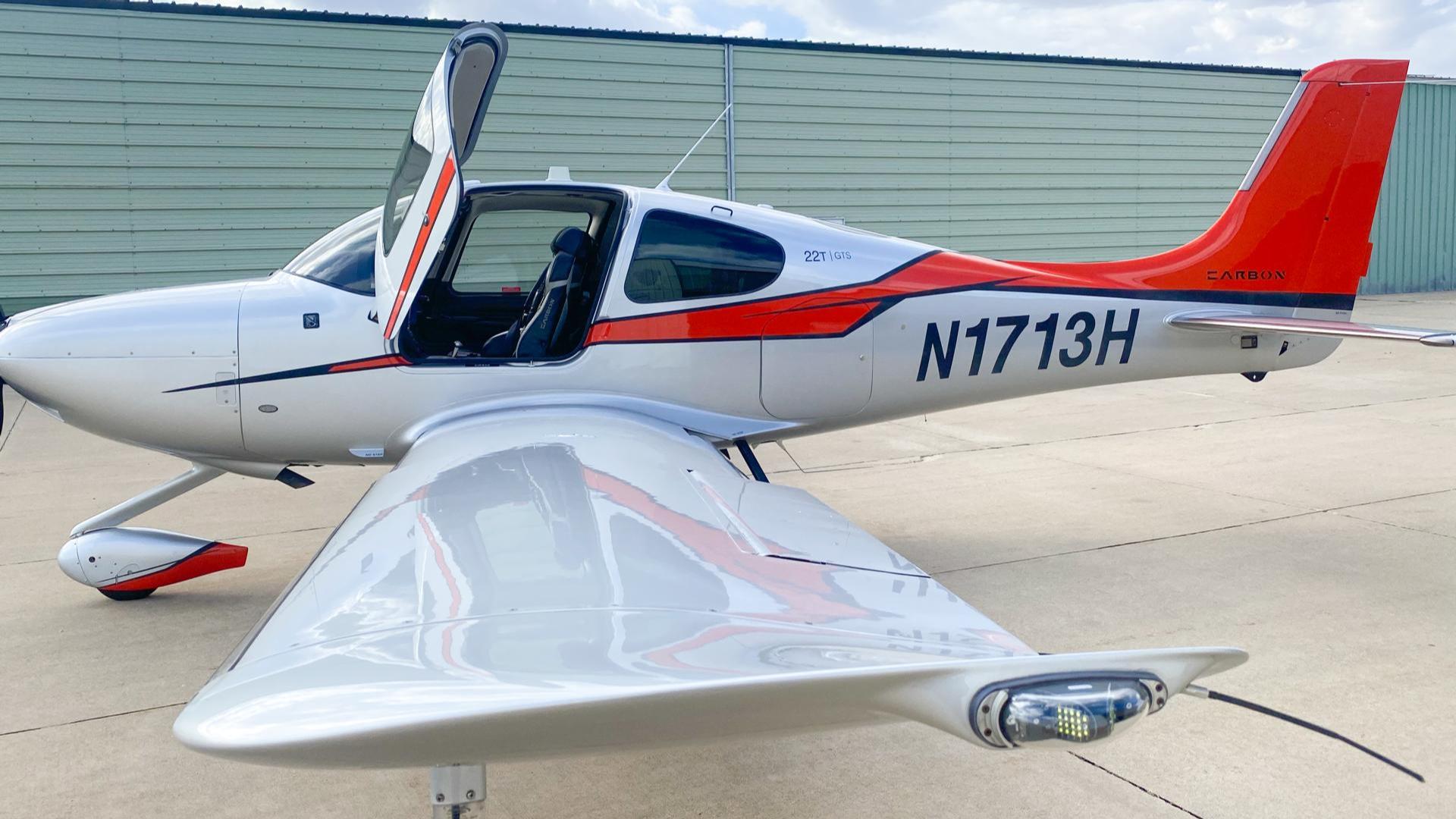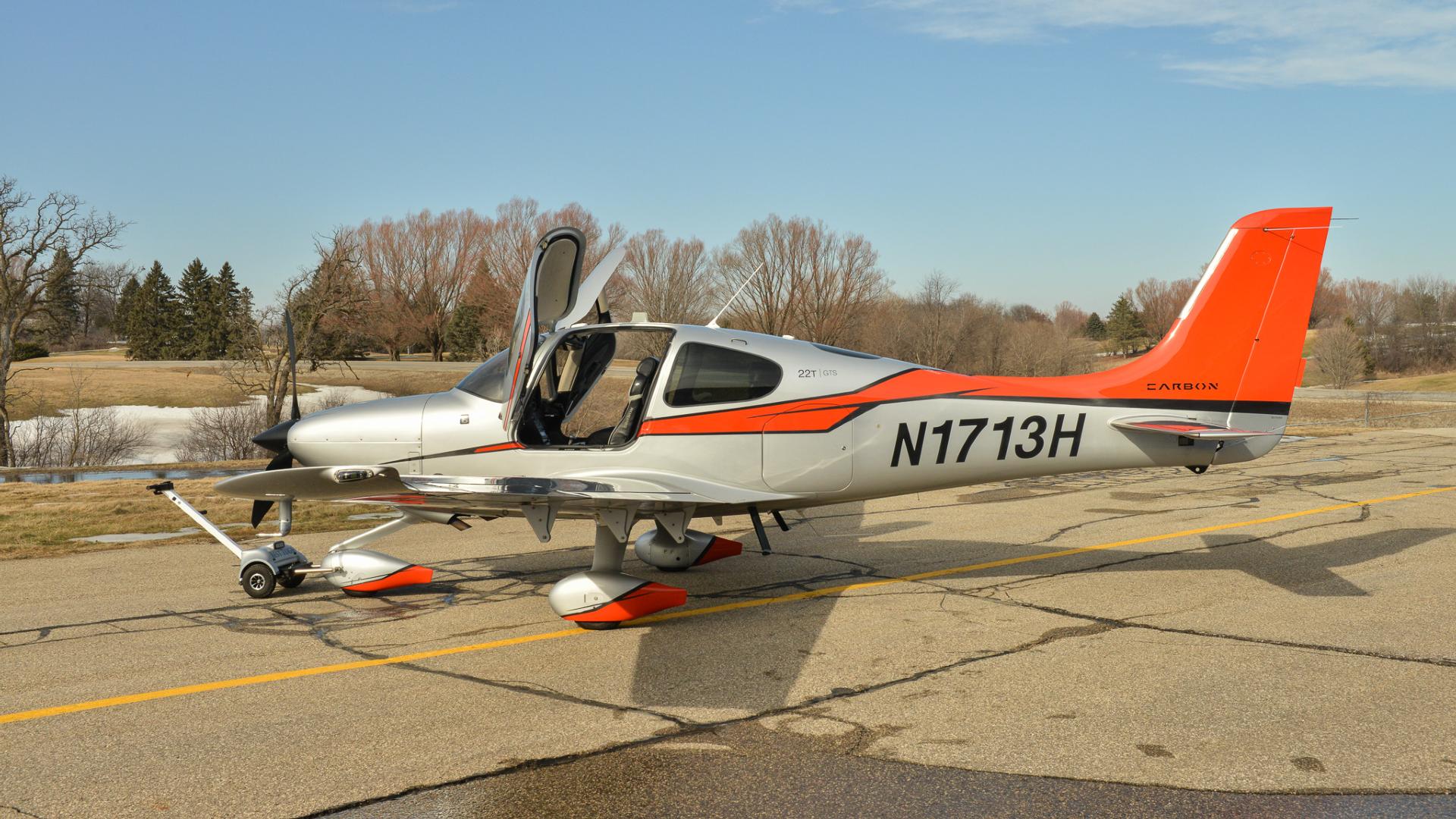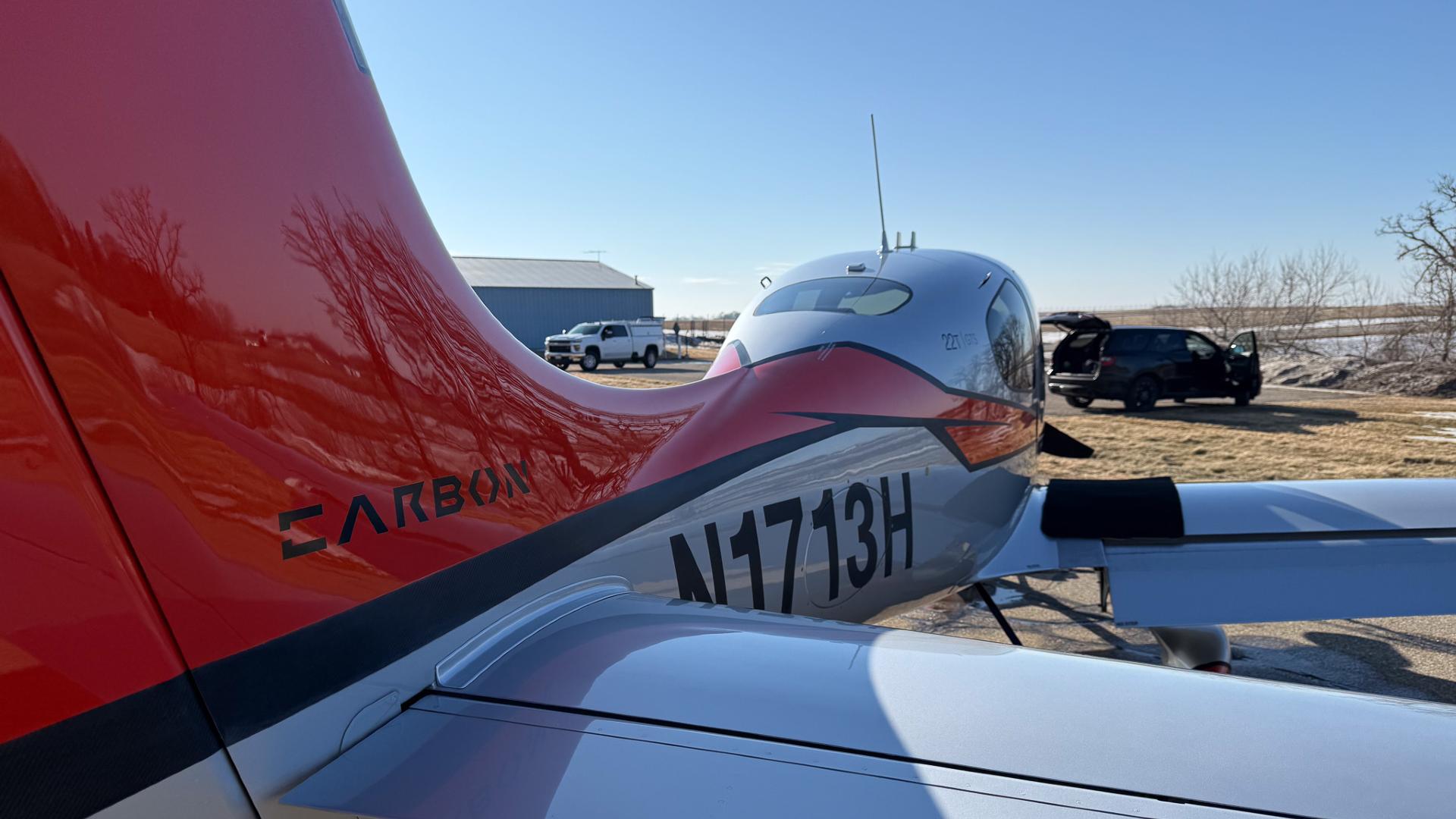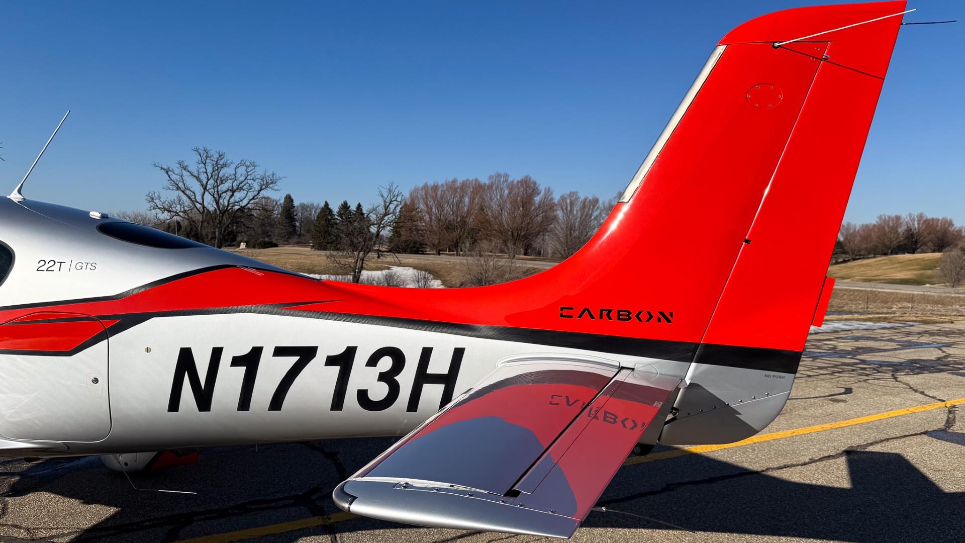 Some airplanes are practical. Some are fast. And then there’s N1713H, a Carbon Edition SR22T that somehow manages to be both while also making you grin every time you walk up to it. Finished in a sleek silver scheme with confident red and black accents, this aircraft looks like it’s already halfway to cruise altitude while sitting on the ramp. Hangared and well cared for, the exterior shines with the kind of gloss that quietly says, “Yes, this one has been loved.”