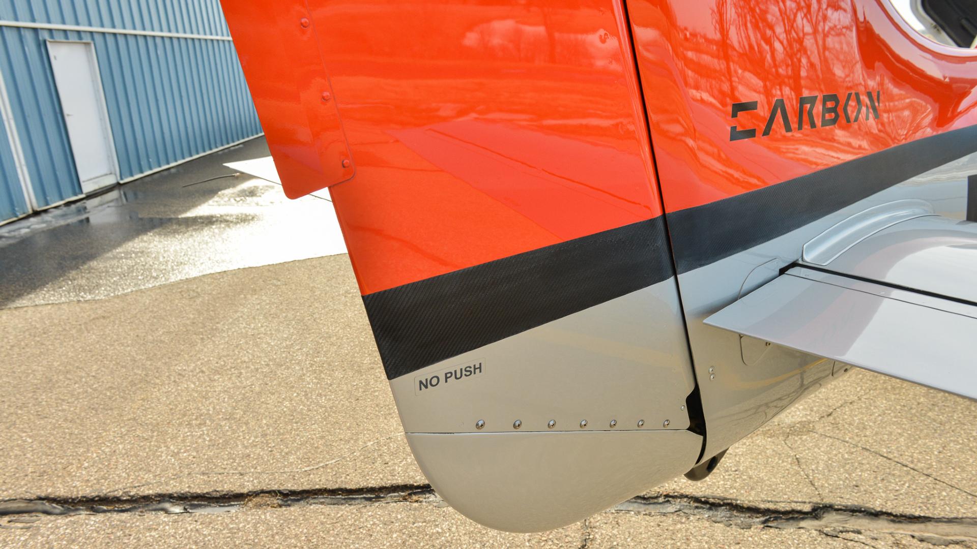 The exterior showcases the striking Carbon Edition paint scheme, highlighted by a dynamic blend of Silver, Corso Red, and Black accents that give the aircraft an unmistakably athletic ramp presence. Always hangared and meticulously cared for, the finish remains vibrant and well-preserved, presenting beautifully from every angle.