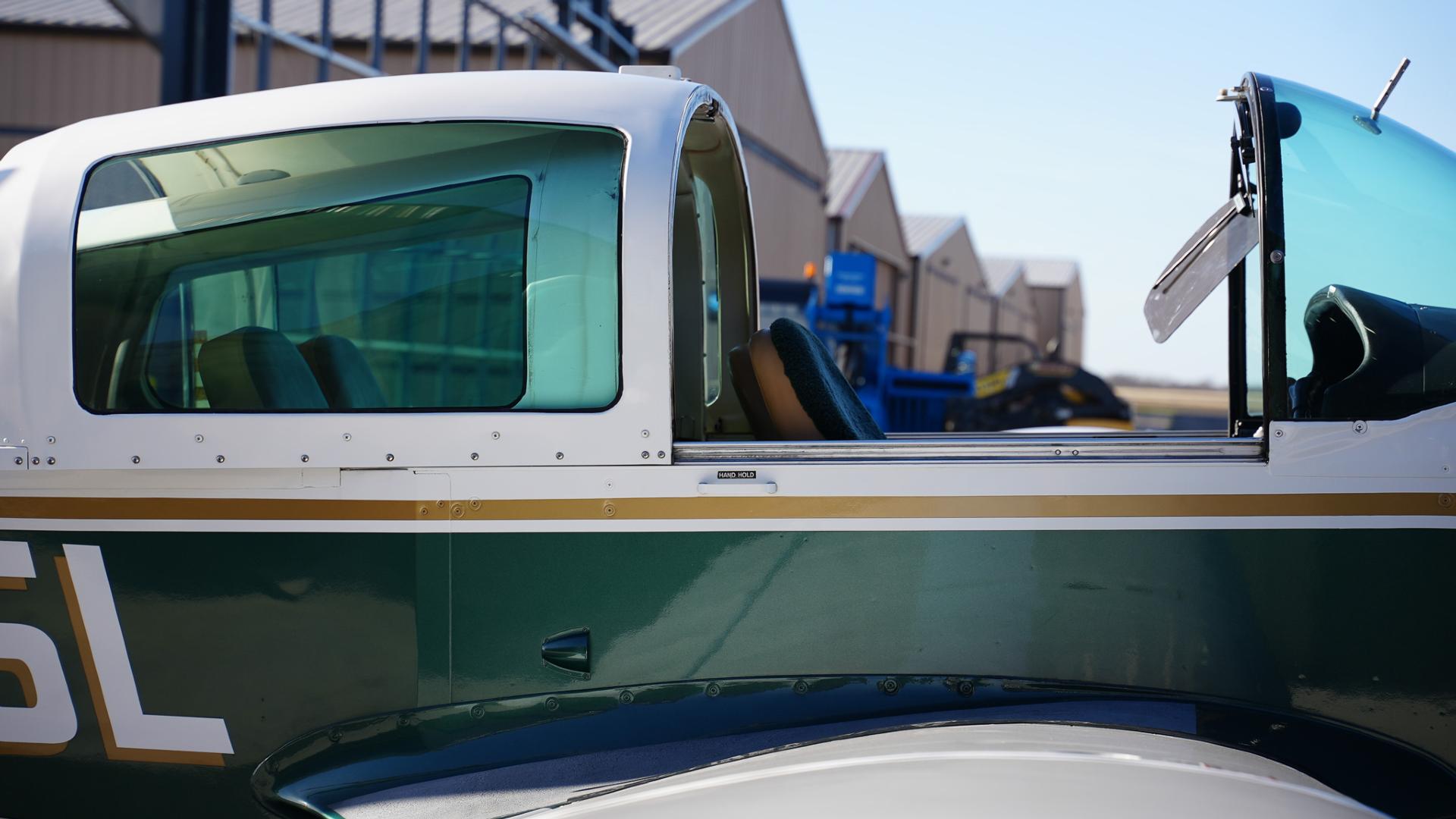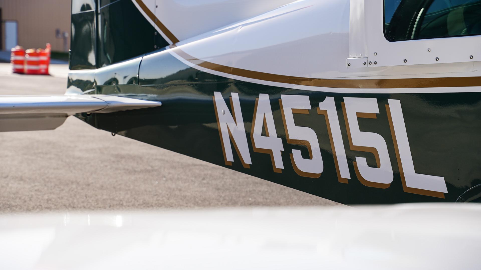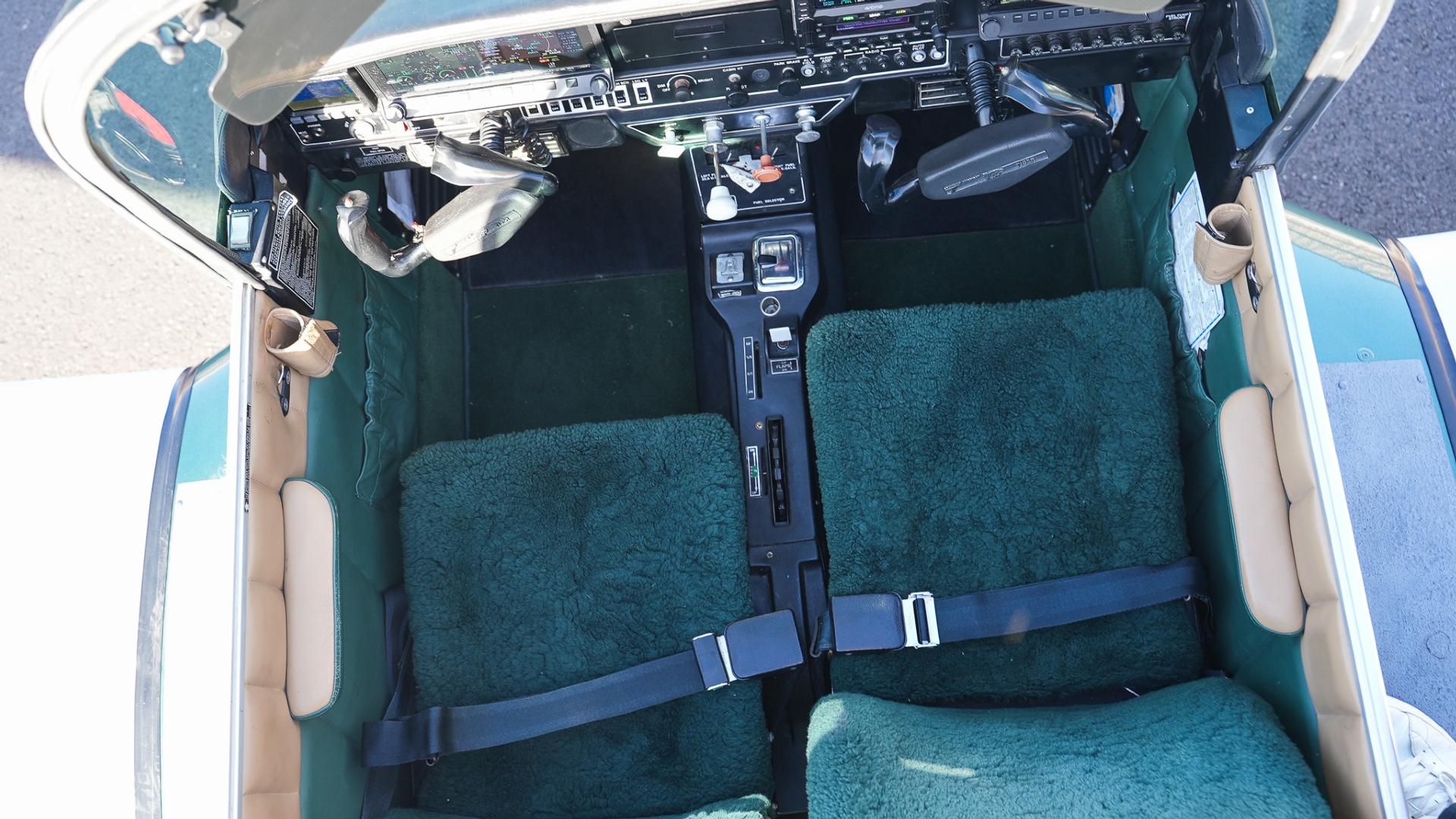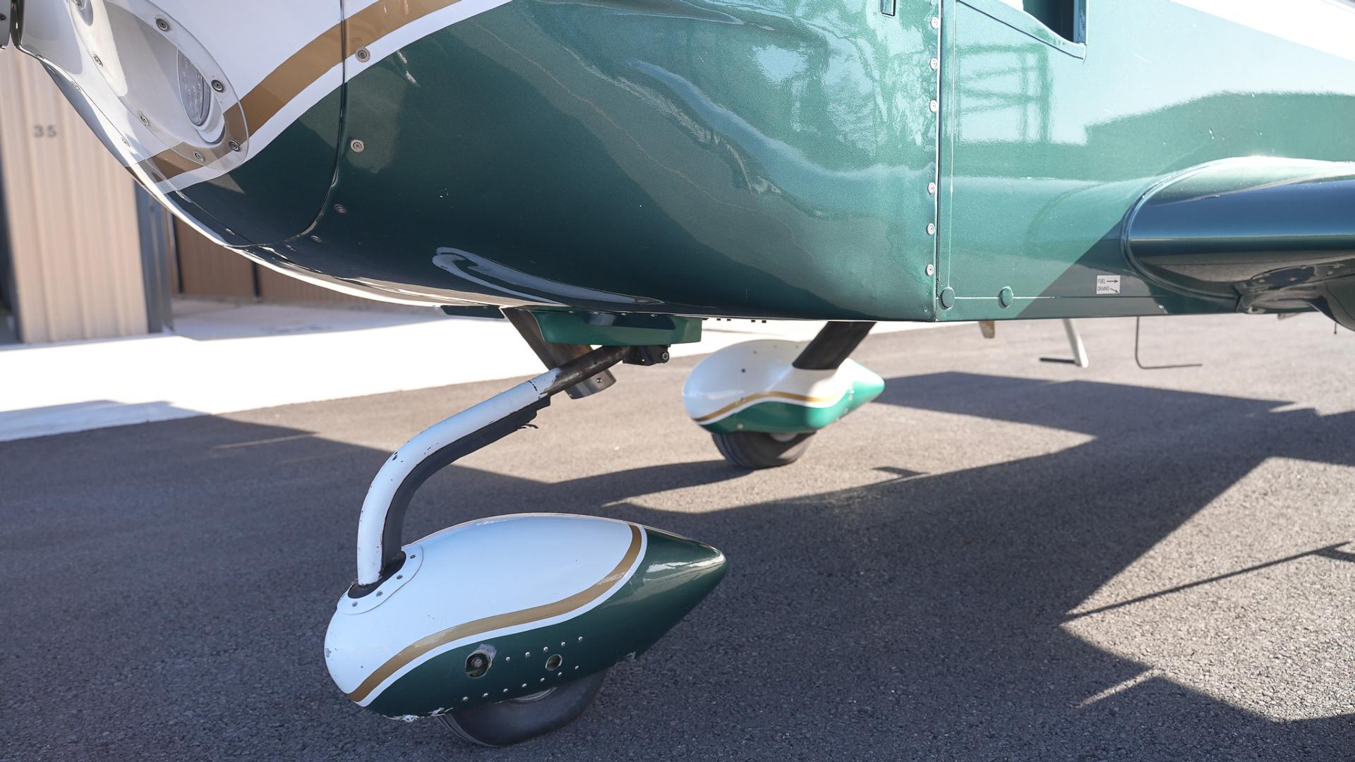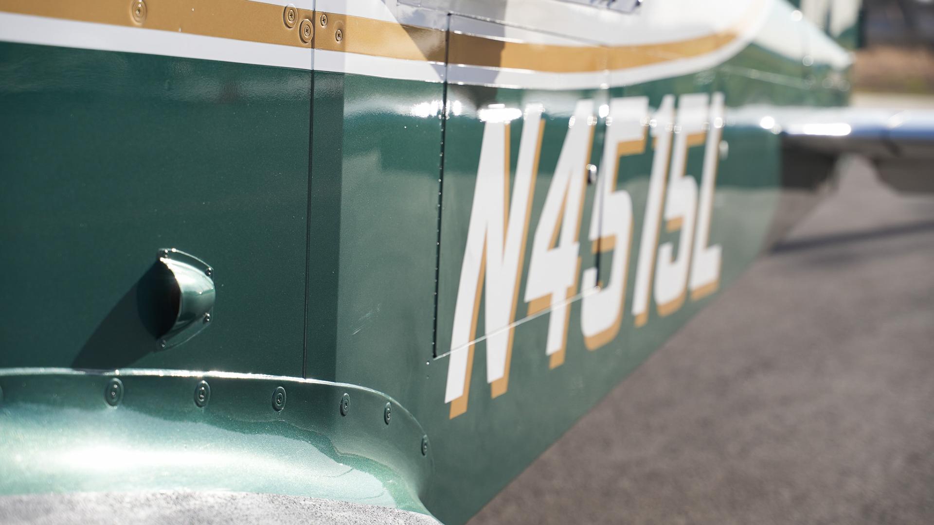 Repainted in 2002 with Sherwin Williams Aeryglo White and Sherwin Williams Genesis Green and Gold trim. Paint is in very nice, hangar-kept condition. 8.5 / 10