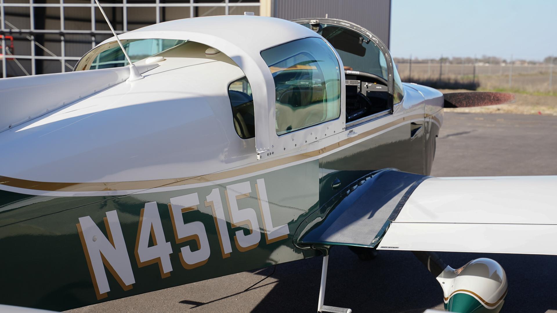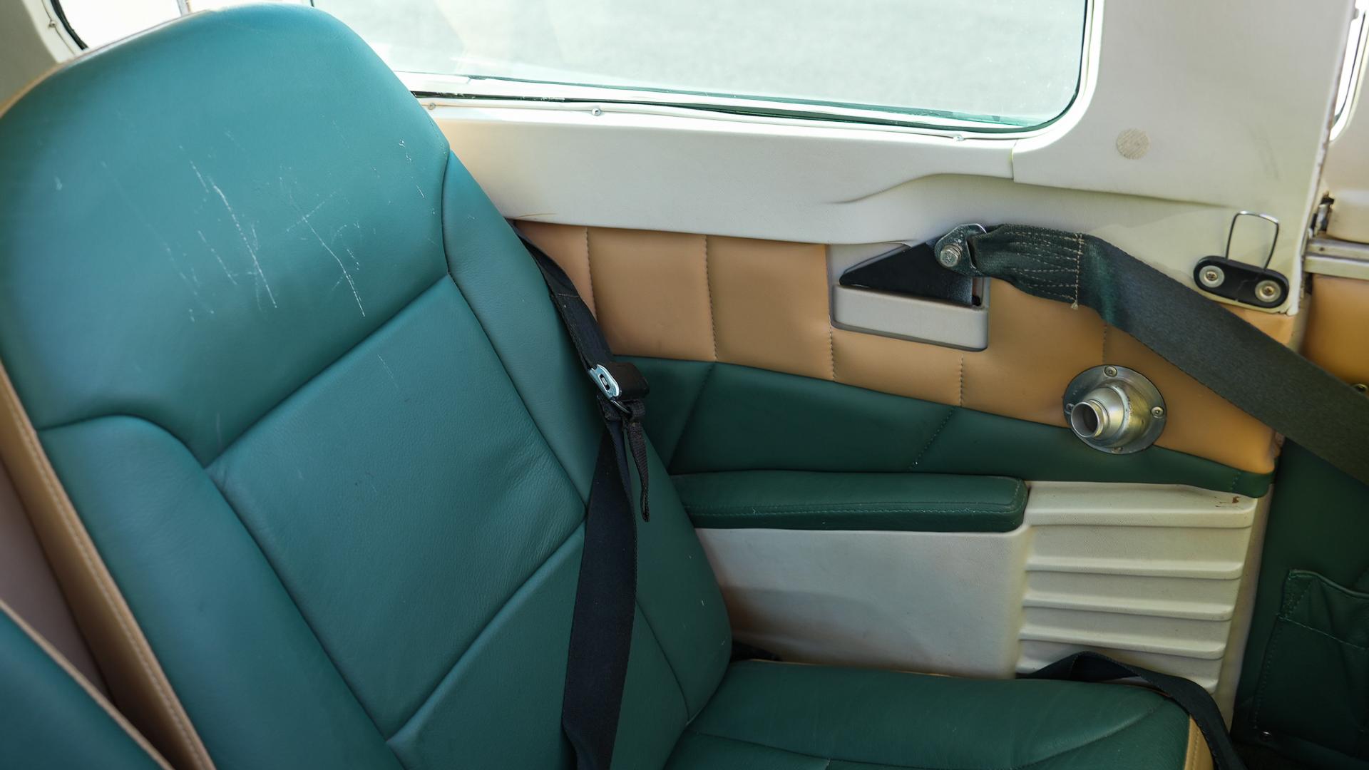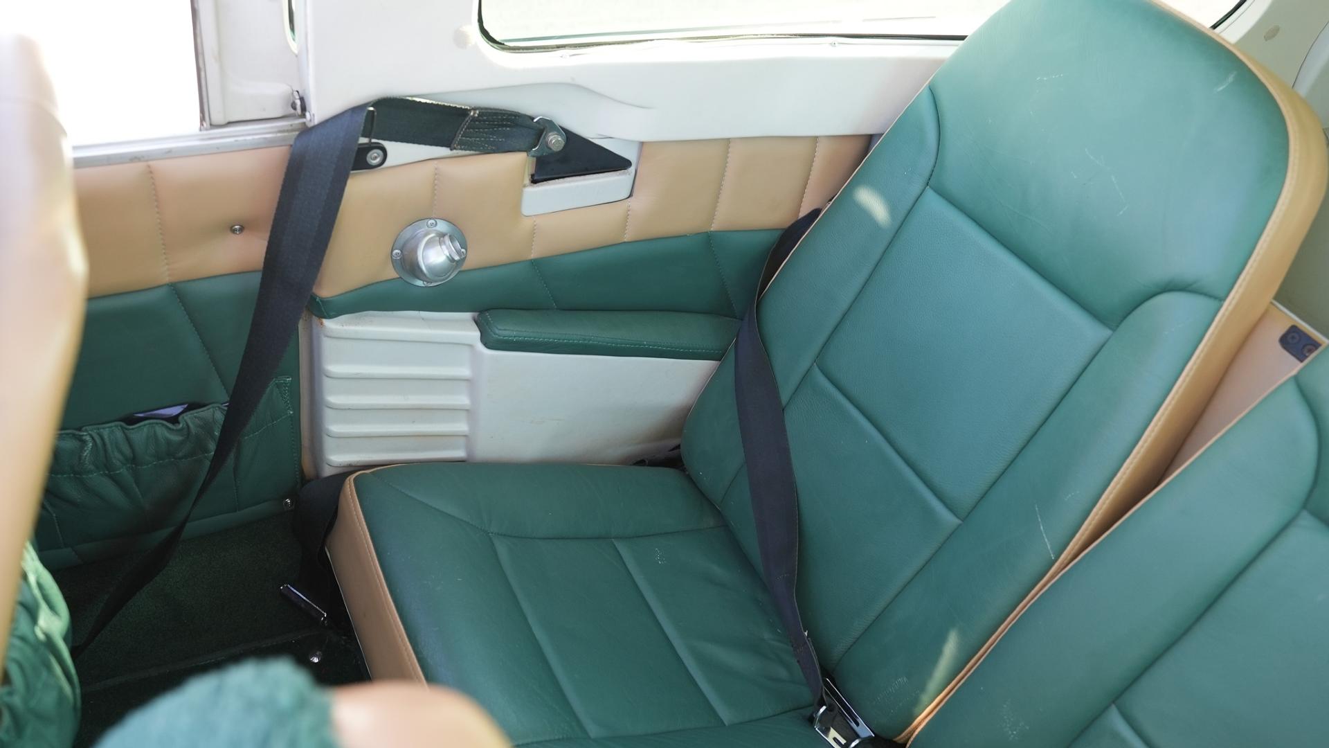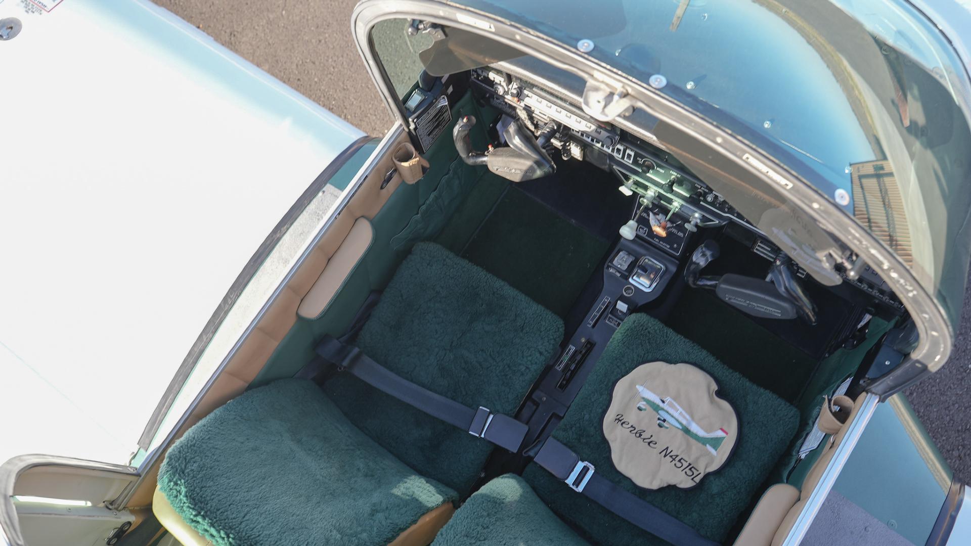 Repainted in 2002 with Sherwin Williams Aeryglo White and Sherwin Williams Genesis Green and Gold trim. Paint is in very nice, hangar-kept condition. 8.5 / 10