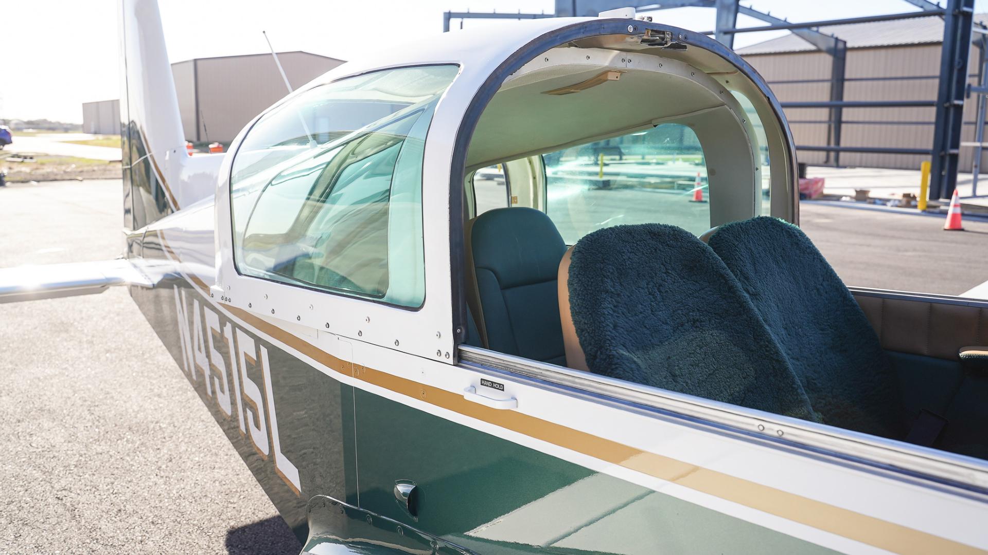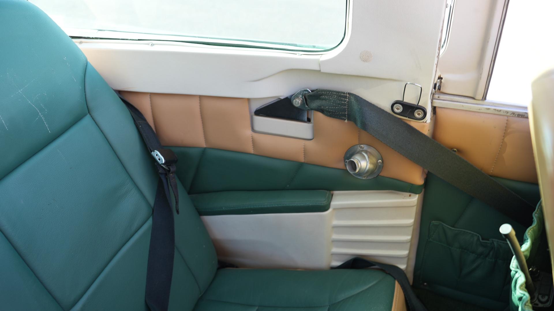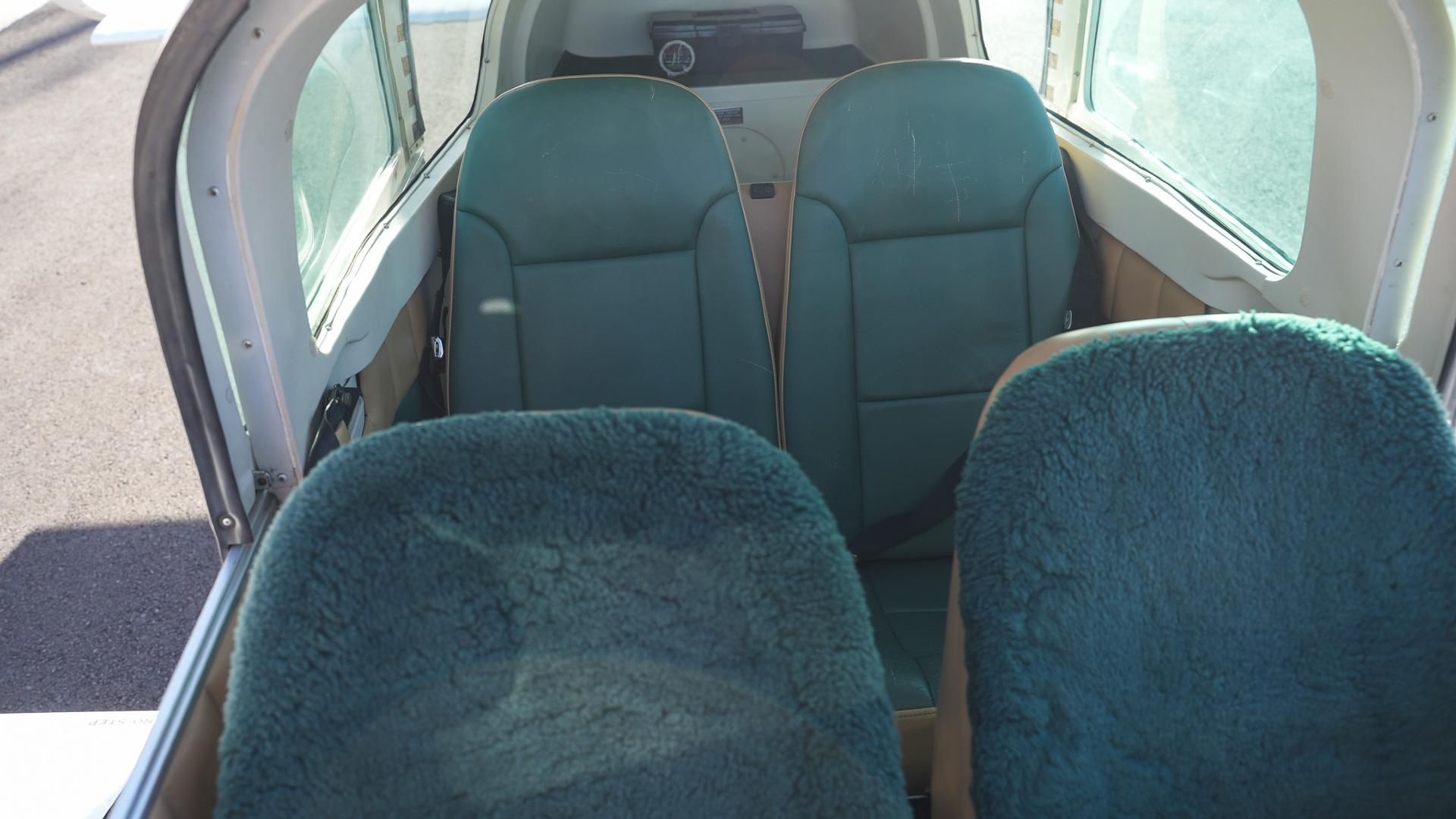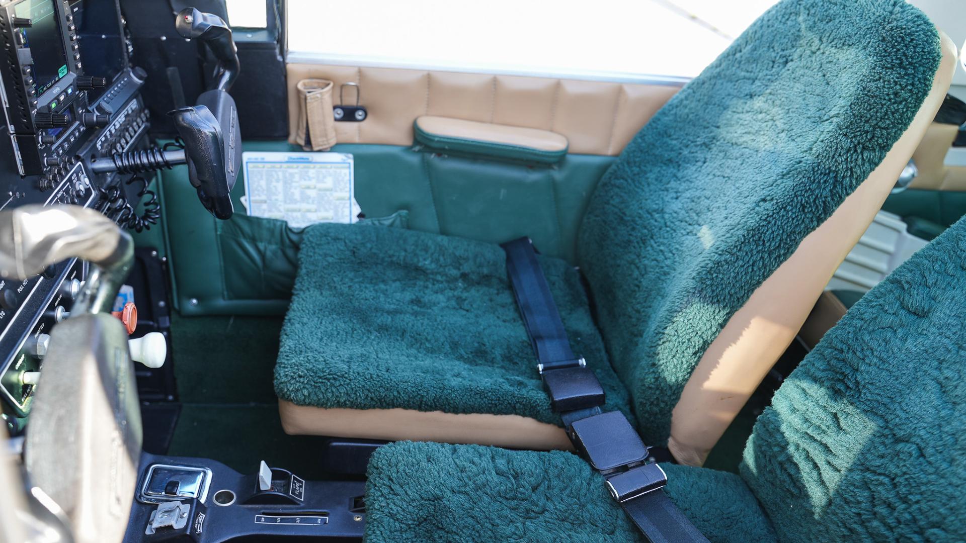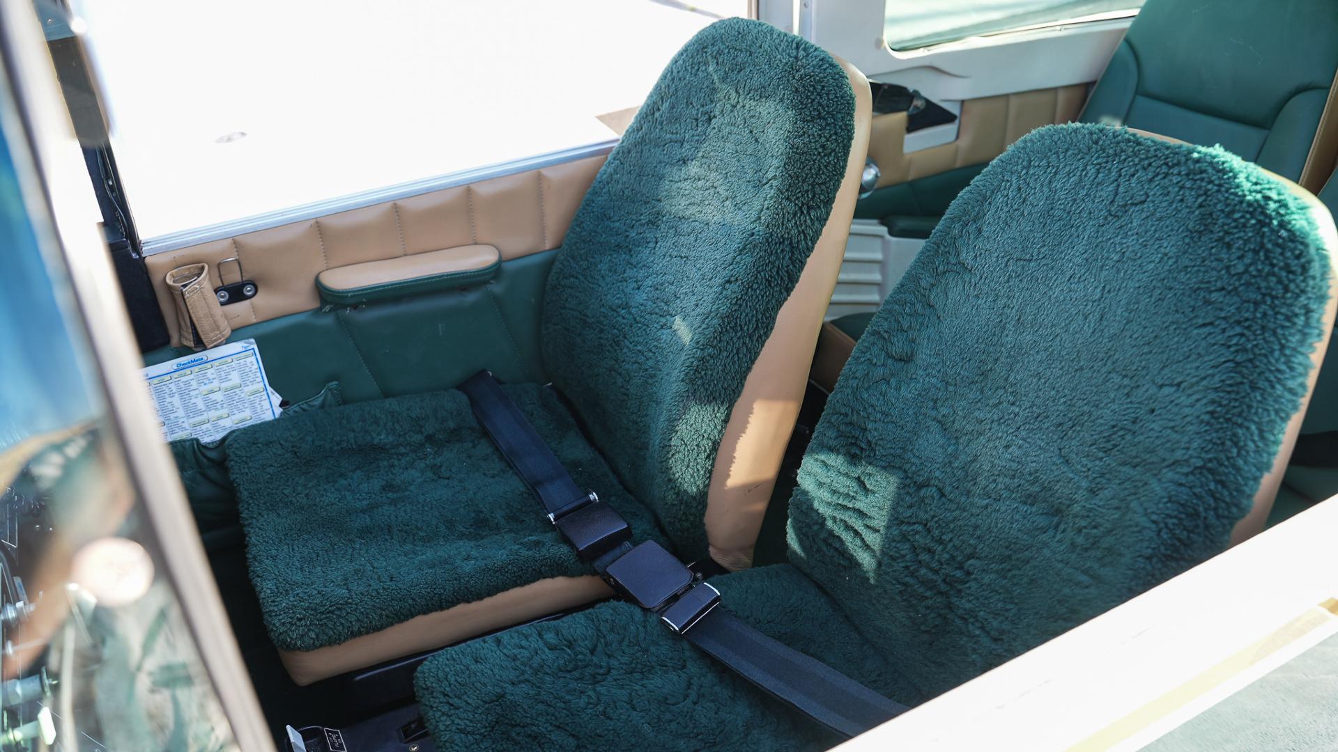 Repainted in 2002 with Sherwin Williams Aeryglo White and Sherwin Williams Genesis Green and Gold trim. Paint is in very nice, hangar-kept condition. 8.5 / 10