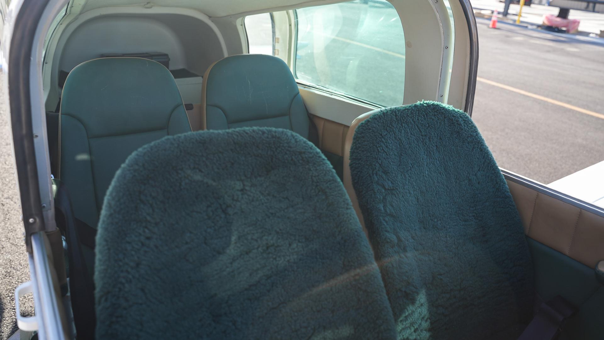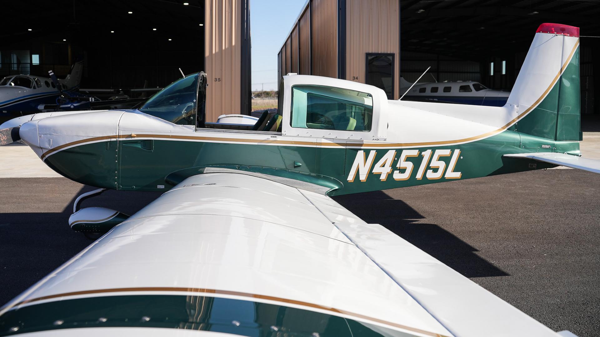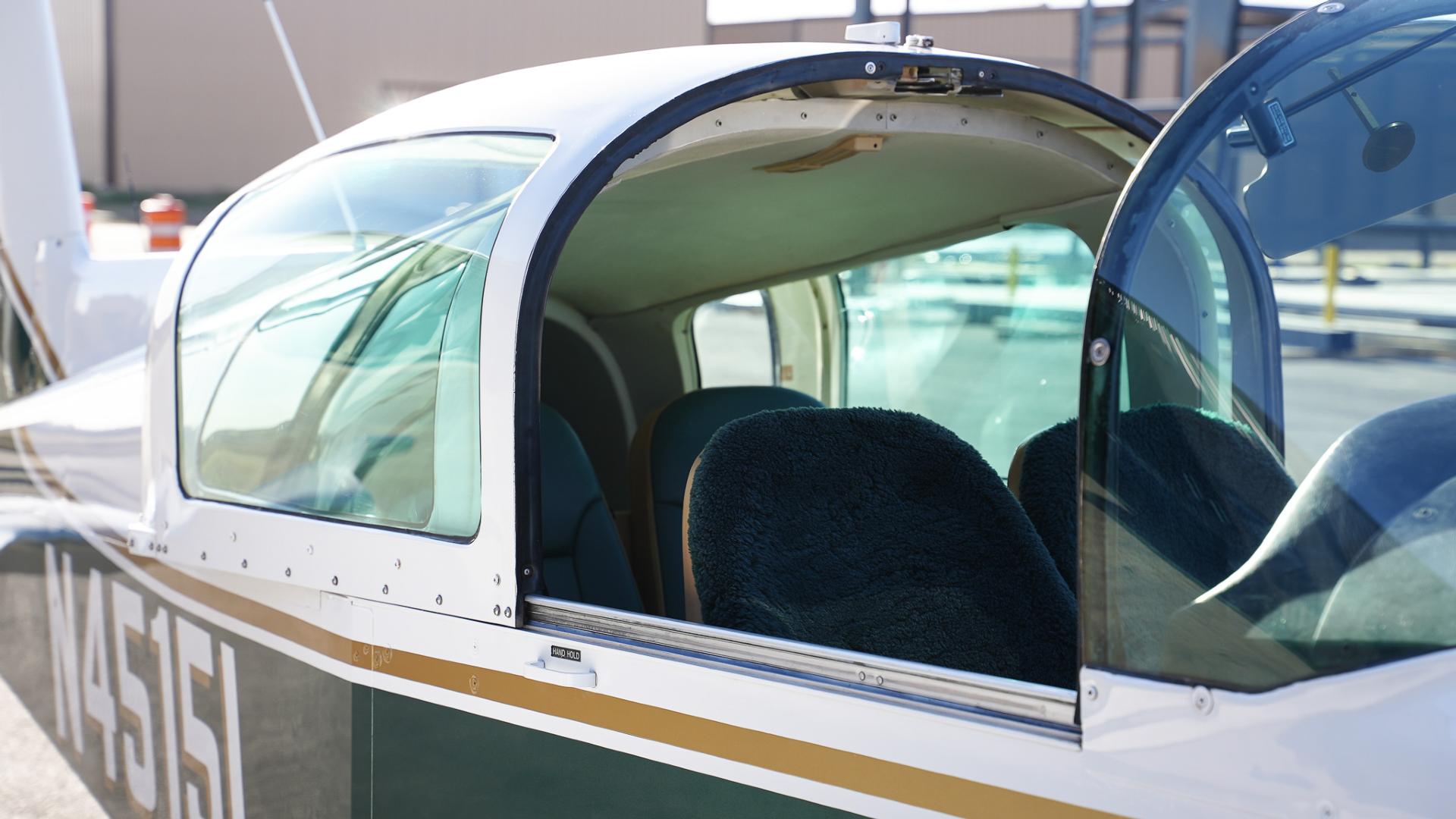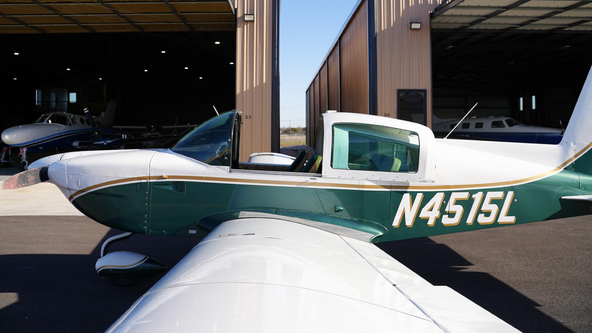Repainted in 2002 with Sherwin Williams Aeryglo White and Sherwin Williams Genesis Green and Gold trim. Paint is in very nice, hangar-kept condition. 8.5 / 10