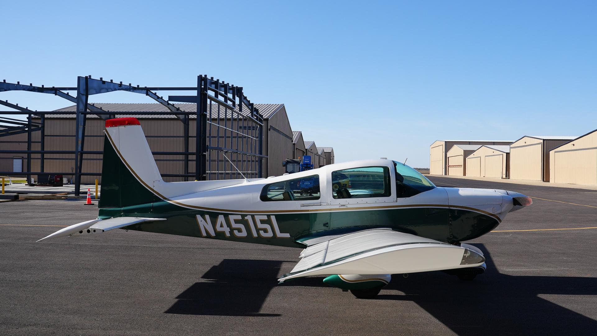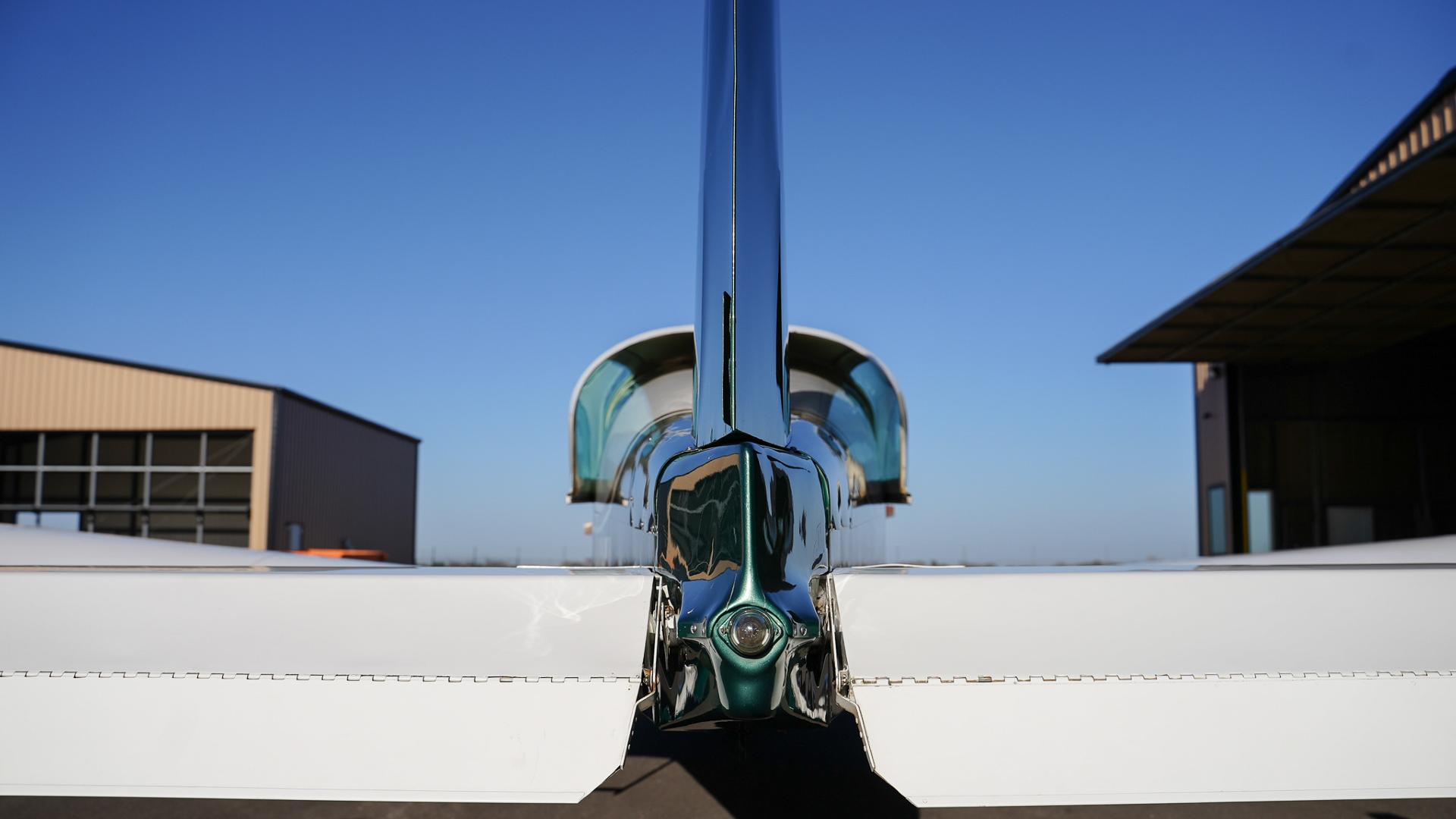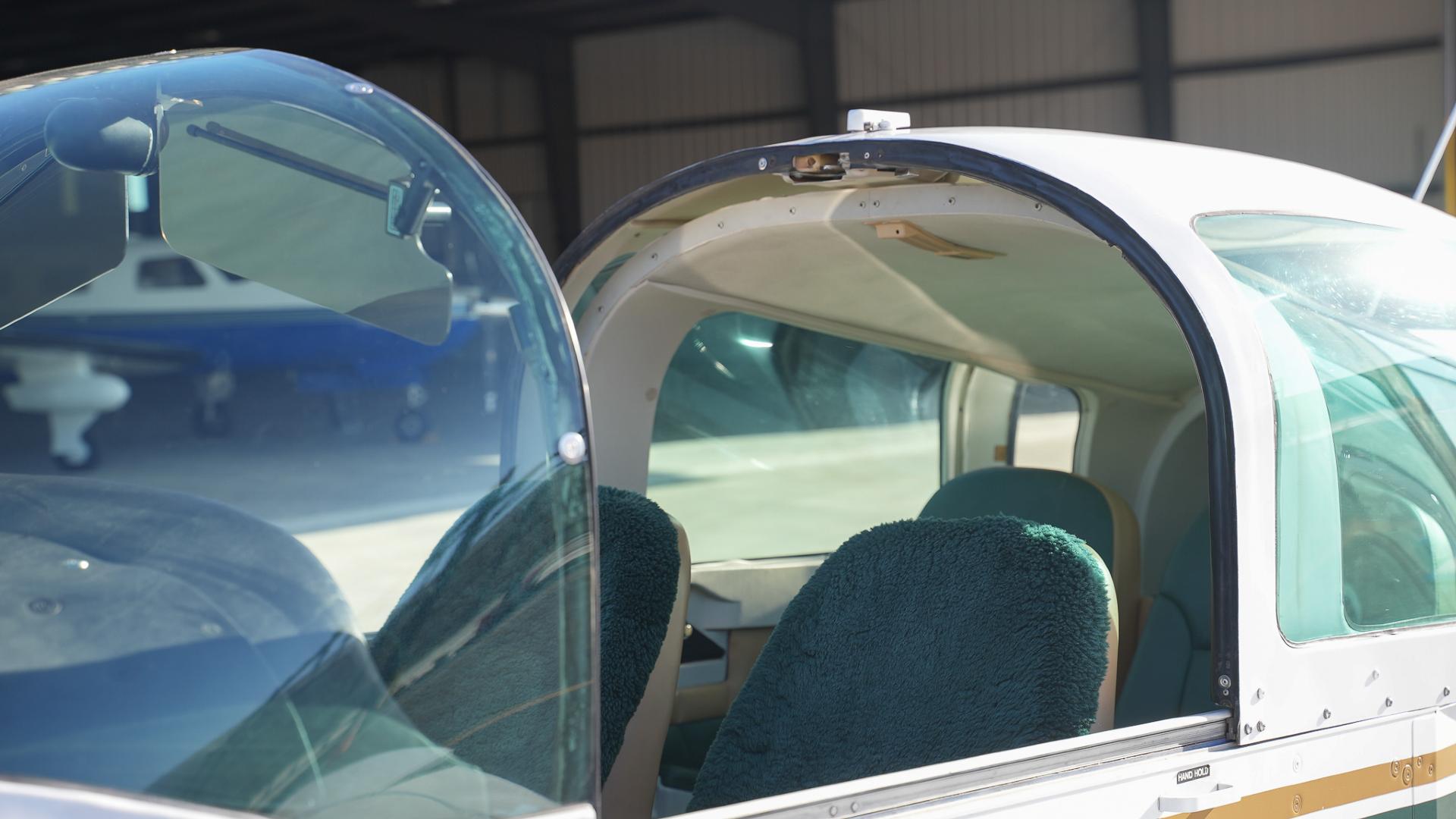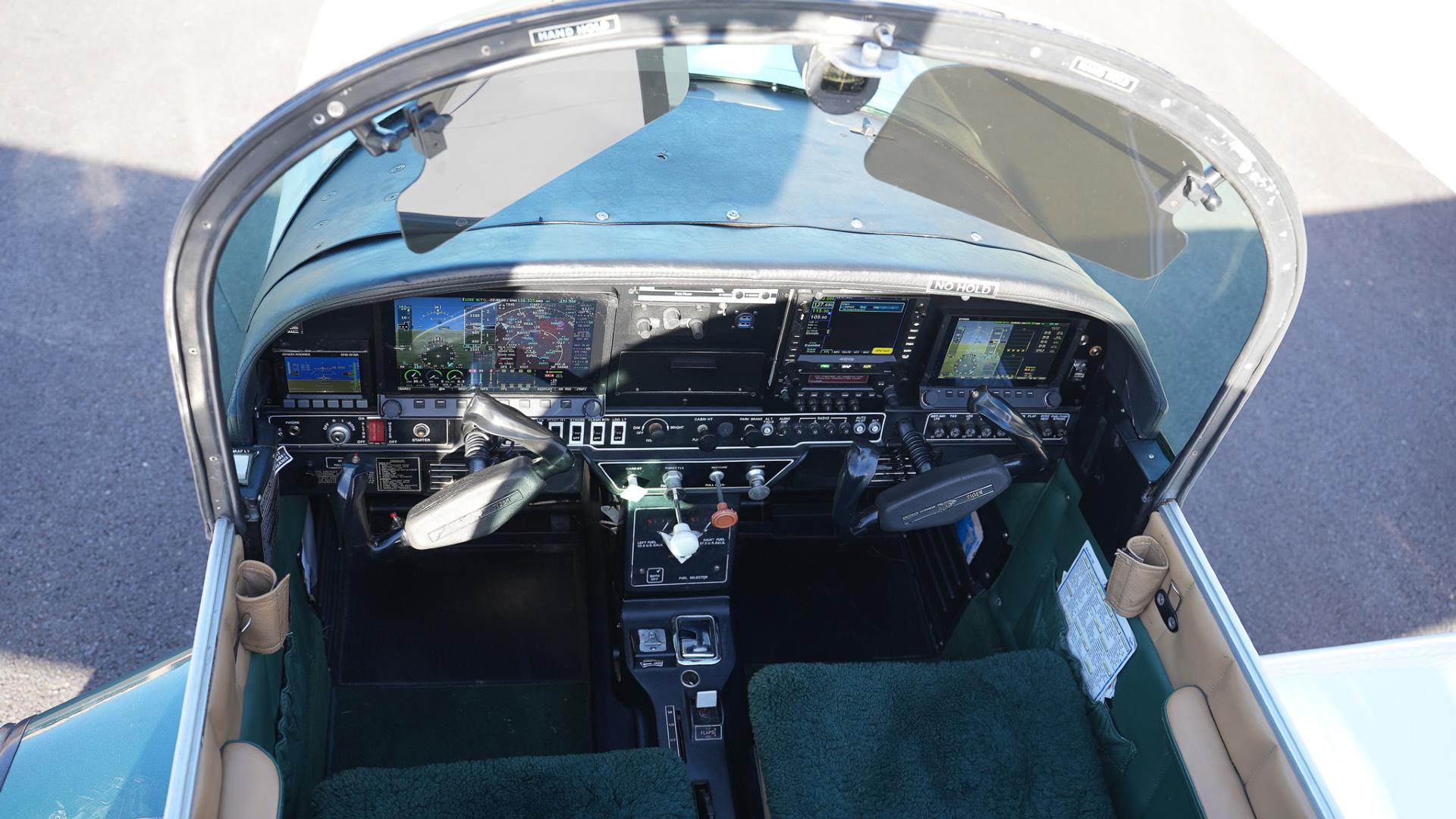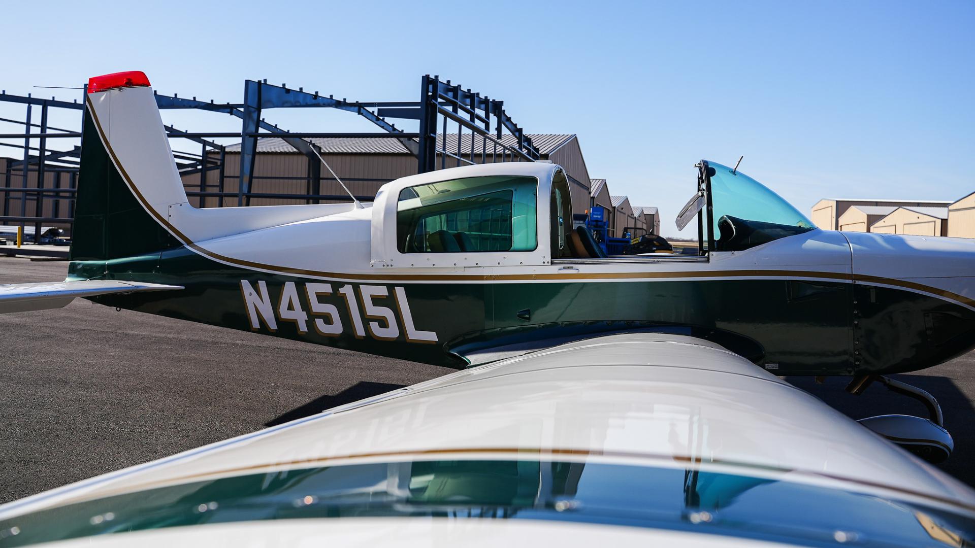 Repainted in 2002 with Sherwin Williams Aeryglo White and Sherwin Williams Genesis Green and Gold trim. Paint is in very nice, hangar-kept condition. 8.5 / 10