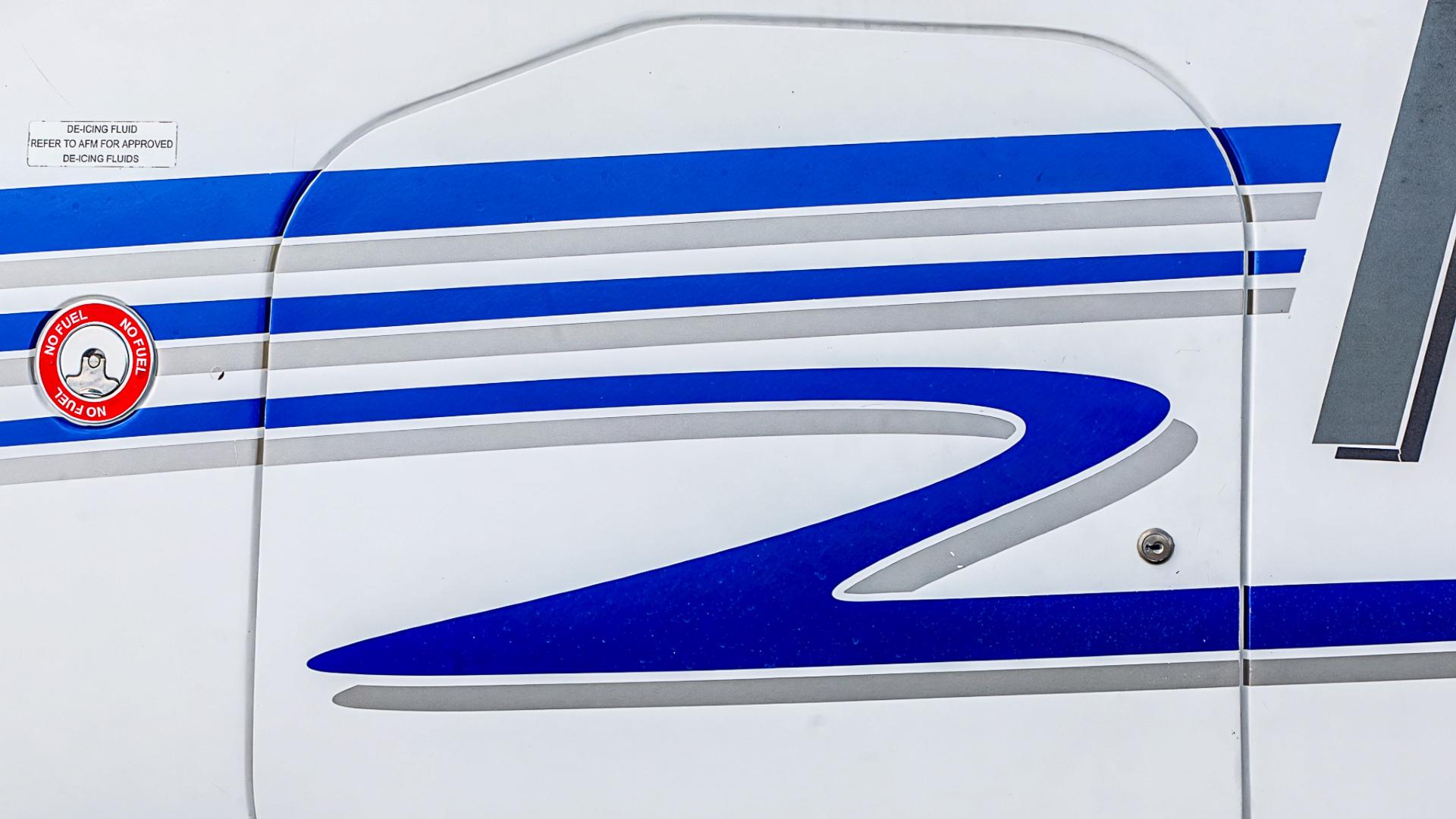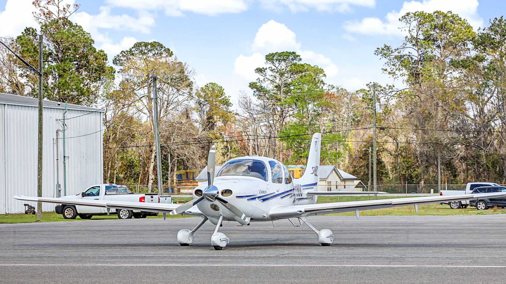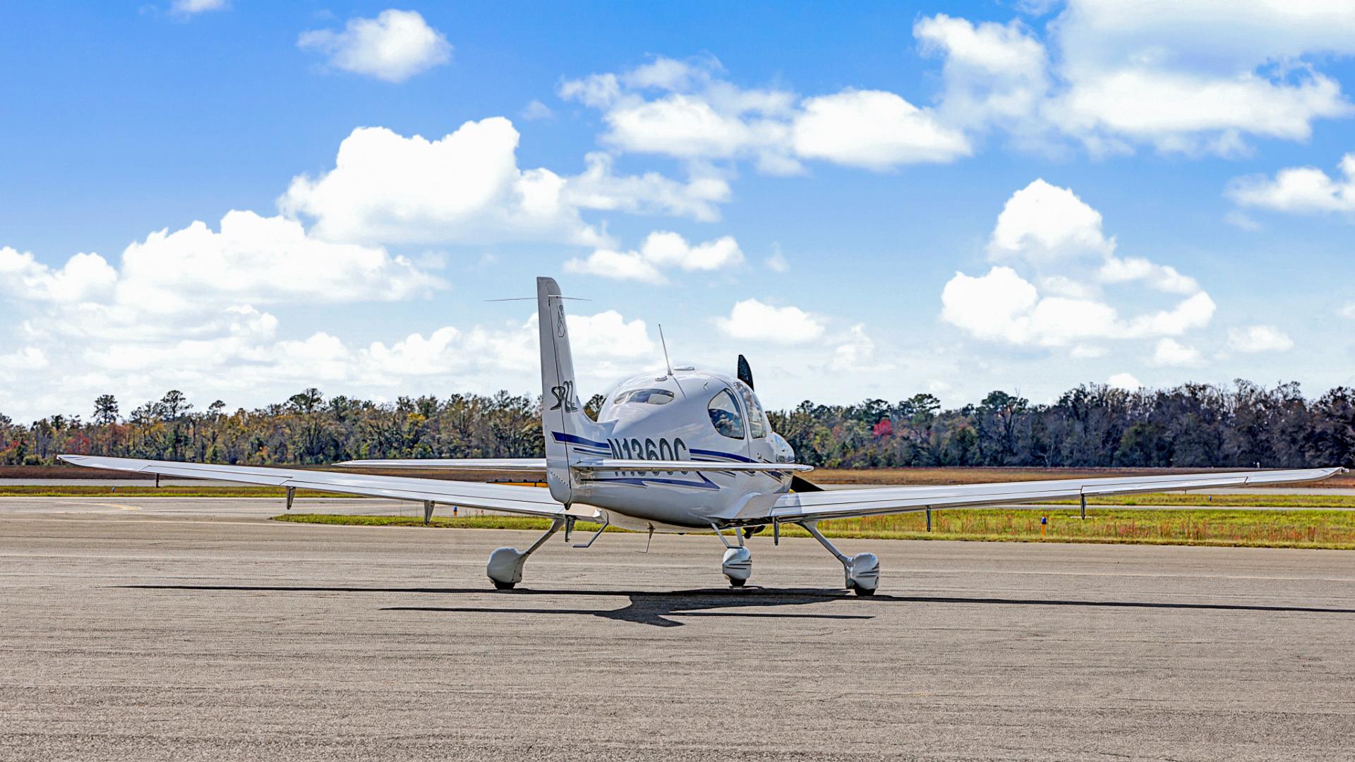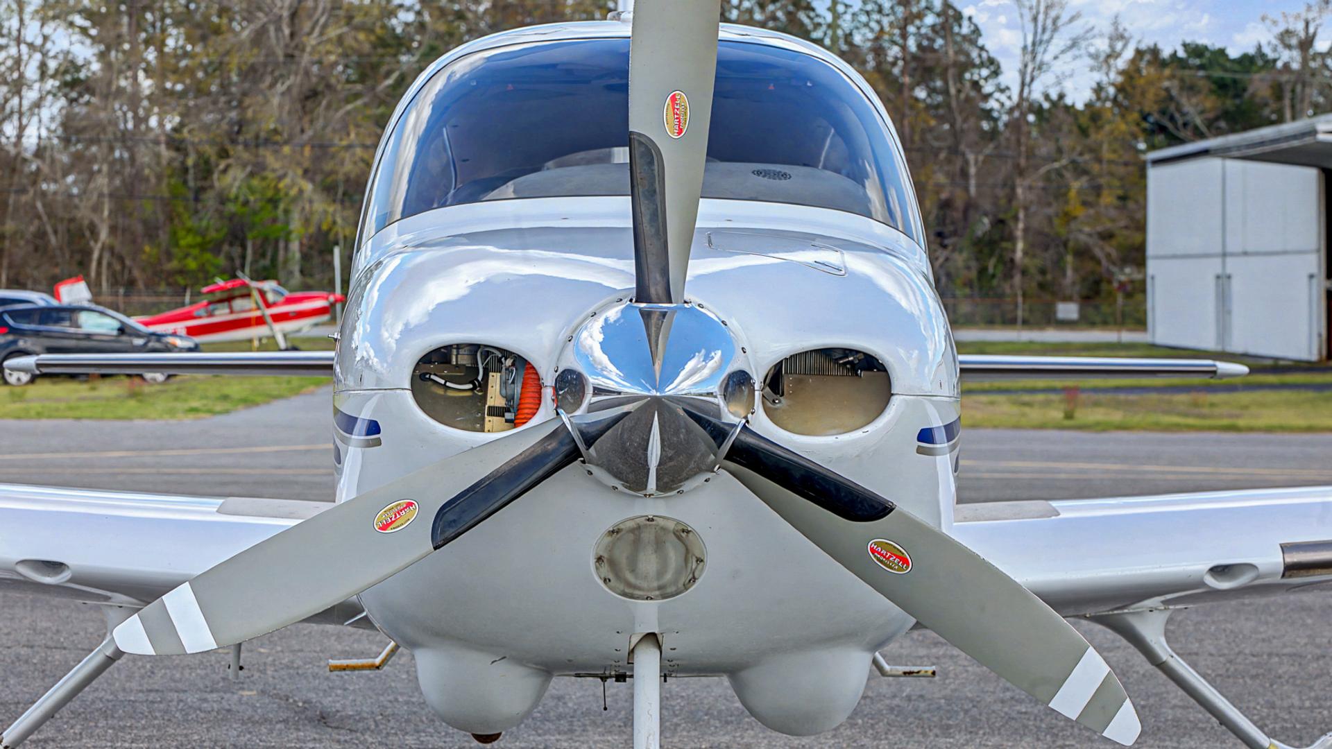 Externally, the aircraft carries a classic white scheme with blue accent striping that still shows the sleek lines the SR22 is known for. While the paint and exterior cosmetics would benefit from some refreshing, the airframe presents well overall and would respond nicely to a cosmetic update.