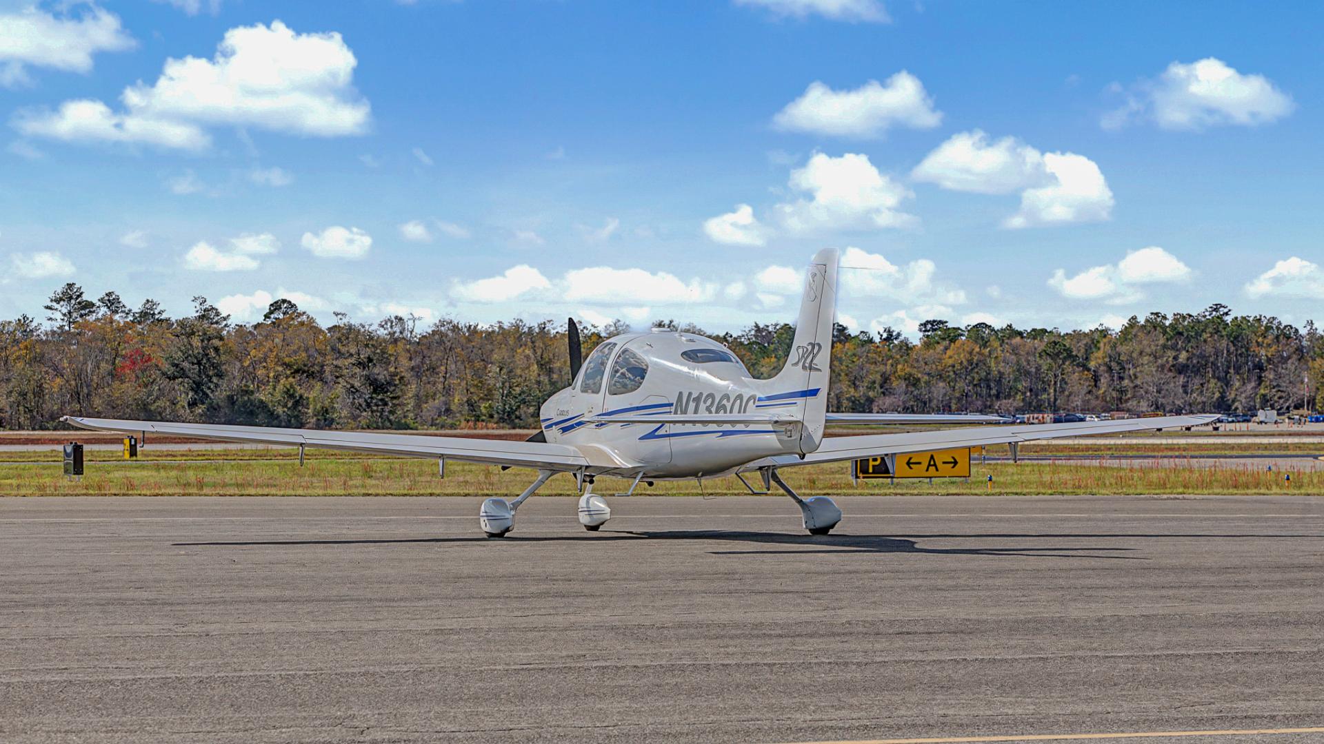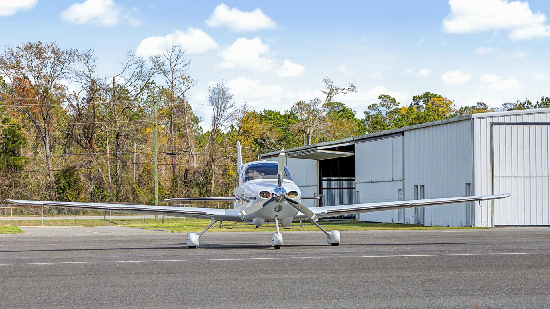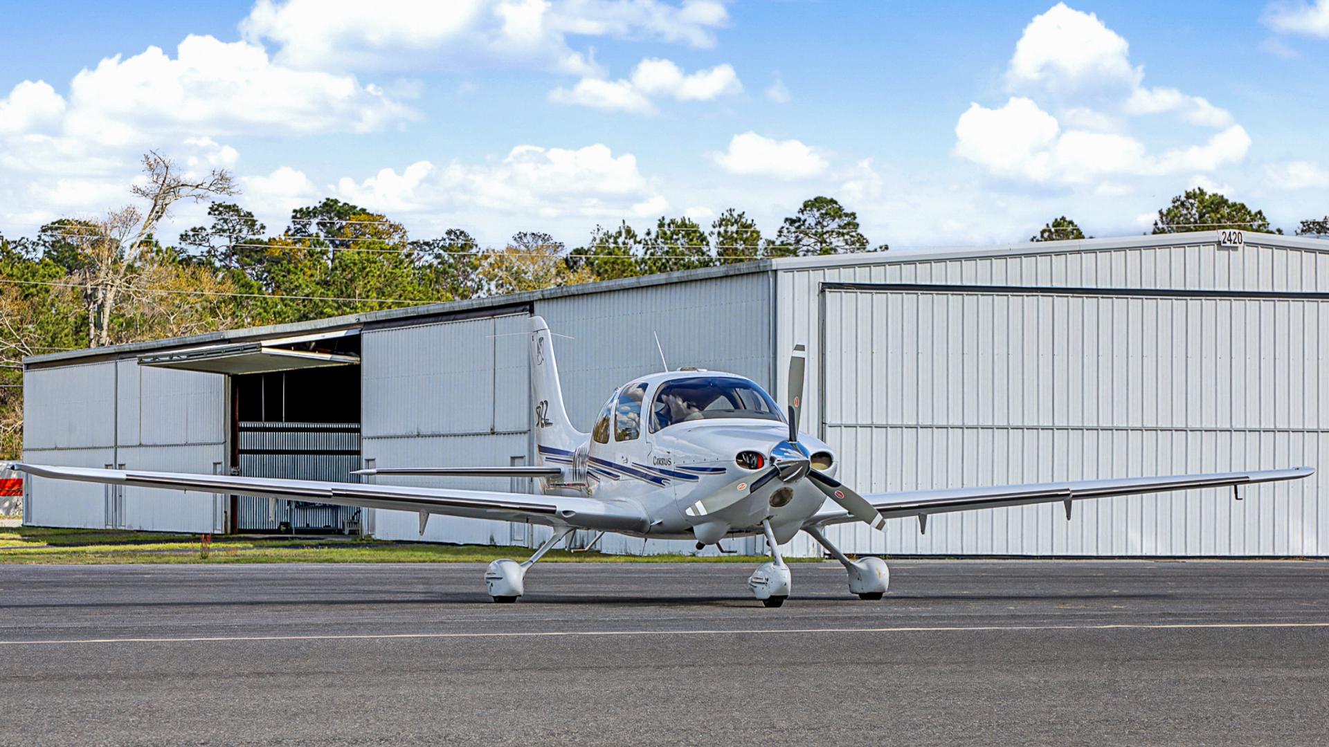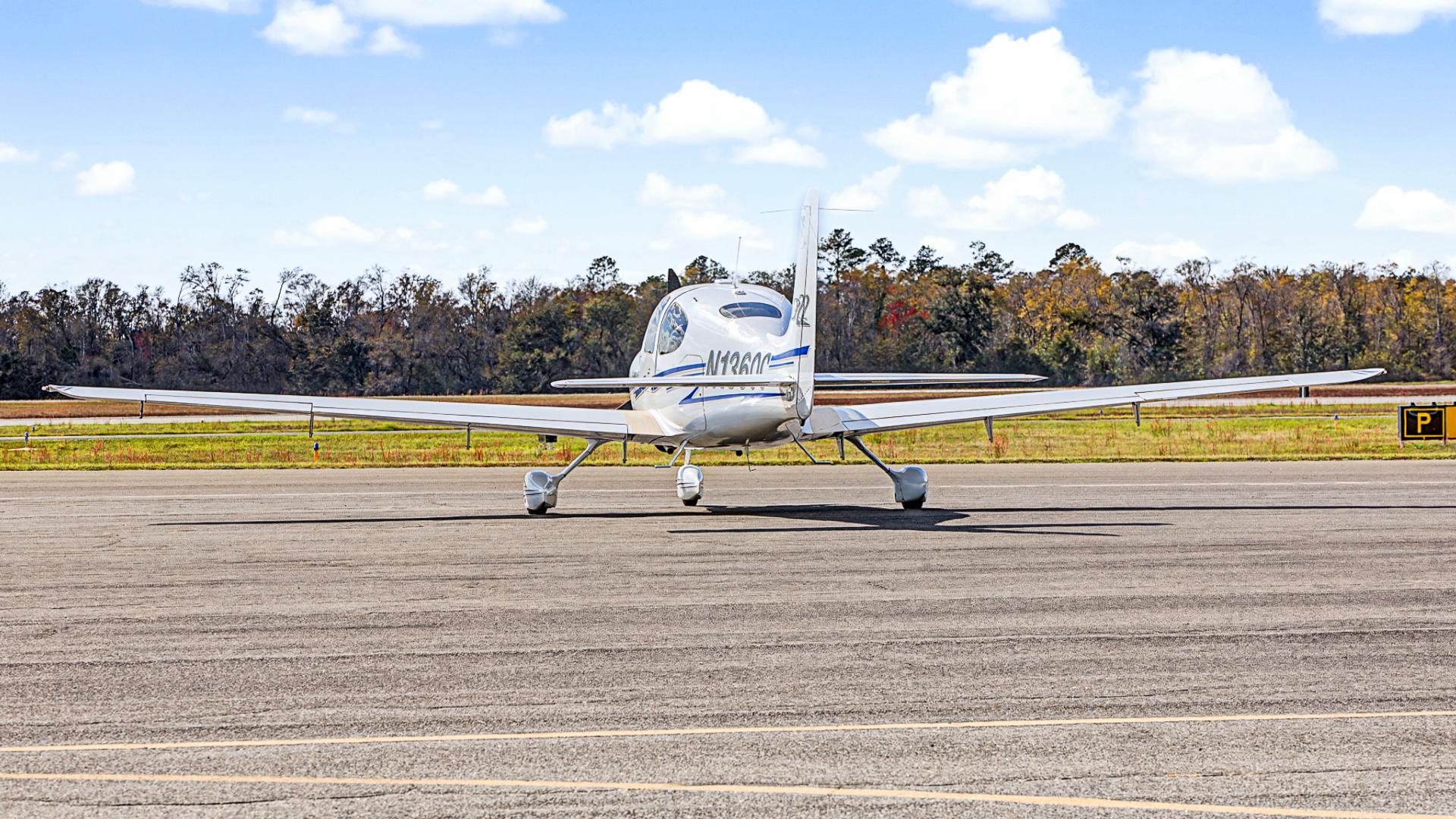 Externally, the aircraft carries a classic white scheme with blue accent striping that still shows the sleek lines the SR22 is known for. While the paint and exterior cosmetics would benefit from some refreshing, the airframe presents well overall and would respond nicely to a cosmetic update.