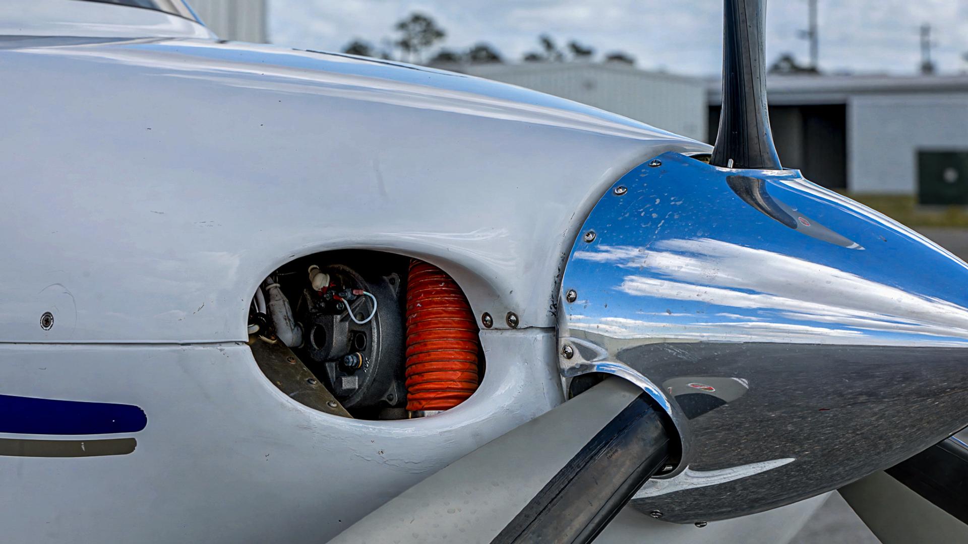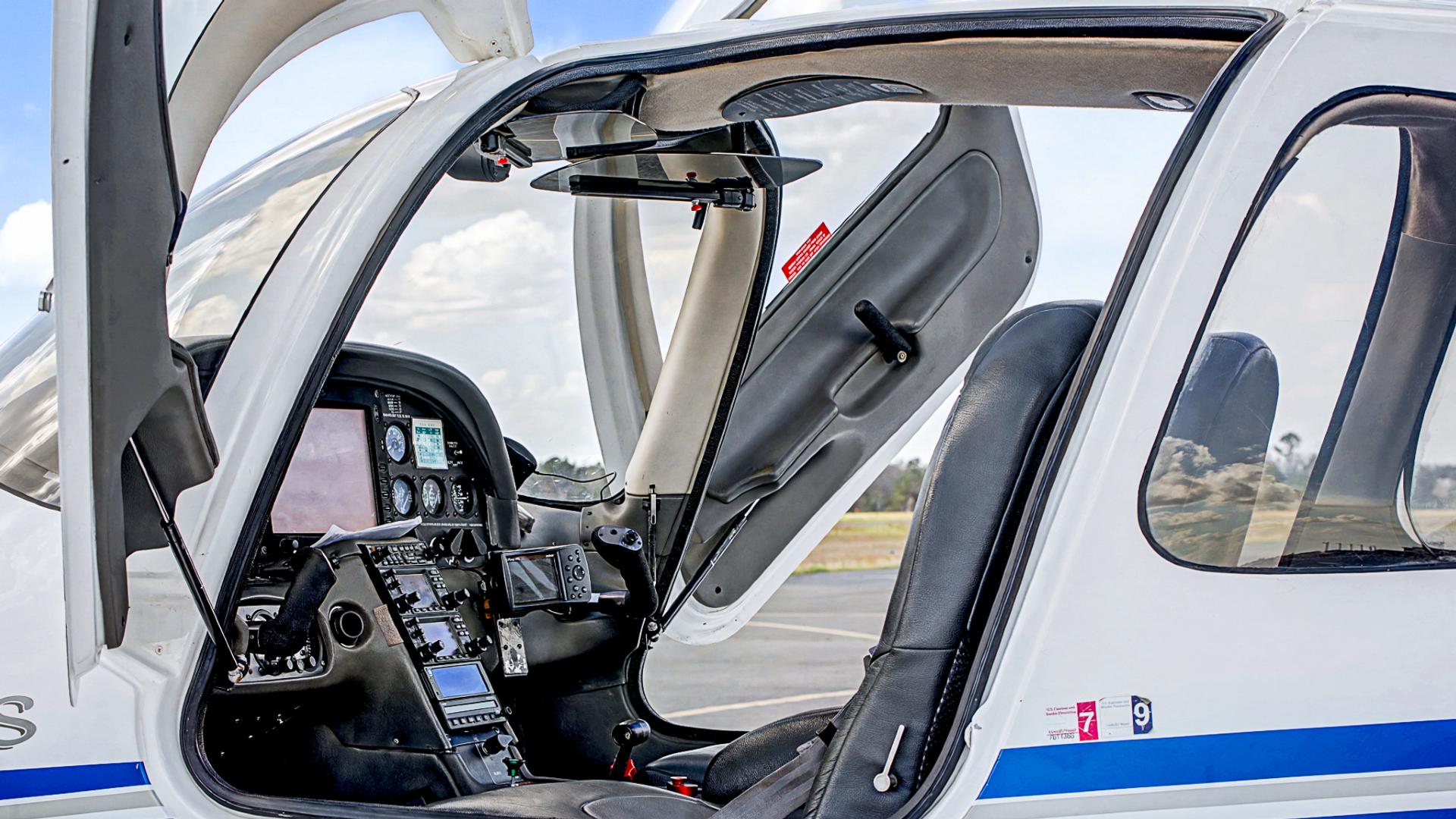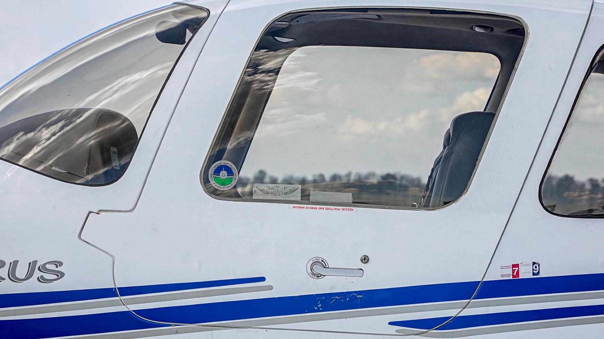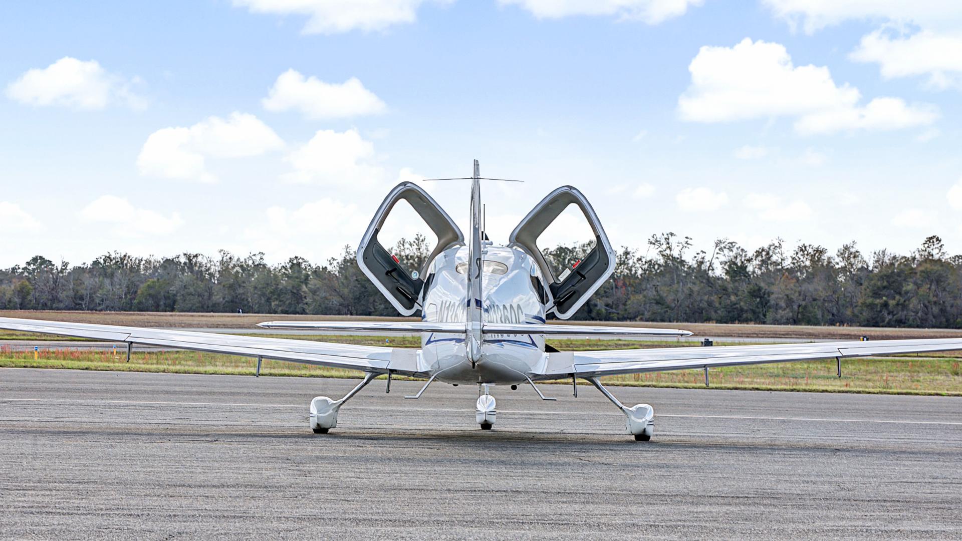 Externally, the aircraft carries a classic white scheme with blue accent striping that still shows the sleek lines the SR22 is known for. While the paint and exterior cosmetics would benefit from some refreshing, the airframe presents well overall and would respond nicely to a cosmetic update.