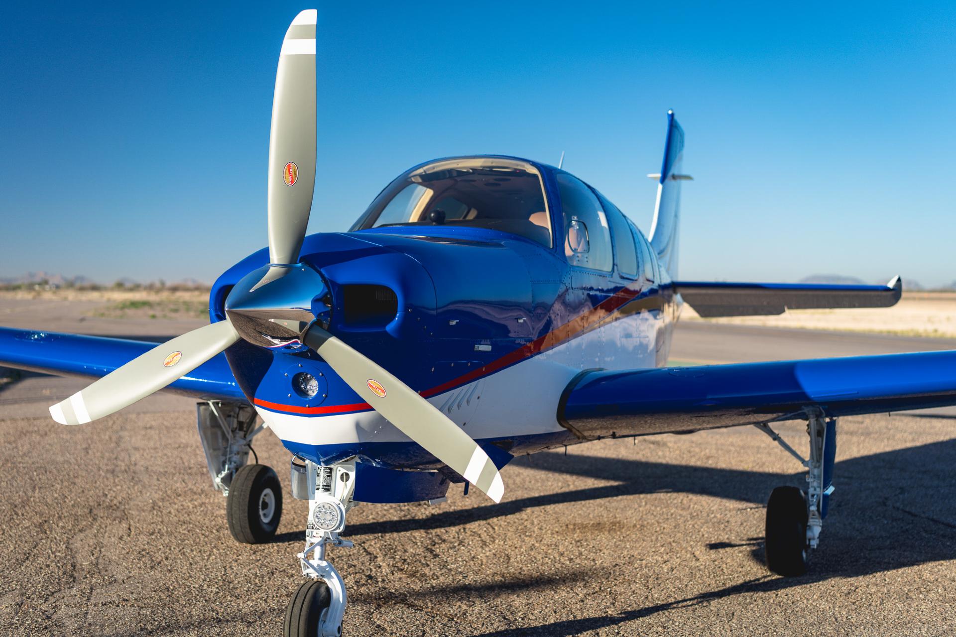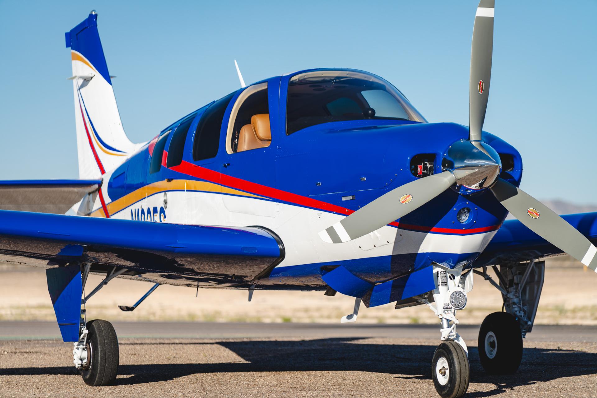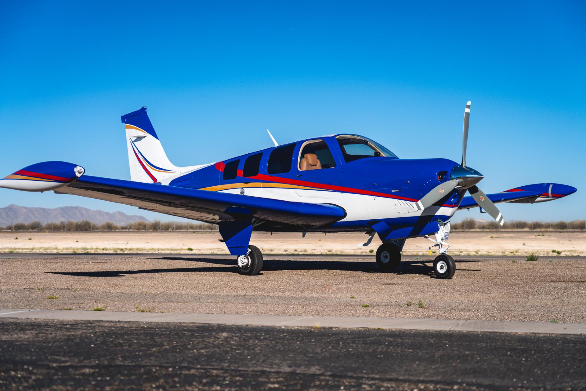 This A36 is the rarest combination of flawless aesthetics, meticulous upgrades and enhancements, boosted performance, and modern capability. The airframe and numerous facets have been restored and upgraded professionally by top-notch vendors and with top-tier components — every cosmetic and functional detail executed to the highest standard. The Summit-STC IO-550-R (310 HP) install and Scimitar prop provide strong, reliable performance (180 KTAS @ 7500’!); the D'Shannon tip tanks give exceptional range; the $150K+ Garmin G500 panel brings contemporary situational awareness and avionics redundancy while preserving the classic Bonanza experience; the New AC Services Air Conditioning system provides ultimate comfort; the new interior and paint are center-of-showroom worthy and will stand out against any other Bonanza out there.
