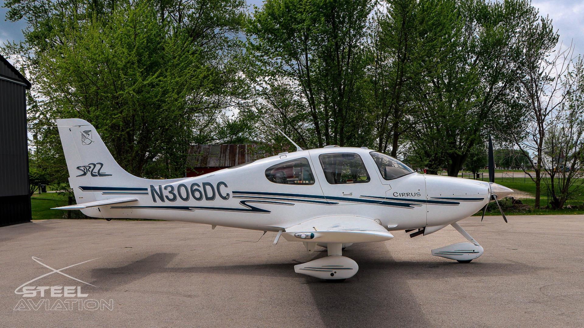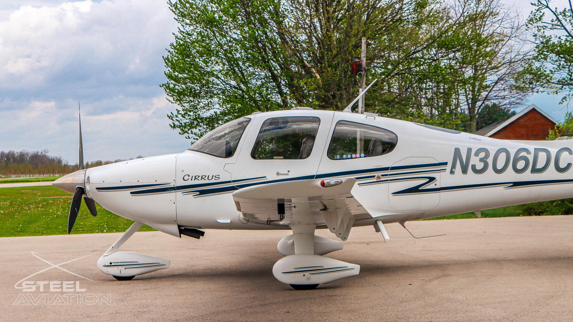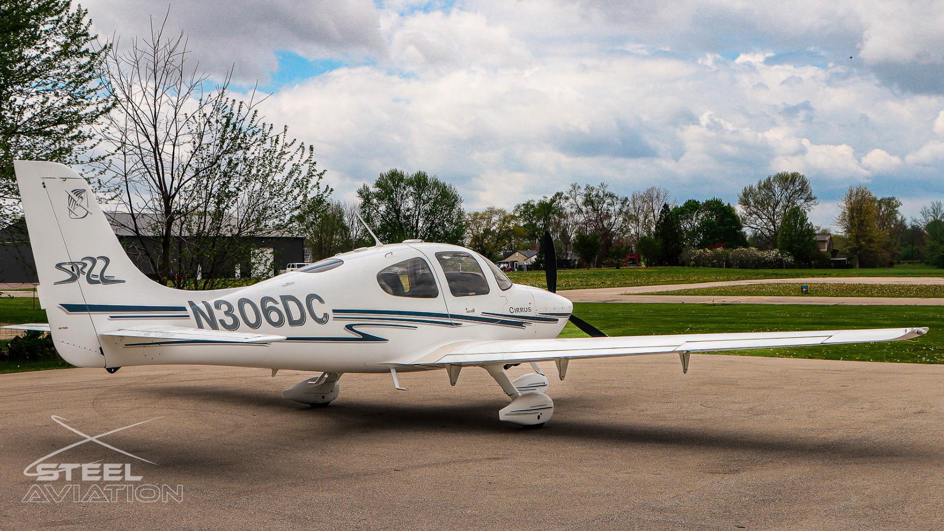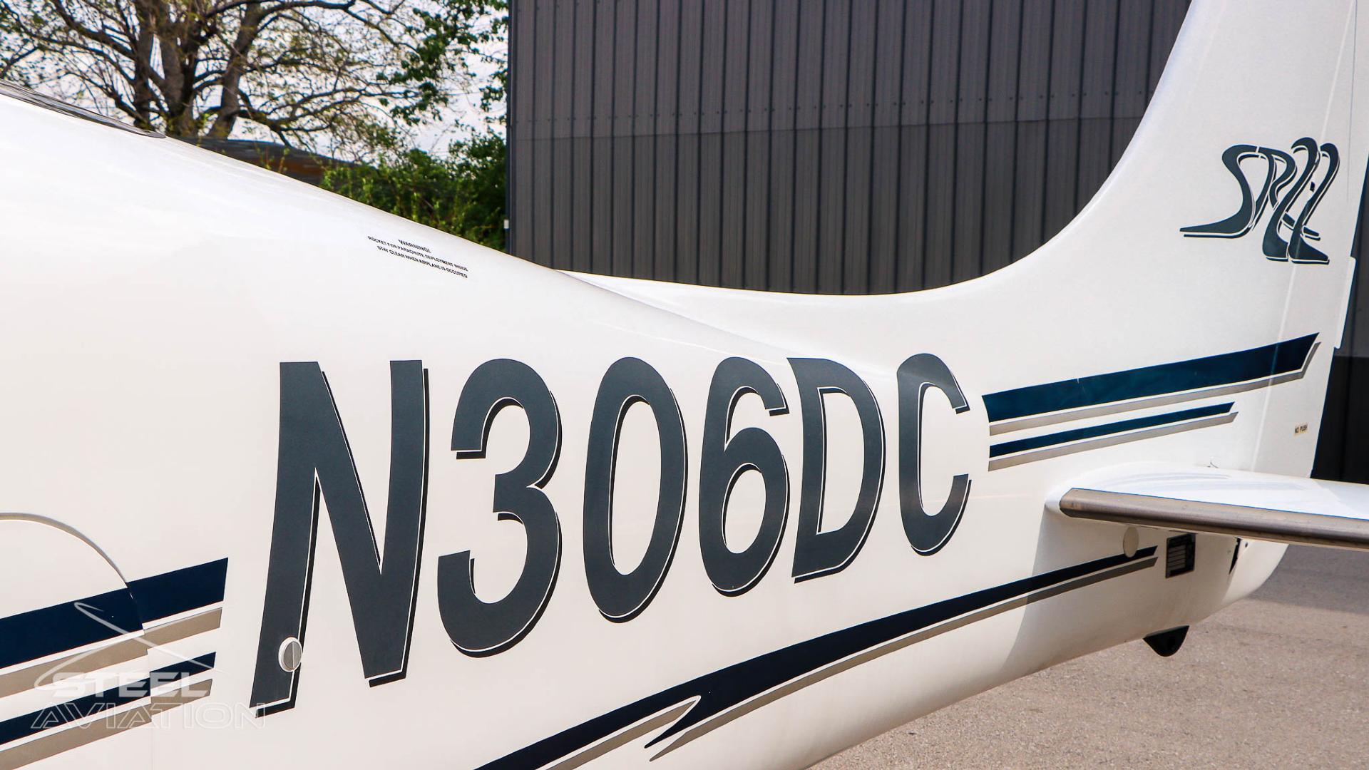 Vinyl decals, including Cirrus branding and the N306DC tail number, are nicely done and fit naturally into the scheme. Everything is clean and straightforward, giving the plane an overall cohesive look.