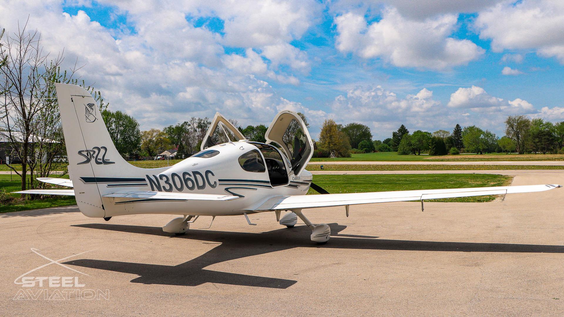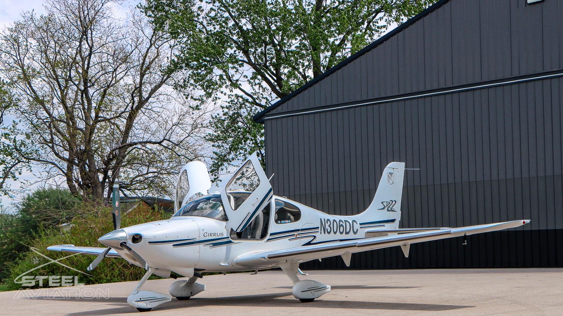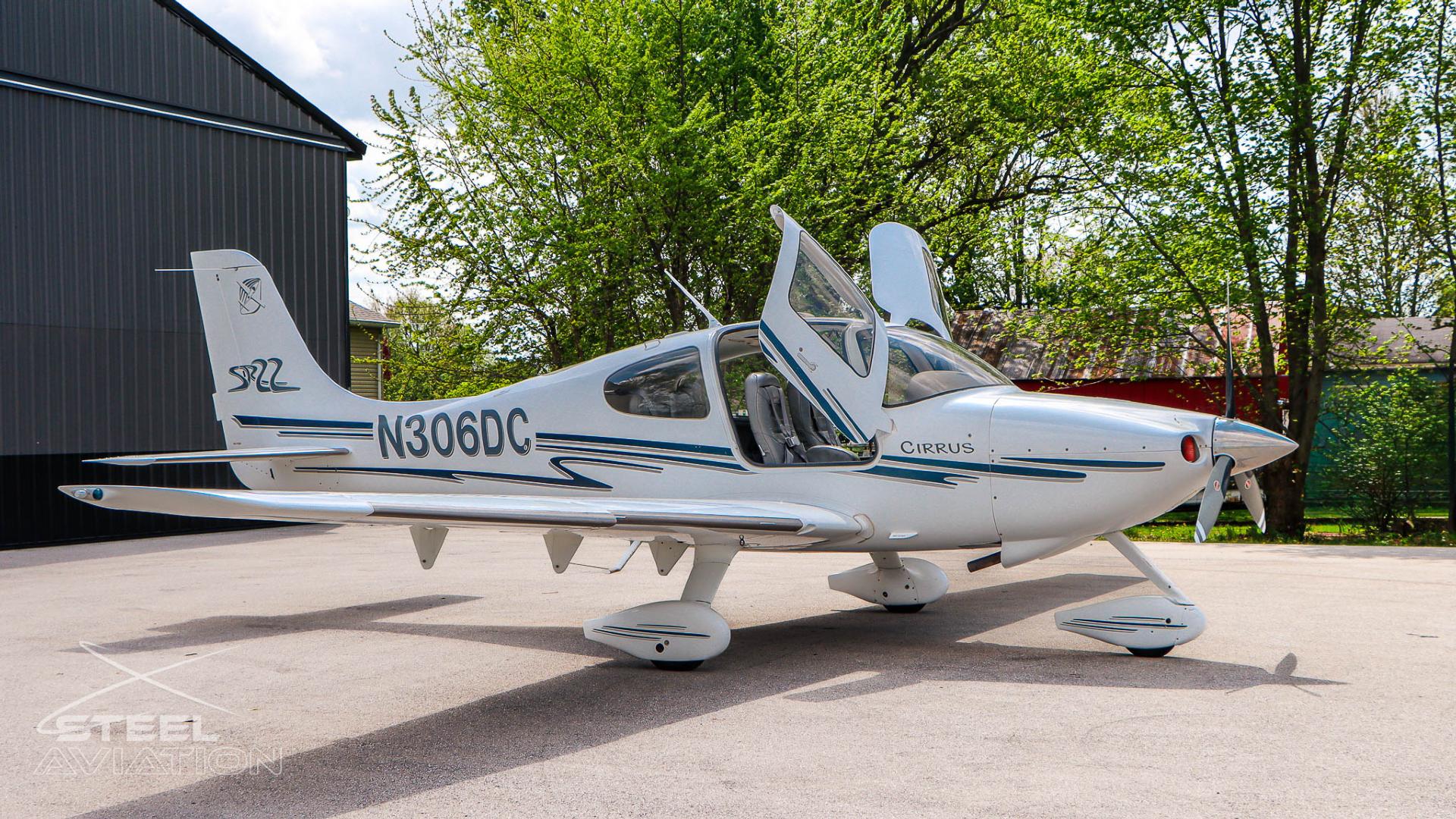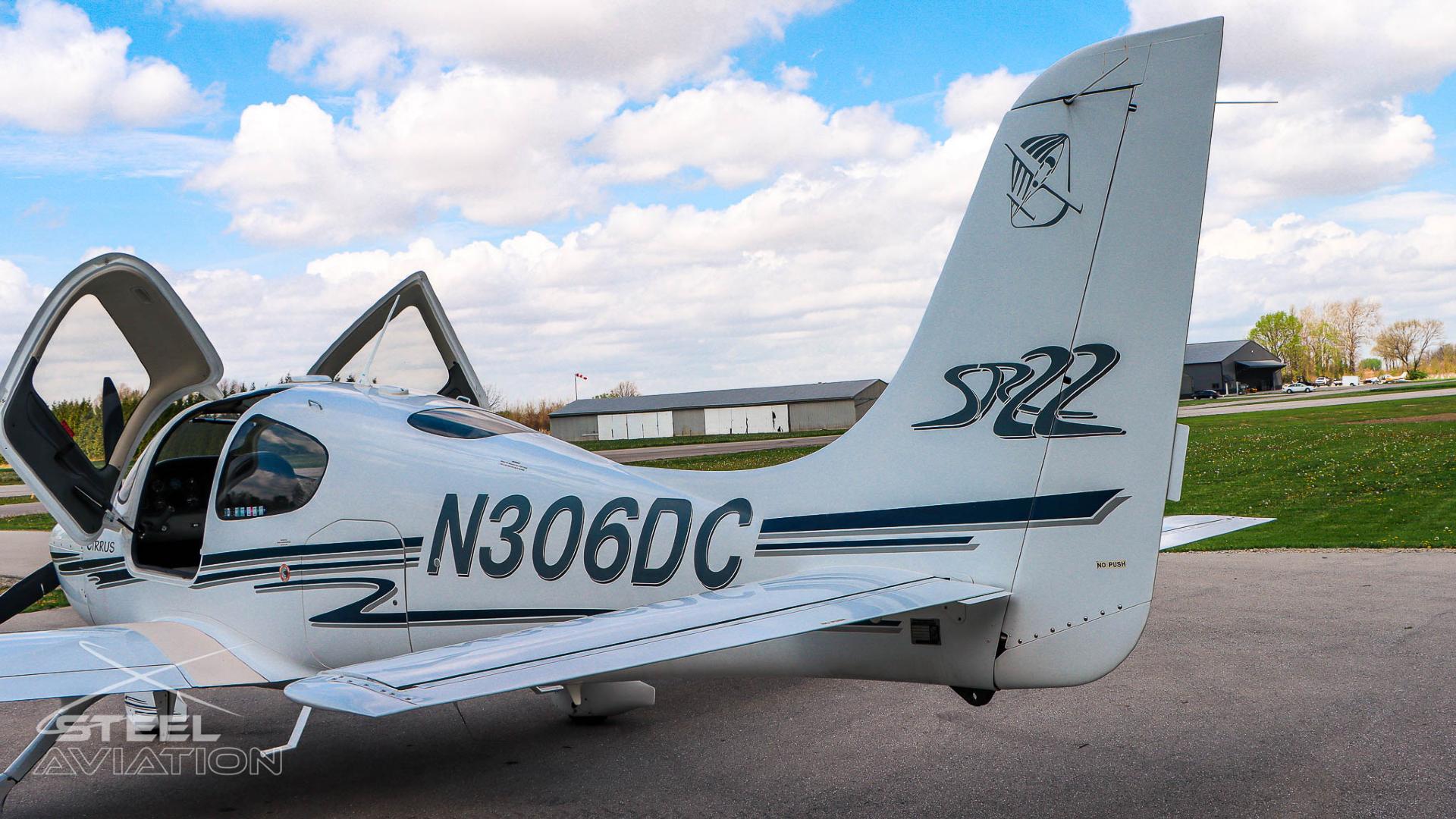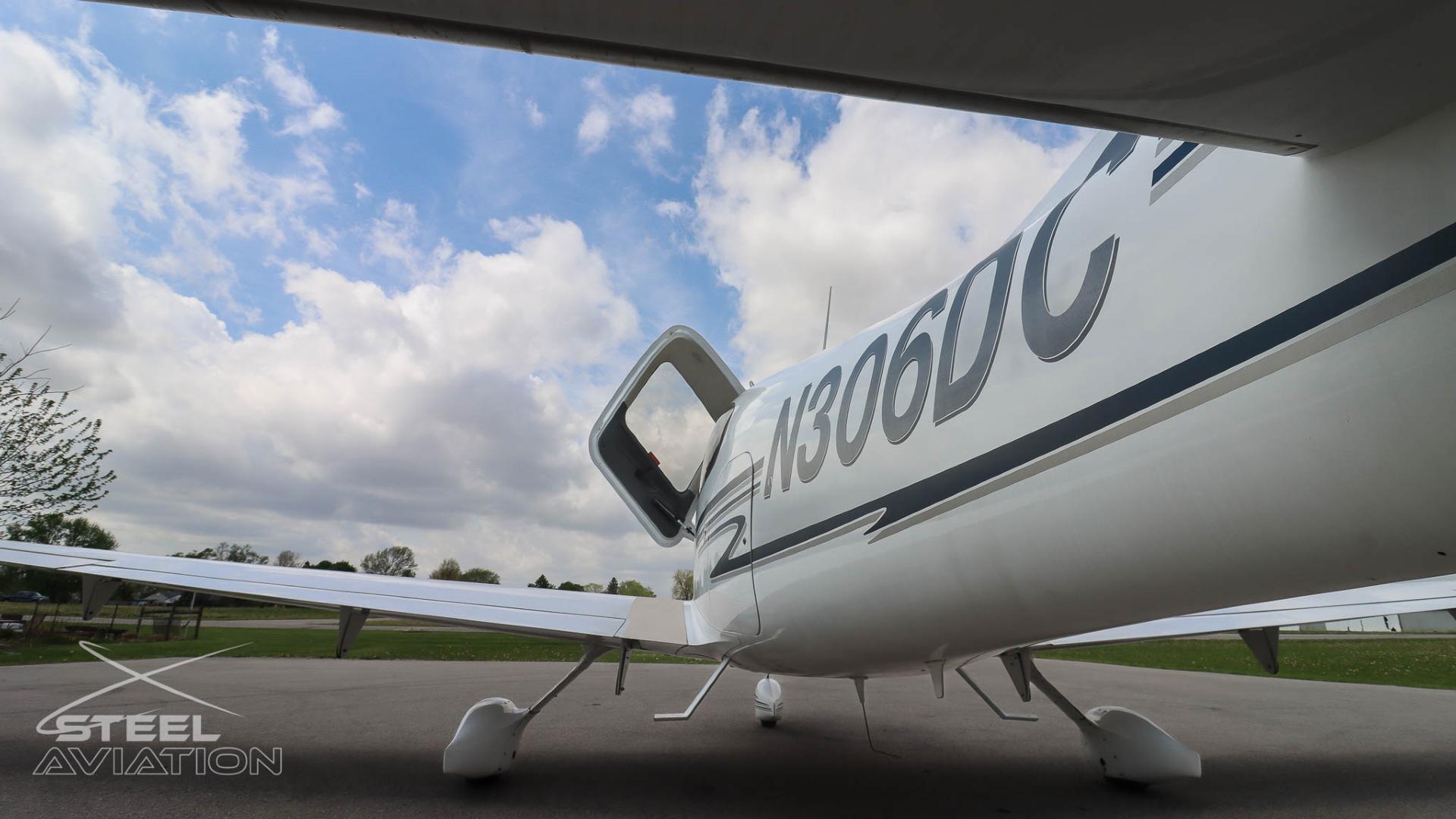 Vinyl decals, including Cirrus branding and the N306DC tail number, are nicely done and fit naturally into the scheme. Everything is clean and straightforward, giving the plane an overall cohesive look.