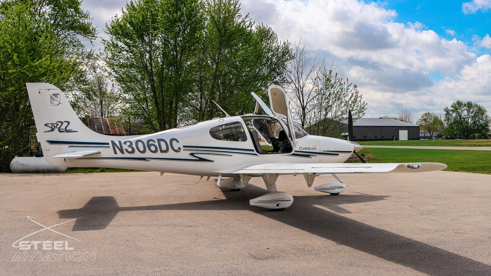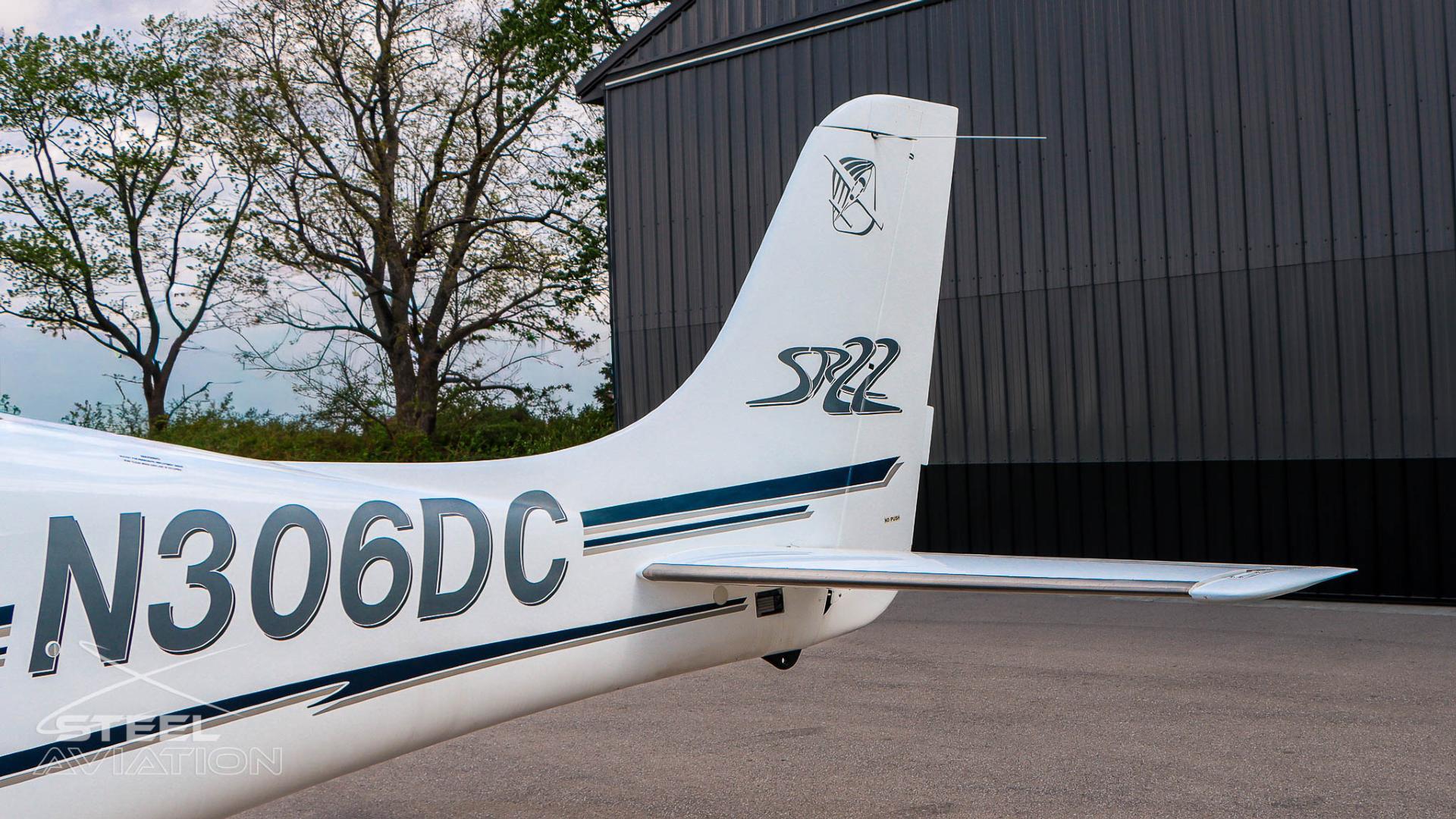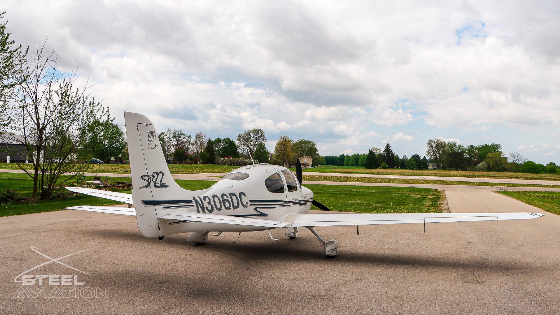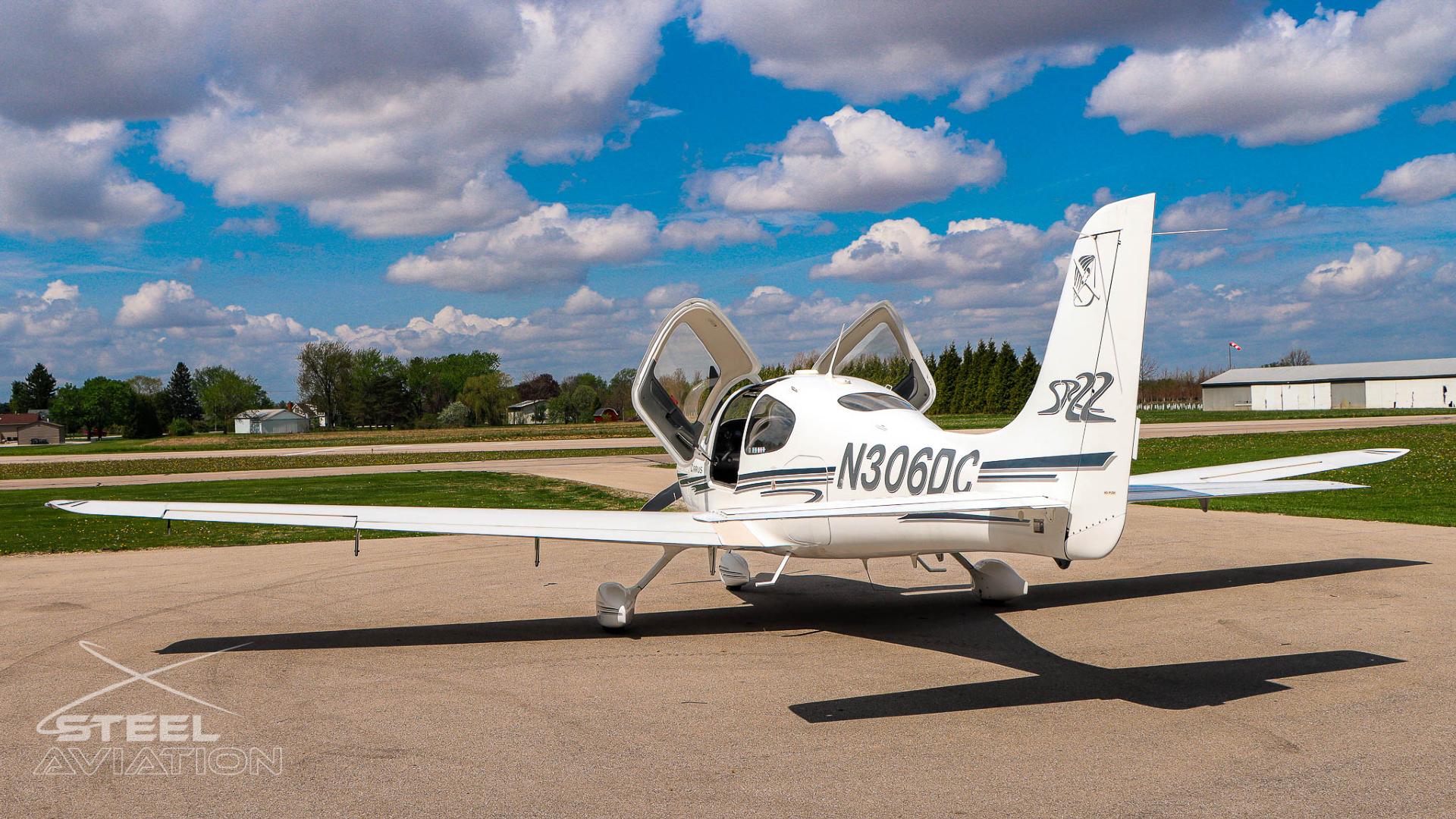 Vinyl decals, including Cirrus branding and the N306DC tail number, are nicely done and fit naturally into the scheme. Everything is clean and straightforward, giving the plane an overall cohesive look.